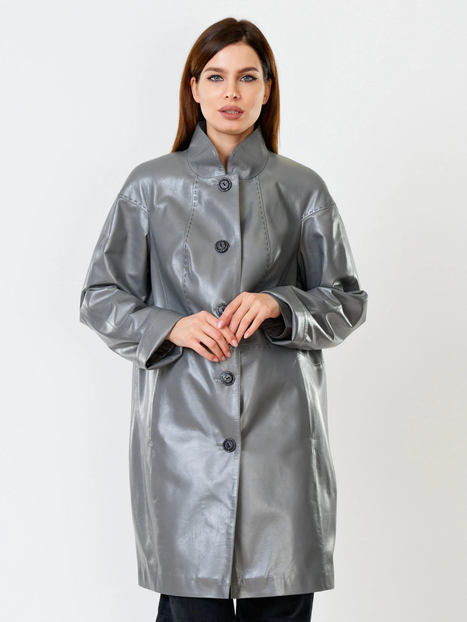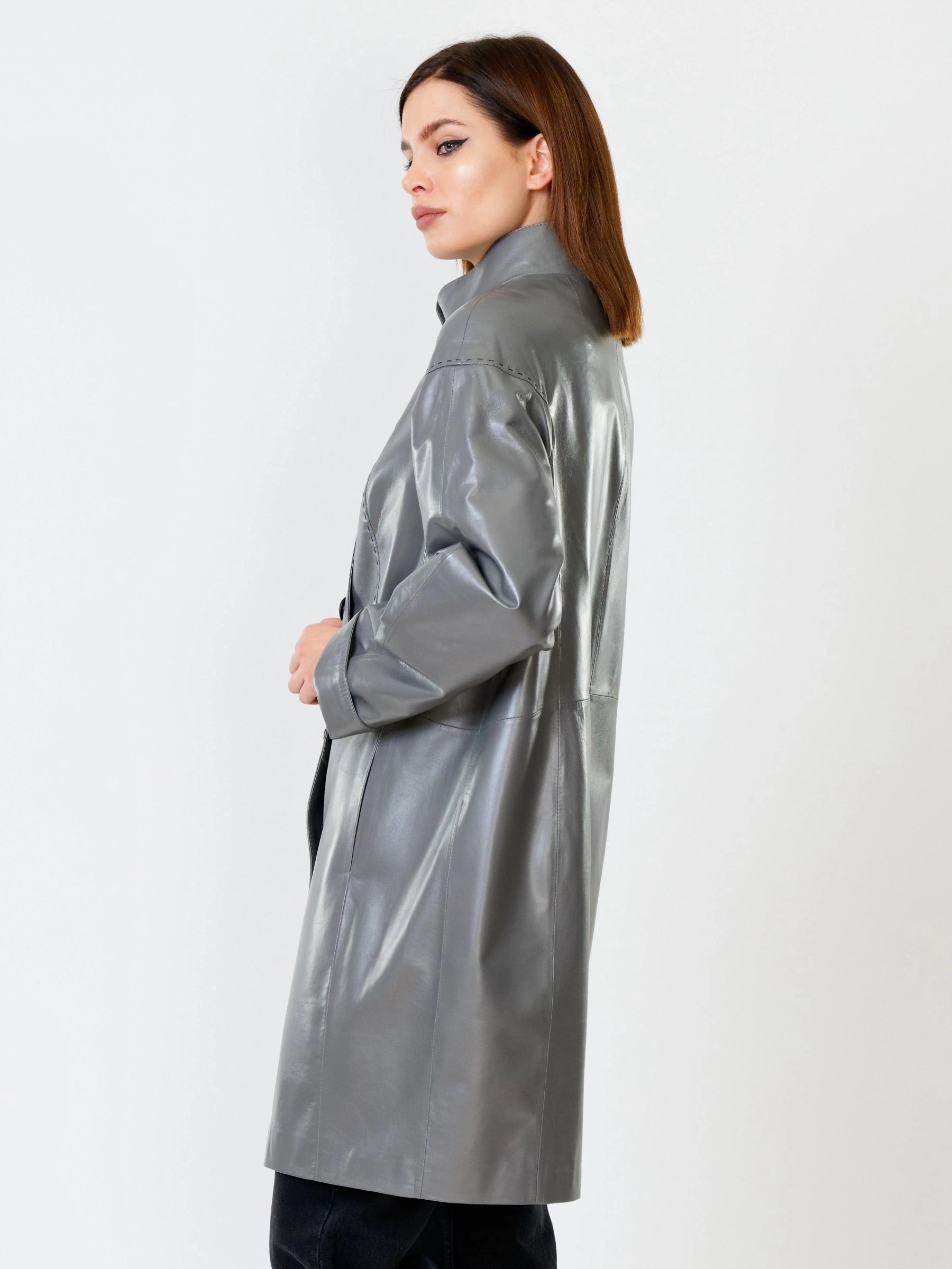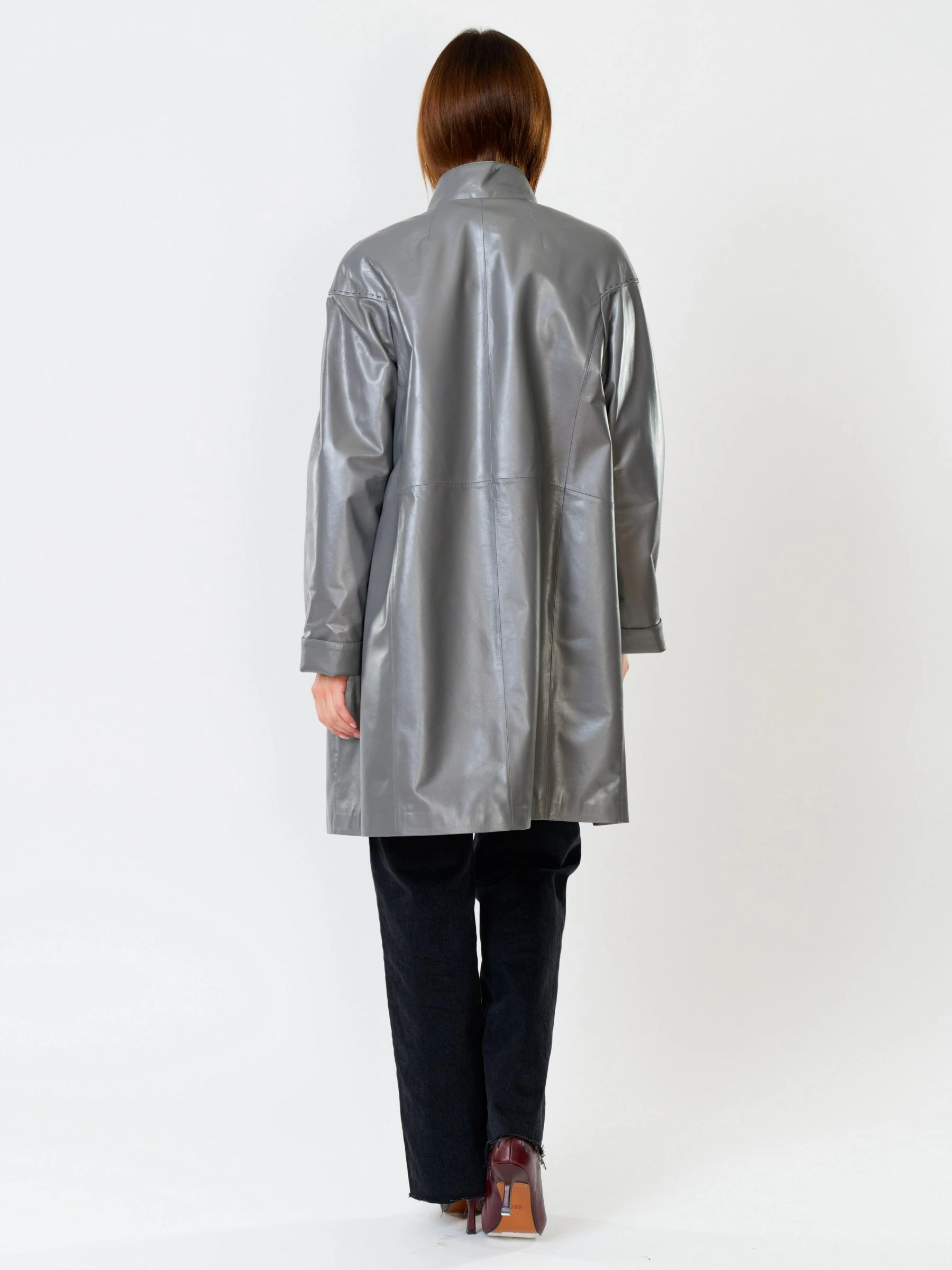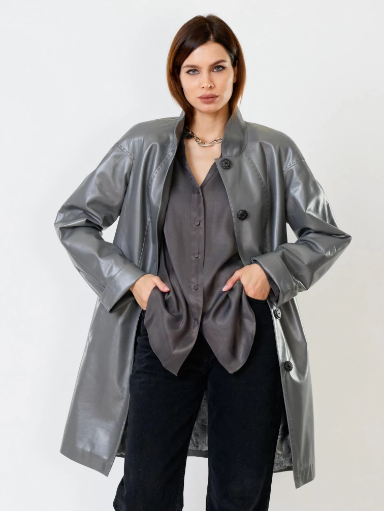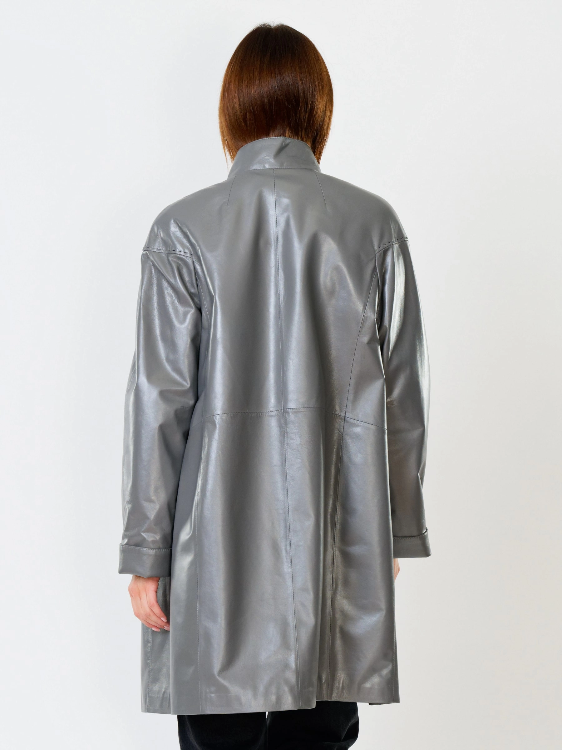 Кожаный женский плащ 378, серый, размер 50, артикул 91960
