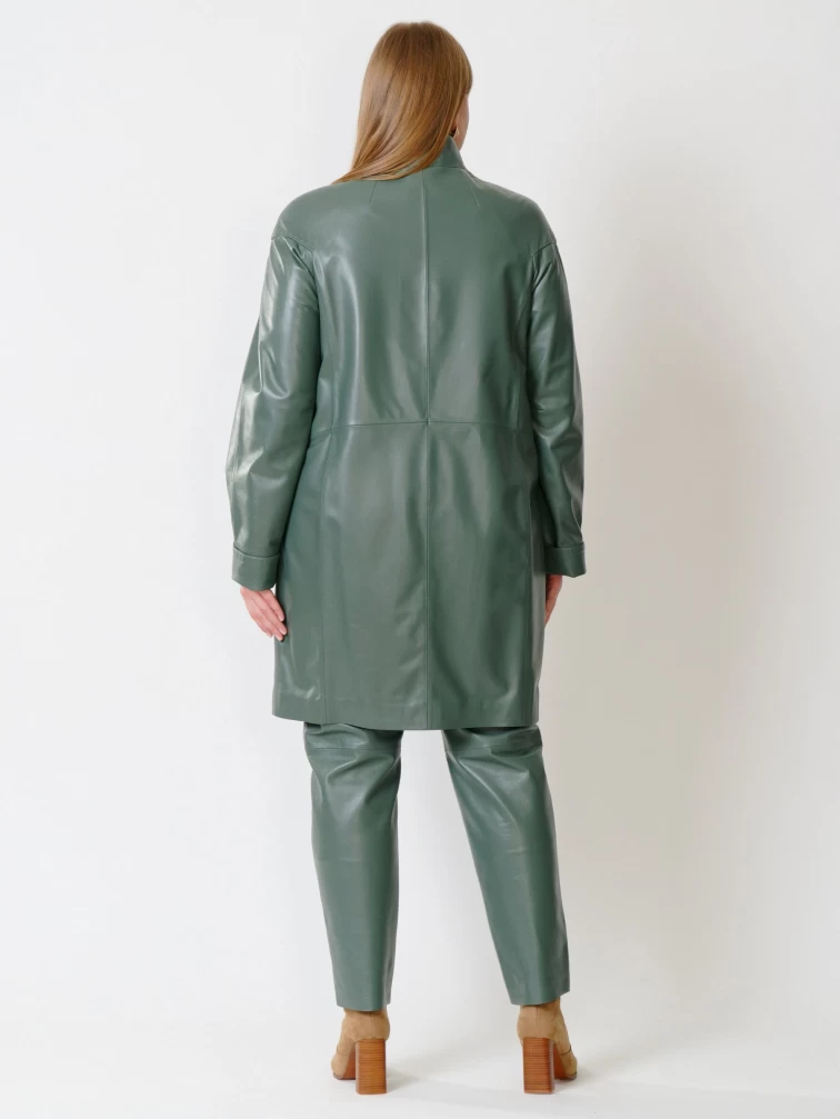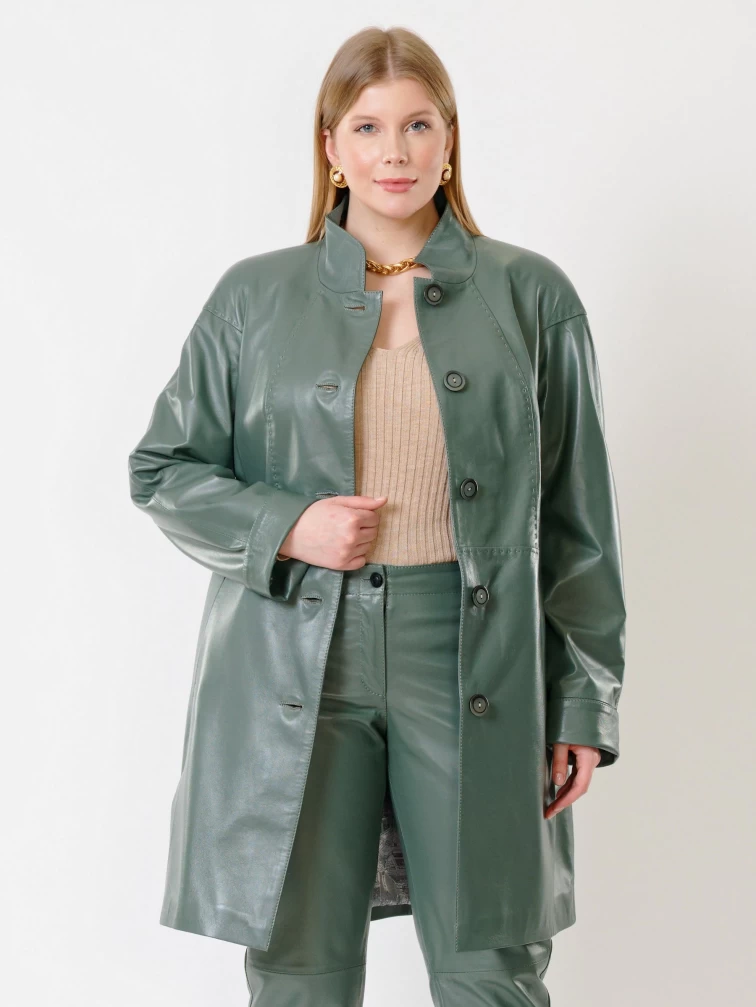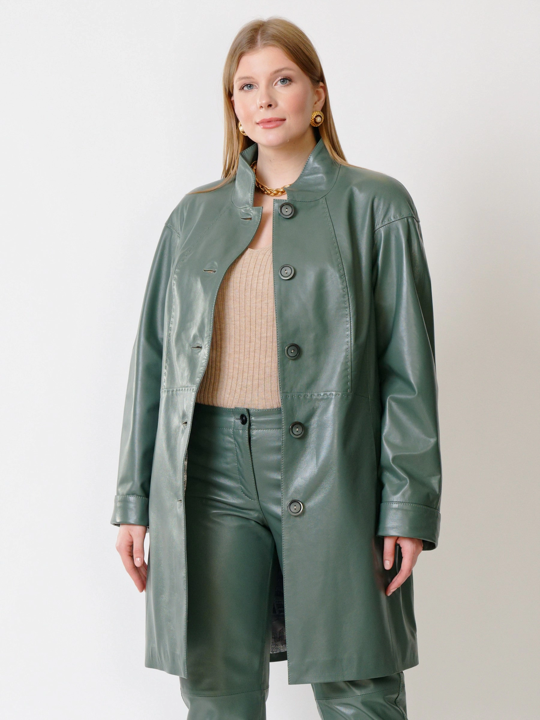 Кожаный женский плащ 378, оливковый, размер 50, артикул 92002