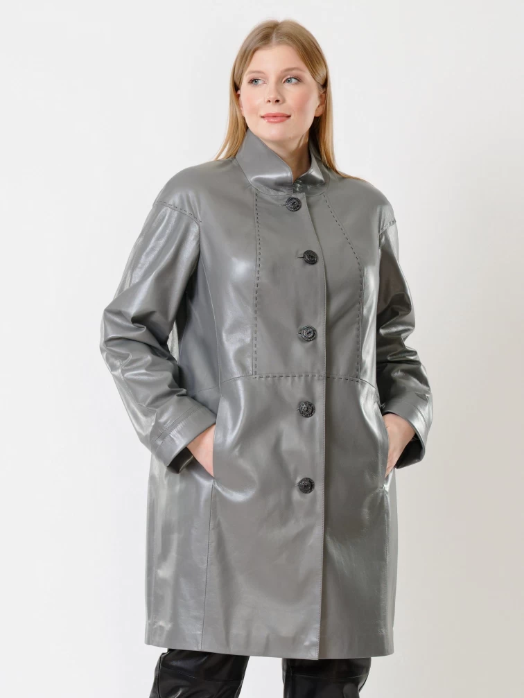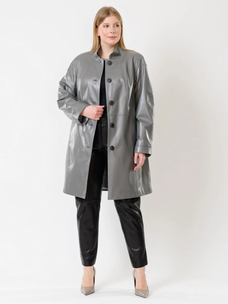 Кожаный женский плащ 378, серый, размер 50, артикул 91962