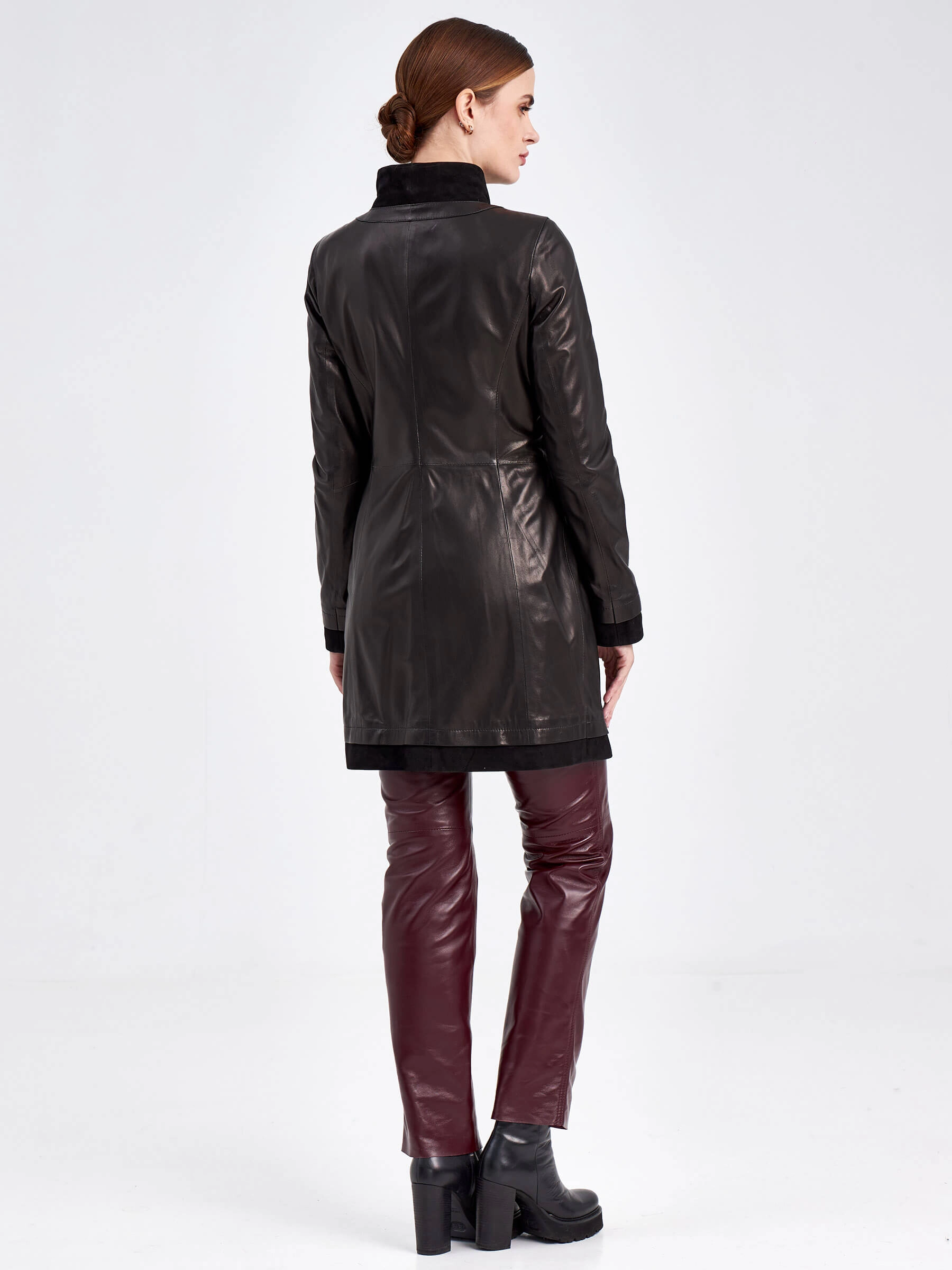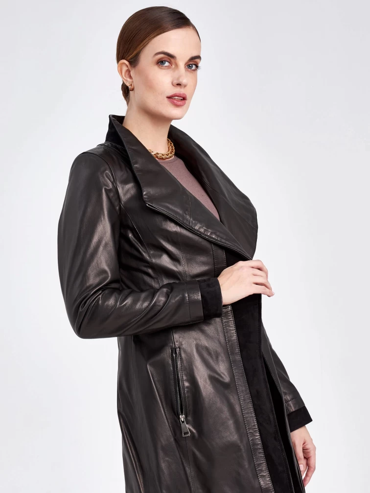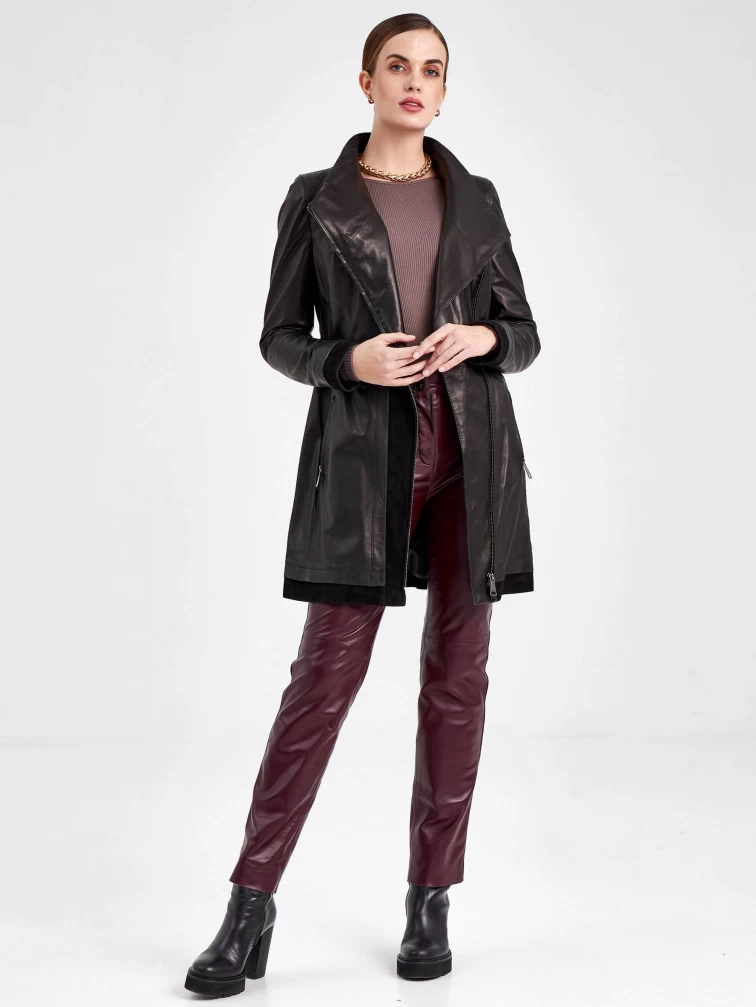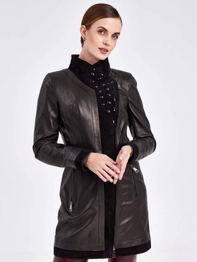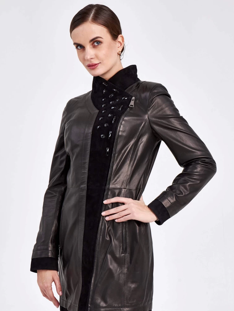 Кожаный плащ женский 395, черный, размер 46, артикул 91770