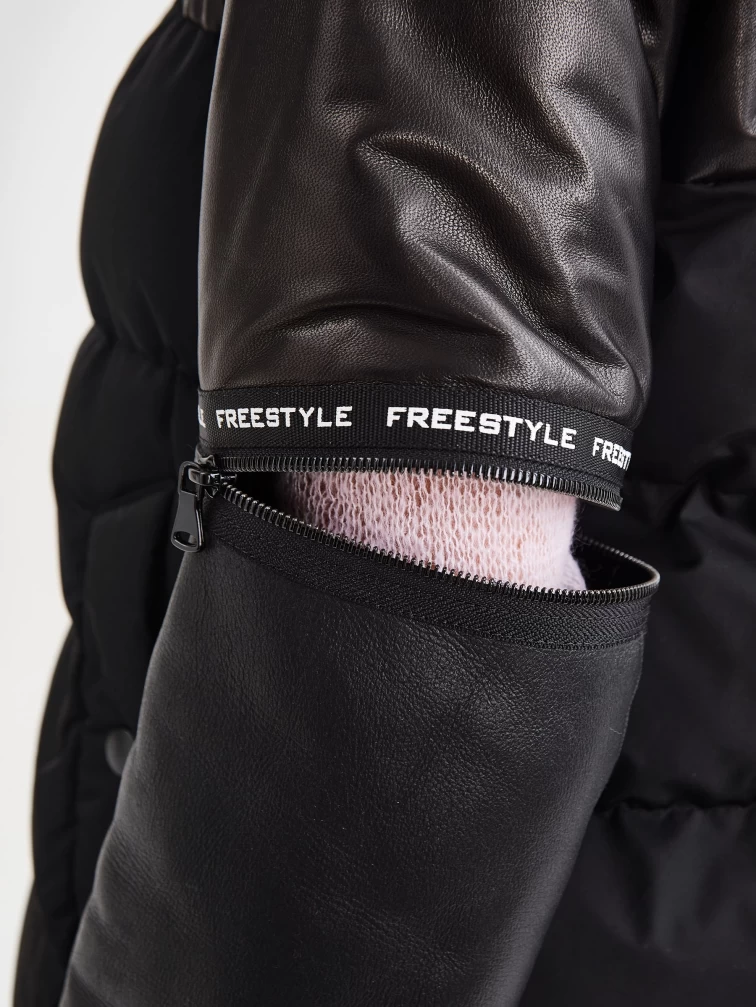Черный короткий пуховик сшили из натуральной кожи в комбинации с плотно водоотталкивающим материалом. Фасон куртки можно легко изменить отстегнув рукава. За дополнительный комфорт отвечает – глубокий съемный капюшон и высокий воротник - стойка. Модель дополнили боковыми разрезами застегиющиеся на кнопки. Куртка с немецким утеплителем - синтепон Френденберг - это отличная теплоизоляция, превосходная парапроницаемость, простой уход.