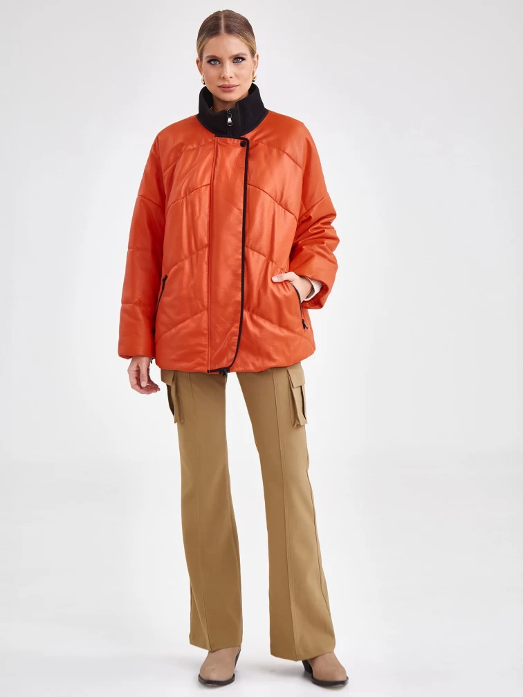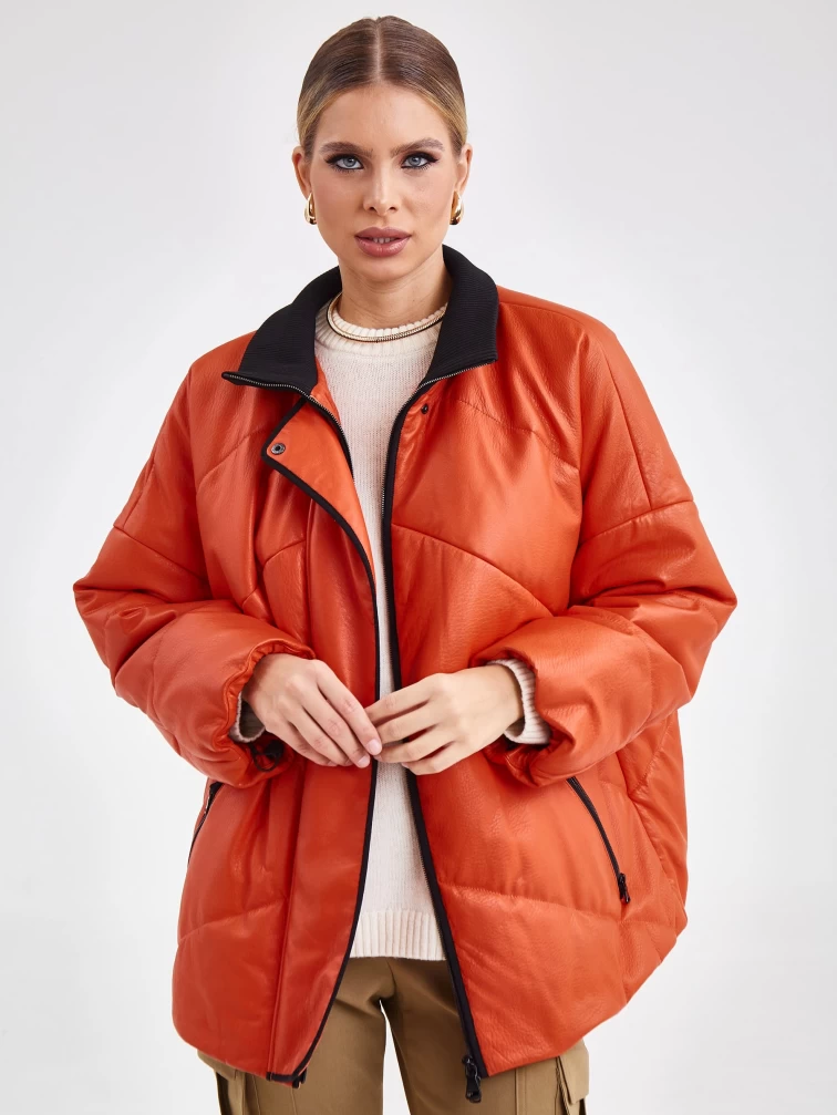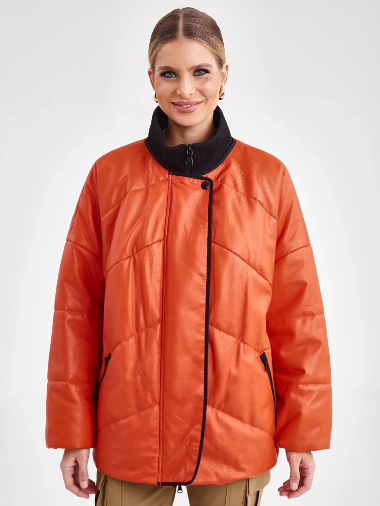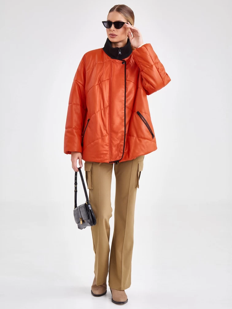 Товар женский кожаный пуховик оверсайз премиум класса 3022, оранжевый, размер 44, артикул 25380 выполнен из натуральной кожи с застежкой молния. Рассчитан на сезон: демисезон. Длина изделия 51-74 см, силуэт свободный.