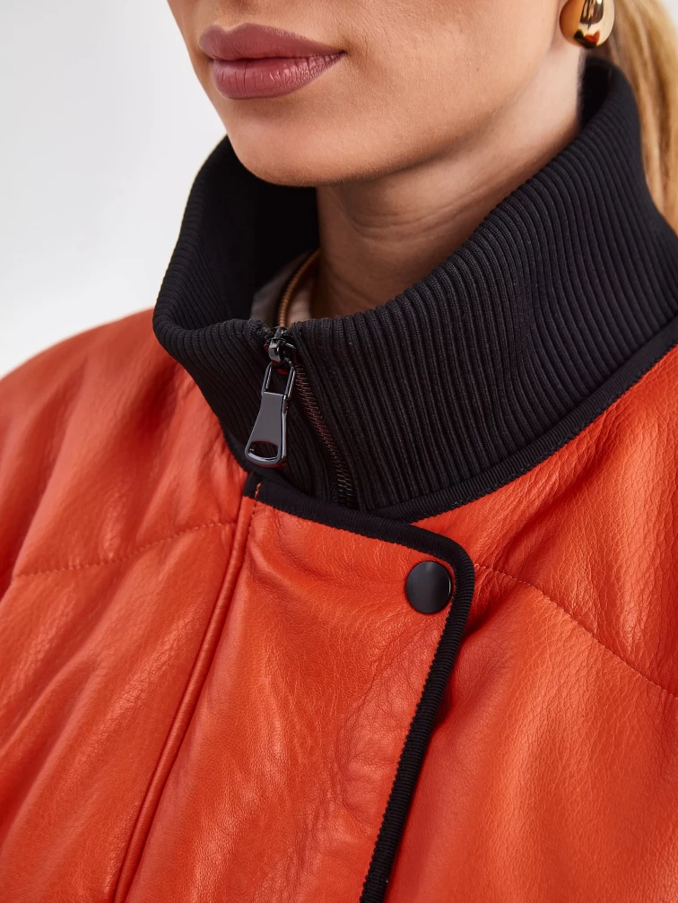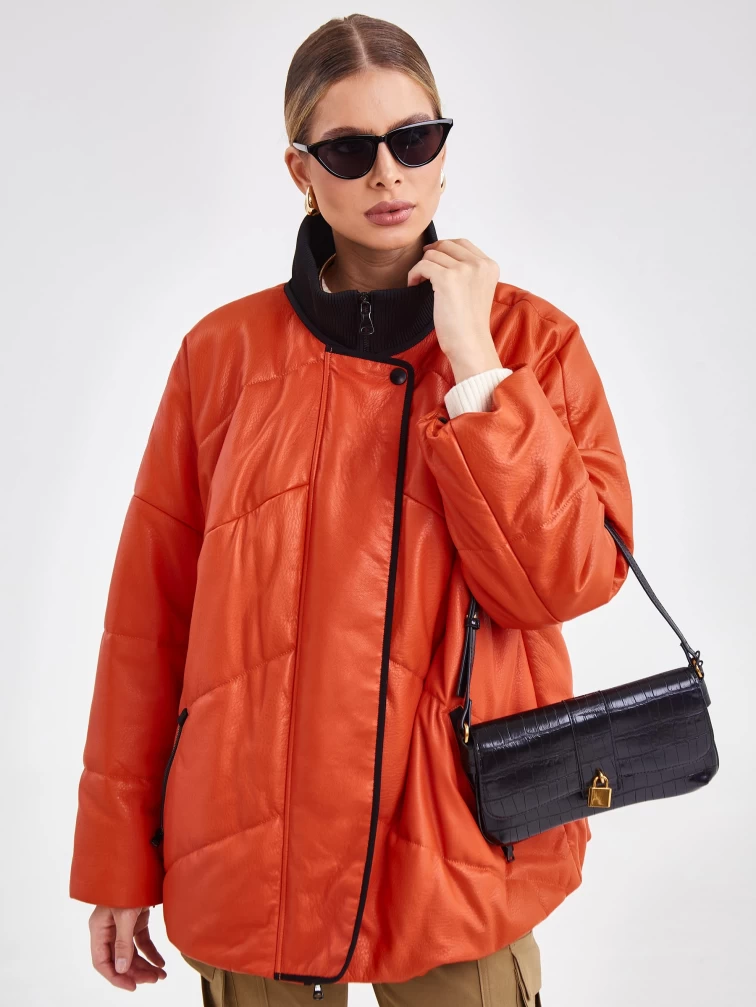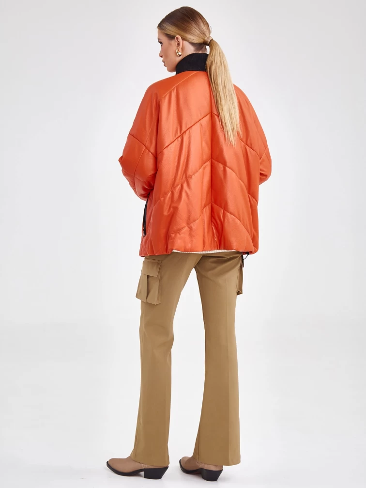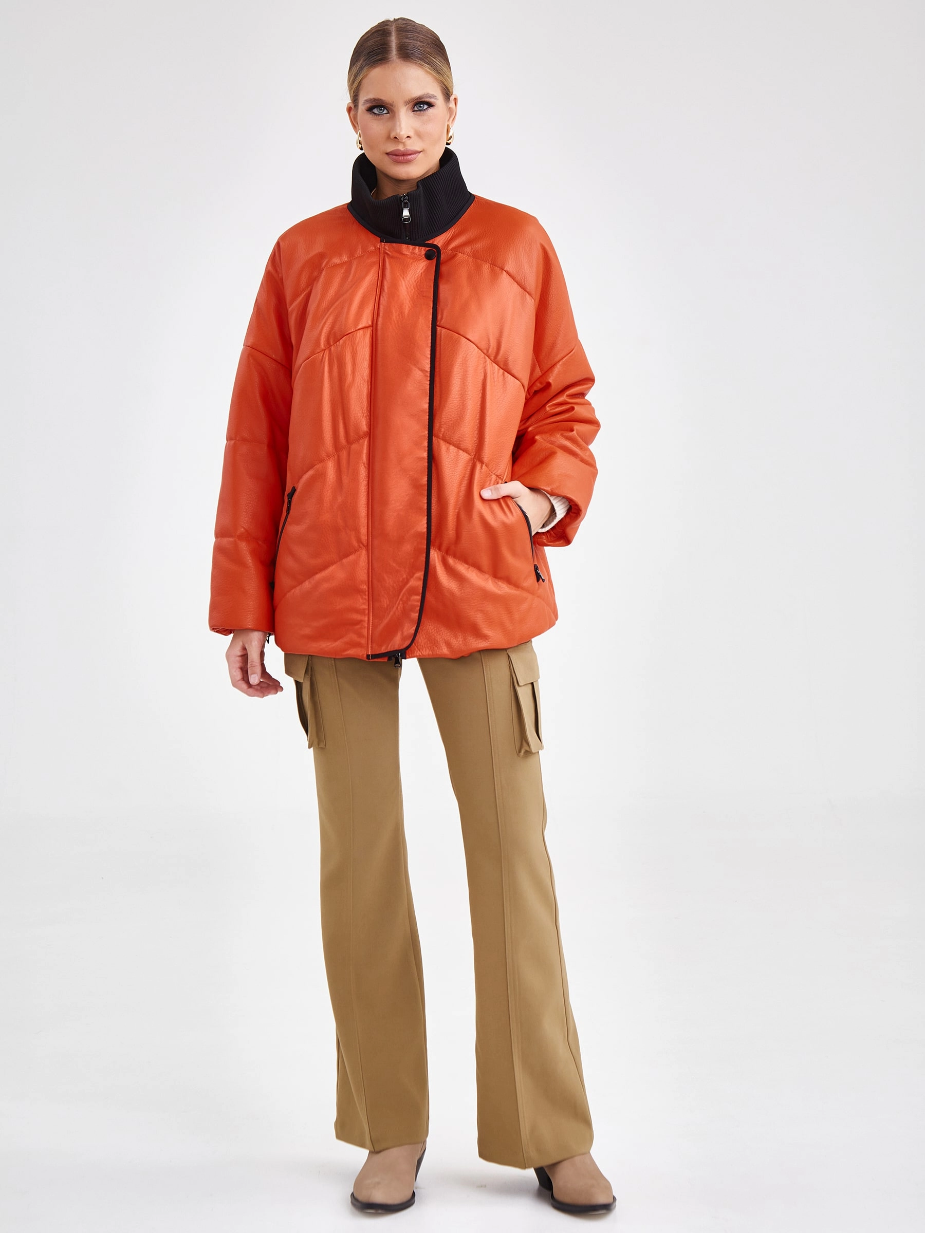 Товар женский кожаный пуховик оверсайз премиум класса 3022, оранжевый, размер 44, артикул 25380 выполнен из натуральной кожи с застежкой молния. Рассчитан на сезон: демисезон. Длина изделия 51-74 см, силуэт свободный.