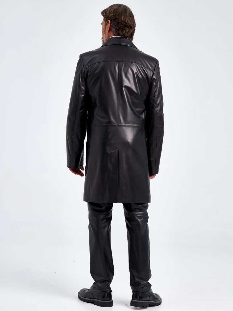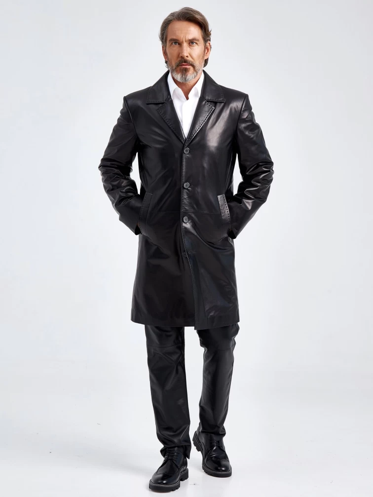 Мужской кожаный тренч премиум класса 2010-11, черный, размер 52, артикул 29050