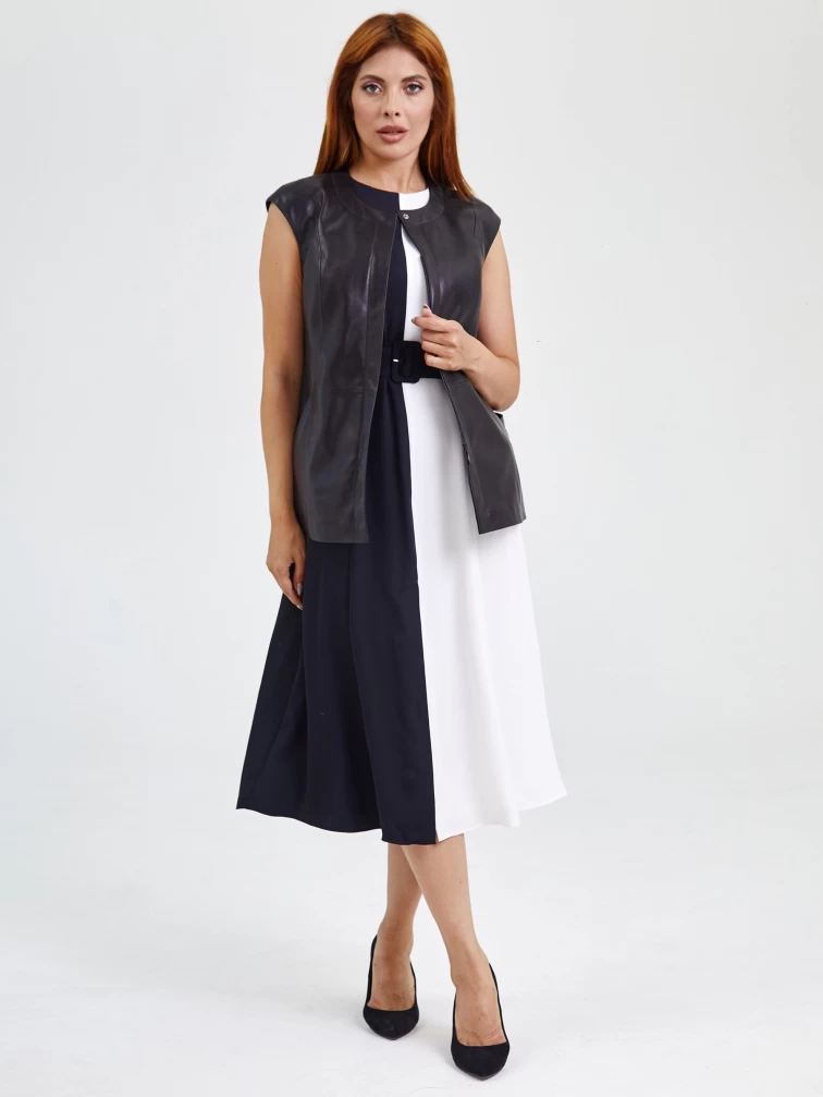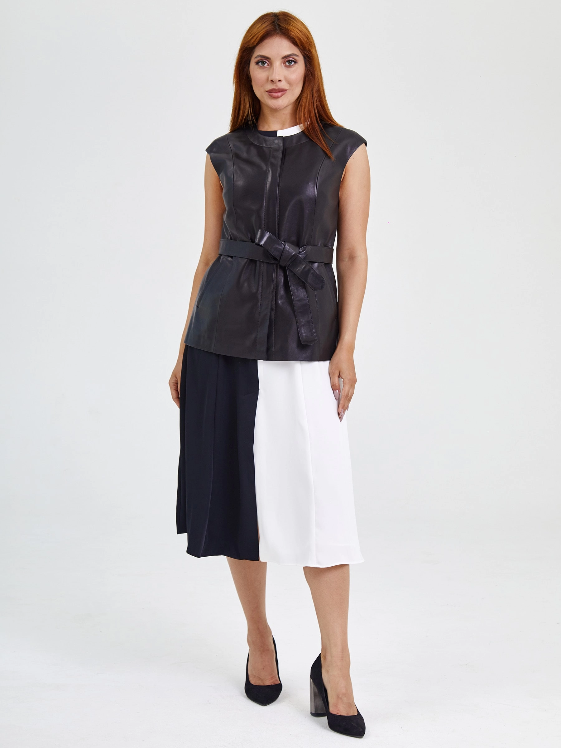 Женский жилет из натуральной кожи премиум класса 04, черный, размер 50, артикул 91720