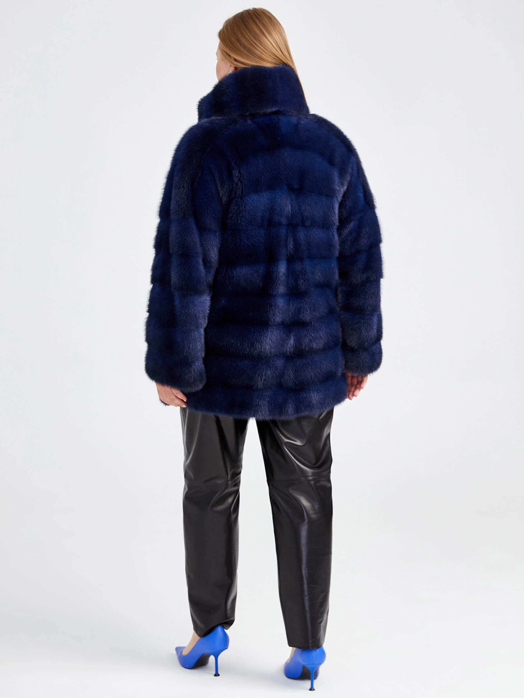 Куртка из меха норки женская 1150(кв), синяя, размер 52, артикул 32800