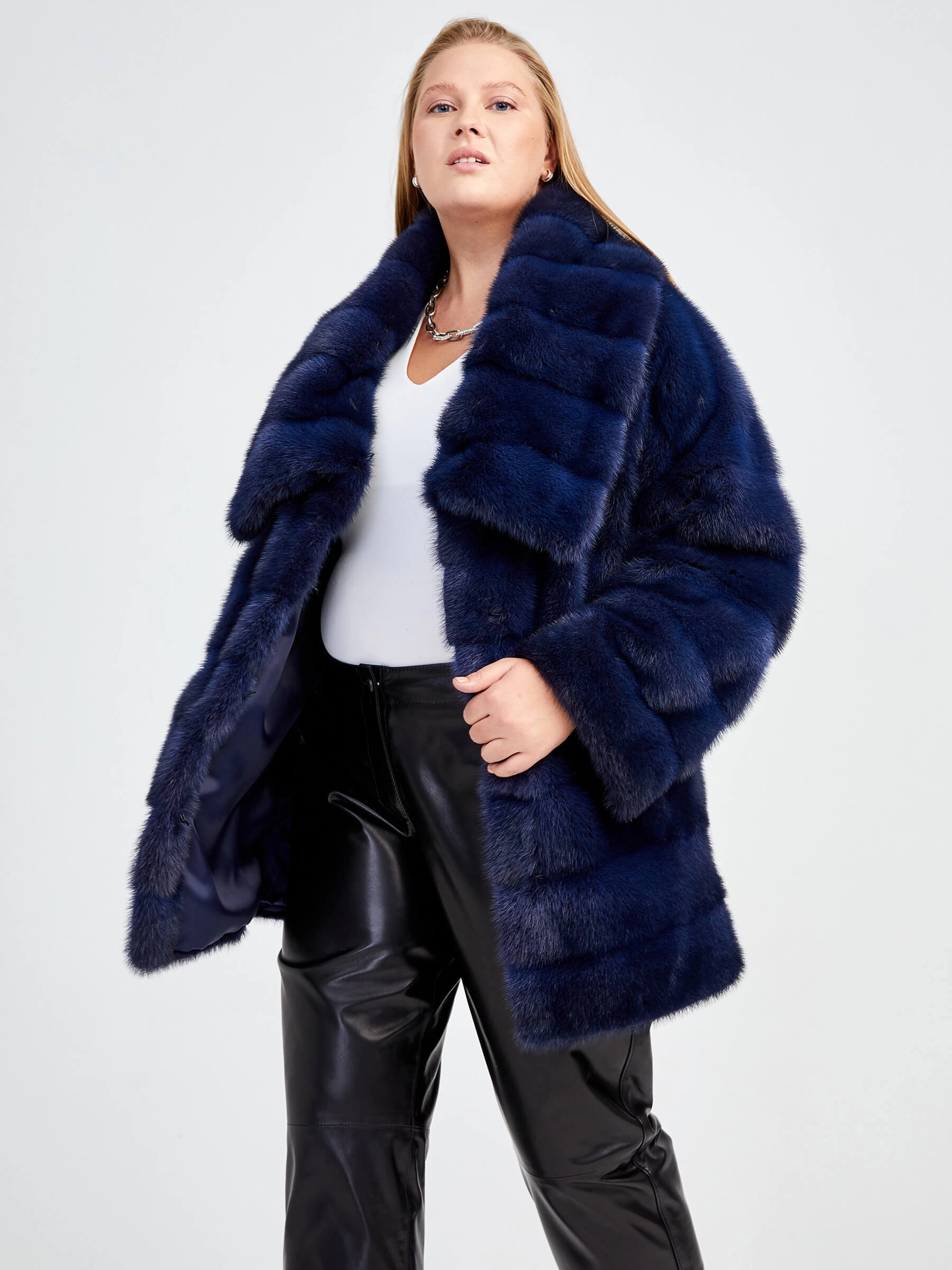 Элегантная повседневная куртка из меха норки укороченного кроя (51-74 см) — идеальный выбор для сезона Осень–Зима. Прямой силуэт классической модели и втачной рукав создают аккуратный городской силуэт, а отложной воротник вместо капюшона подчёркивает сдержанный стиль. Модель застёгивается на практичные металлические клипсы, а отсутствие декоративной отделки делает акцент на естественной красоте и благородной текстуре меха. Благодаря горизонтальной раскладке меха, куртка визуально стройнит. Внутренняя подкладка из 100% вискозы обеспечивает тактильный комфорт, а мастерство портных — безупречную посадку по фигуре и свободу движений.