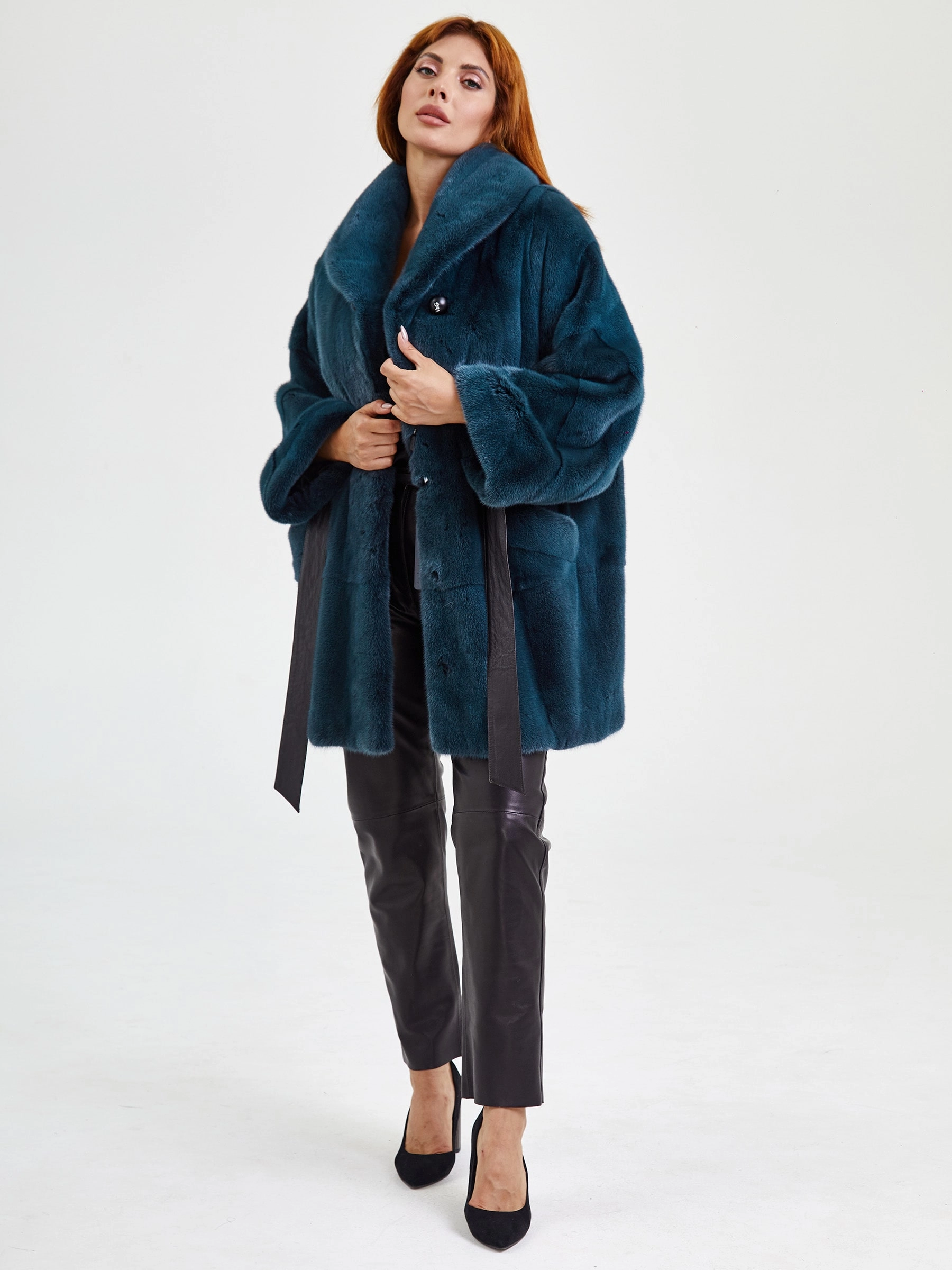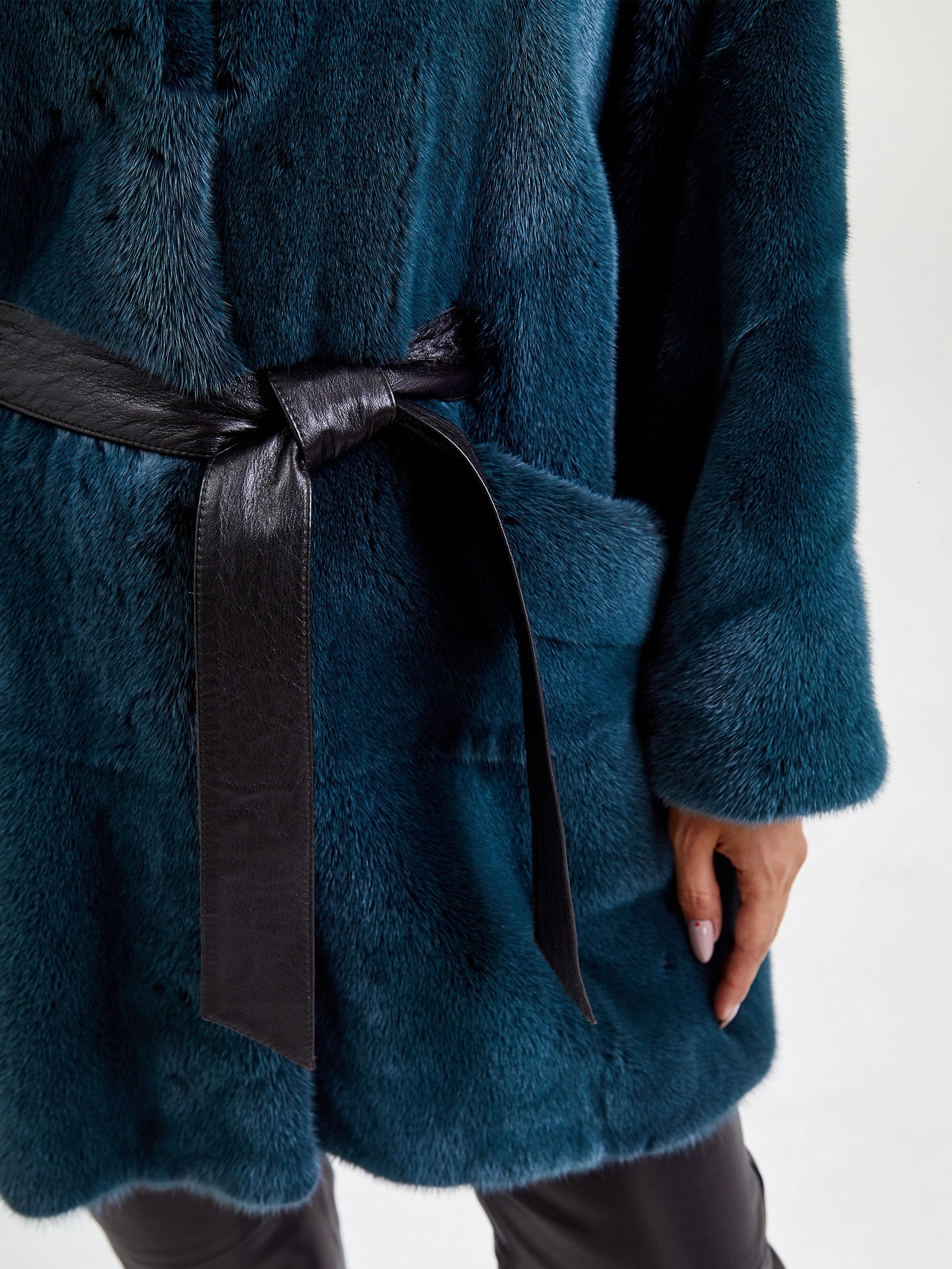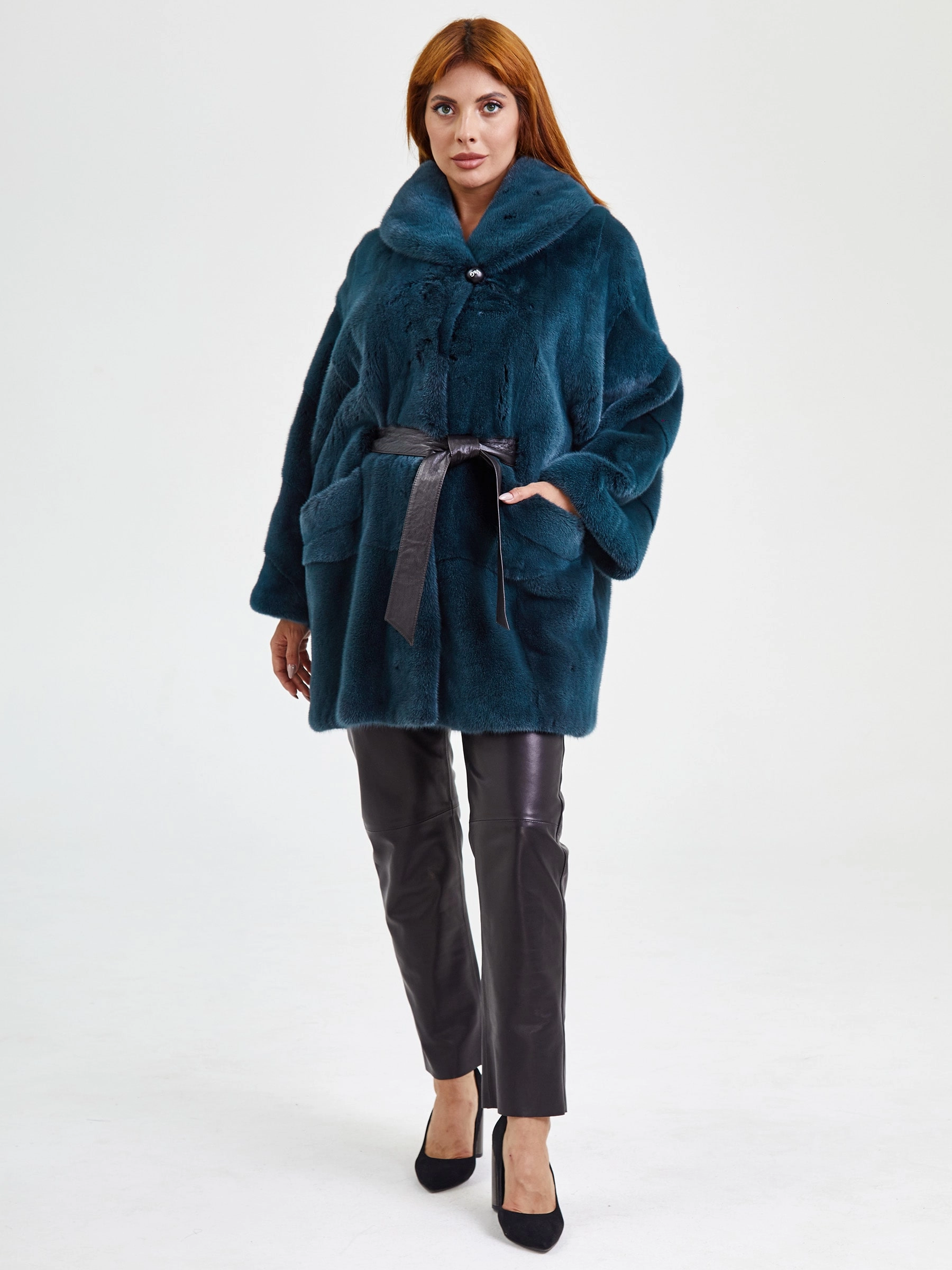 Товар шуба из меха норки с поясом для женщин 20701(в), зеленая, размер 44, артикул 33050 выполнен из норка с застежкой клипсы. Рассчитан на сезон: осень-зима. Длина изделия 75-90 см, силуэт прямой.