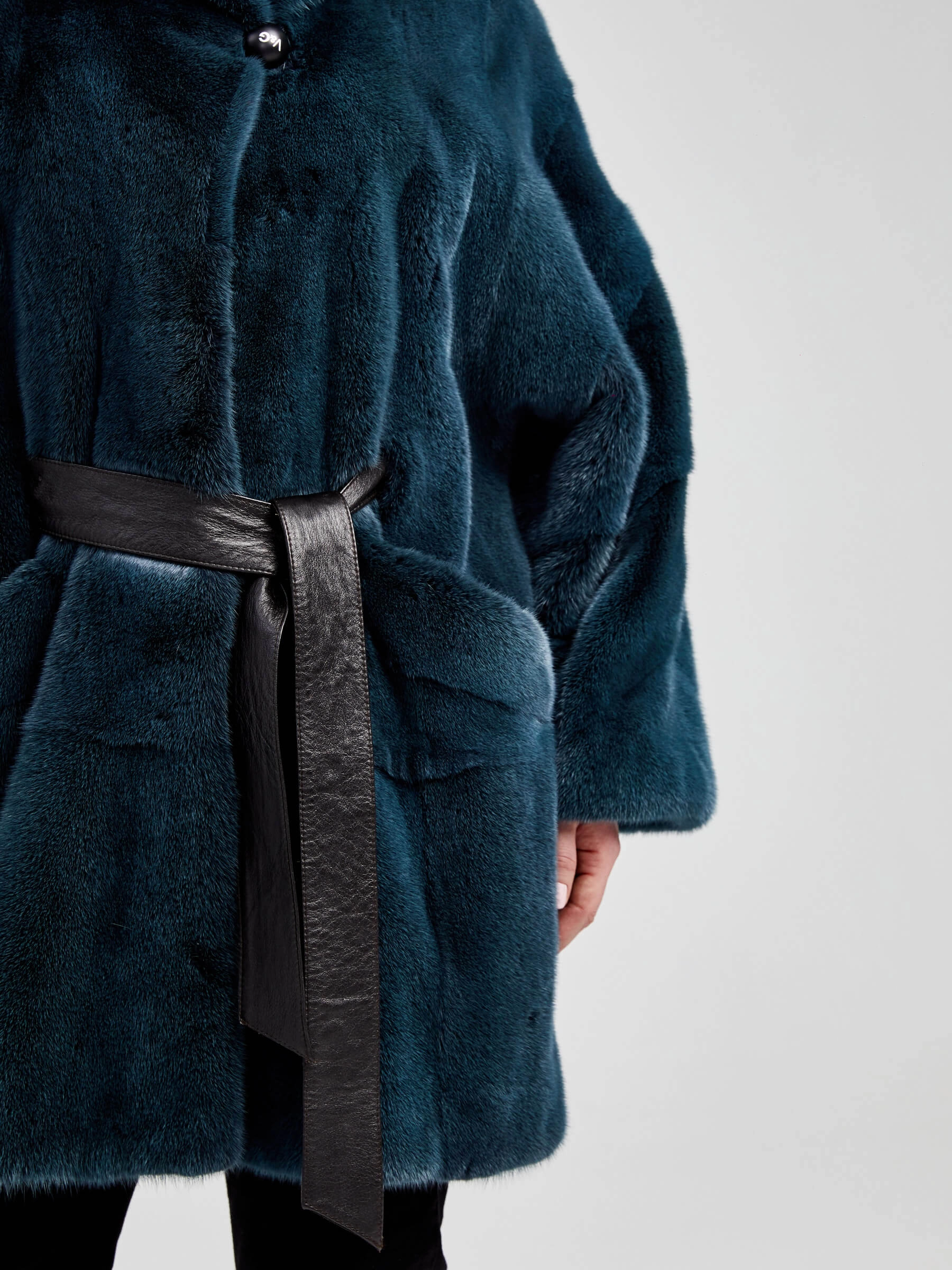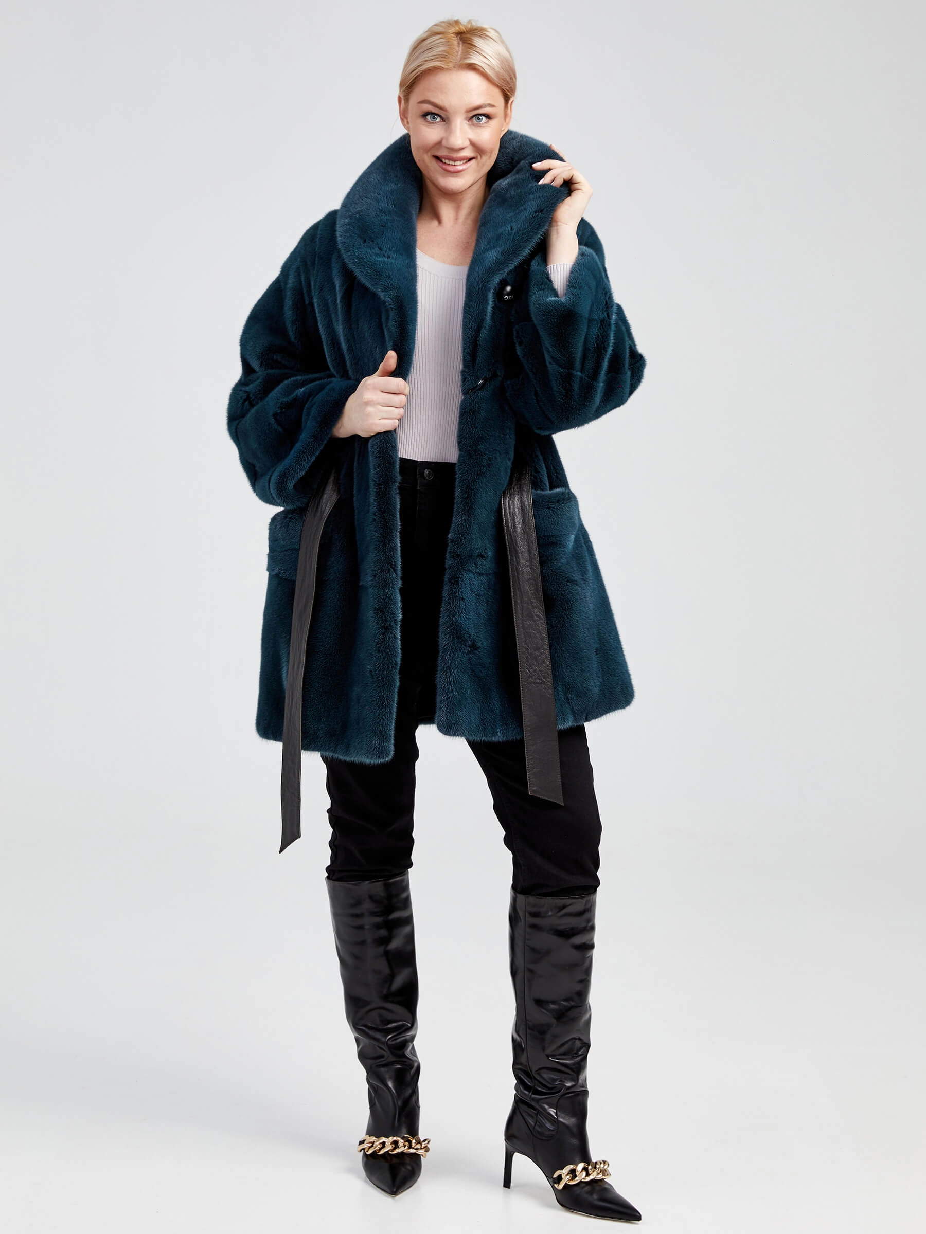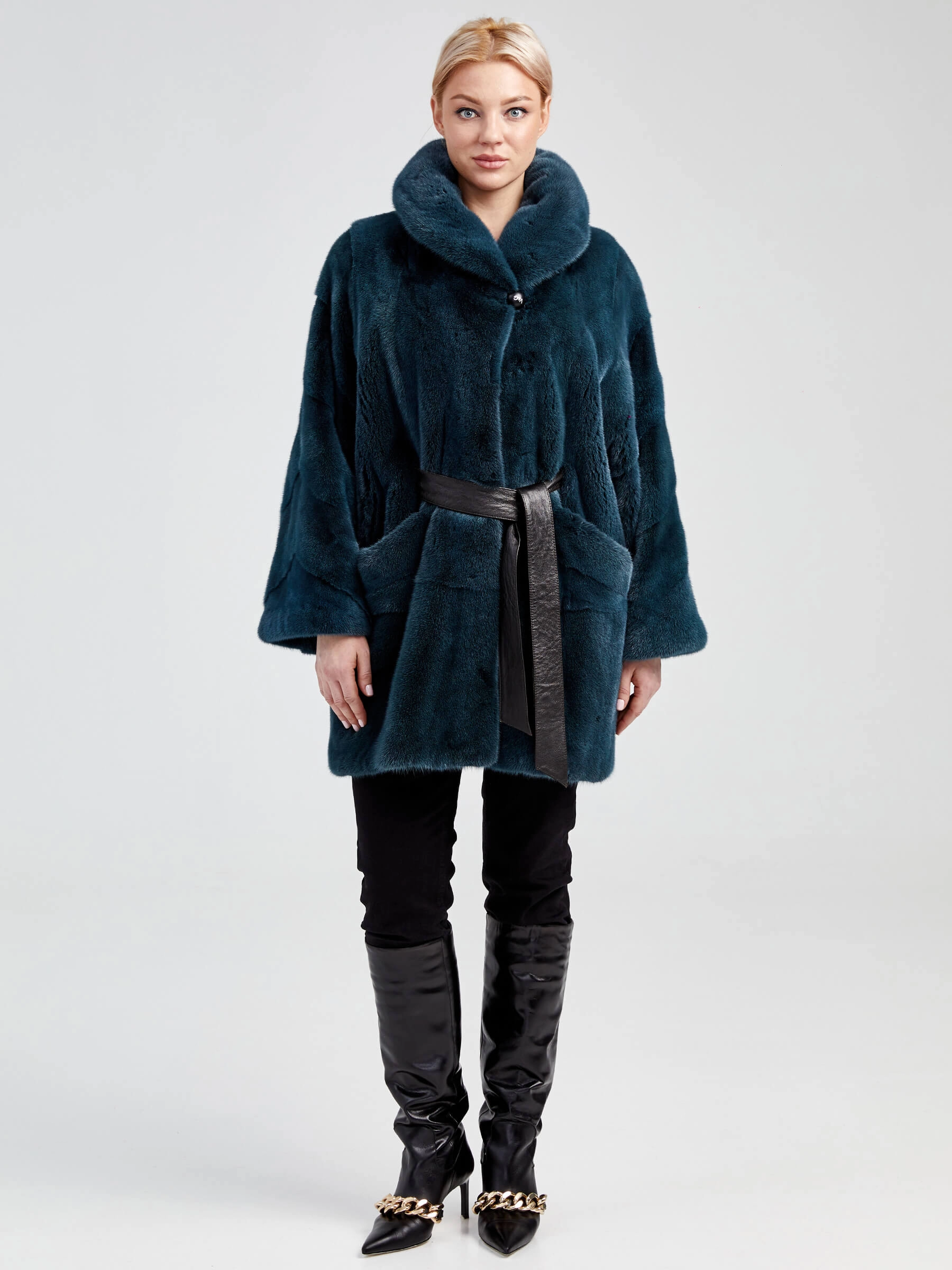 Товар шуба из меха норки с поясом для женщин 20701(в), зеленая, размер 44, артикул 33030 выполнен из норка с застежкой клипсы. Рассчитан на сезон: осень-зима. Длина изделия 75-90 см, силуэт прямой.