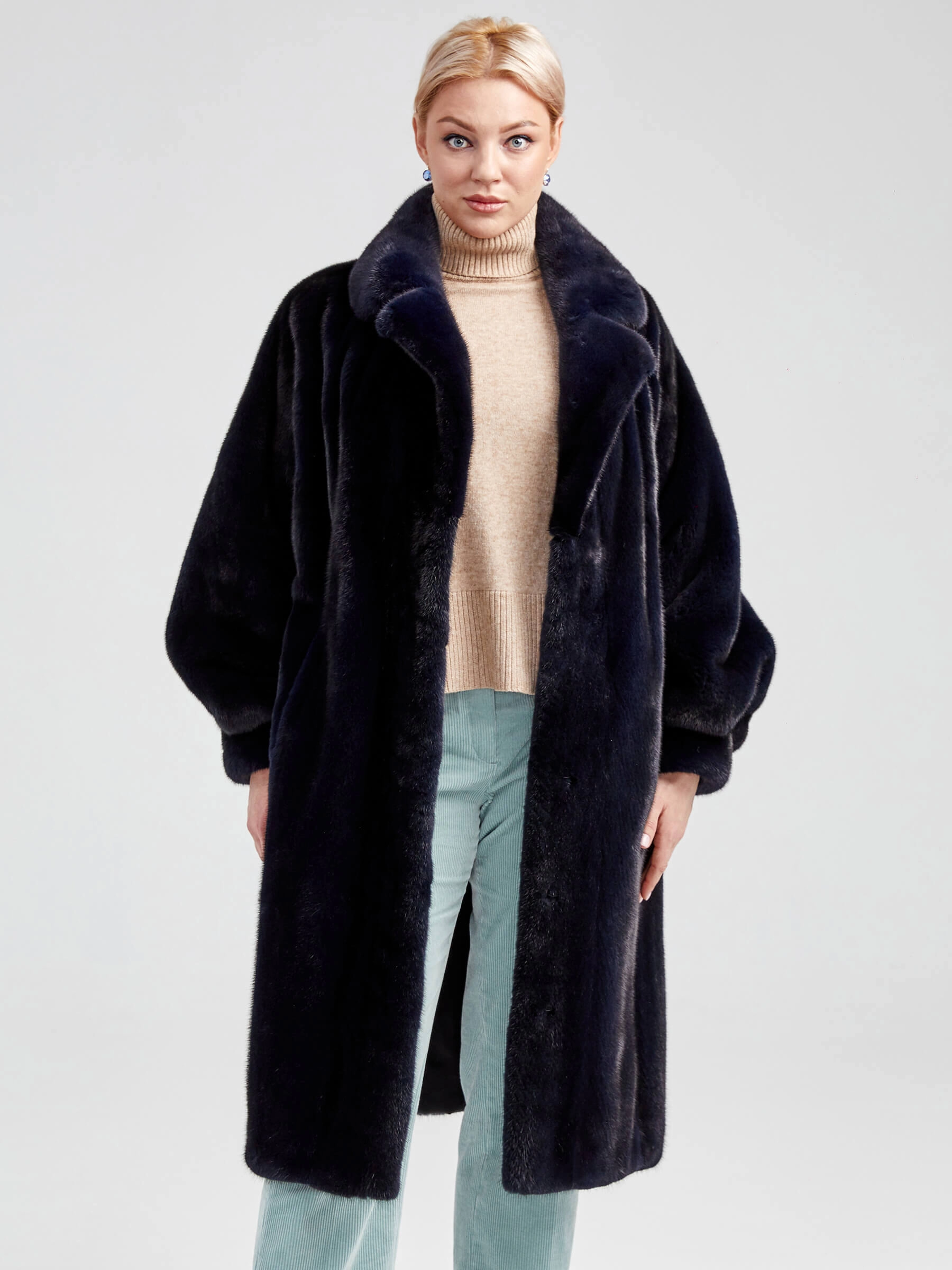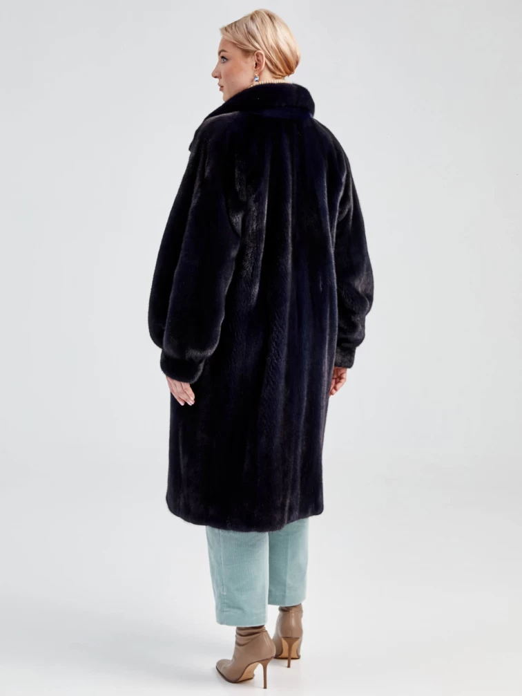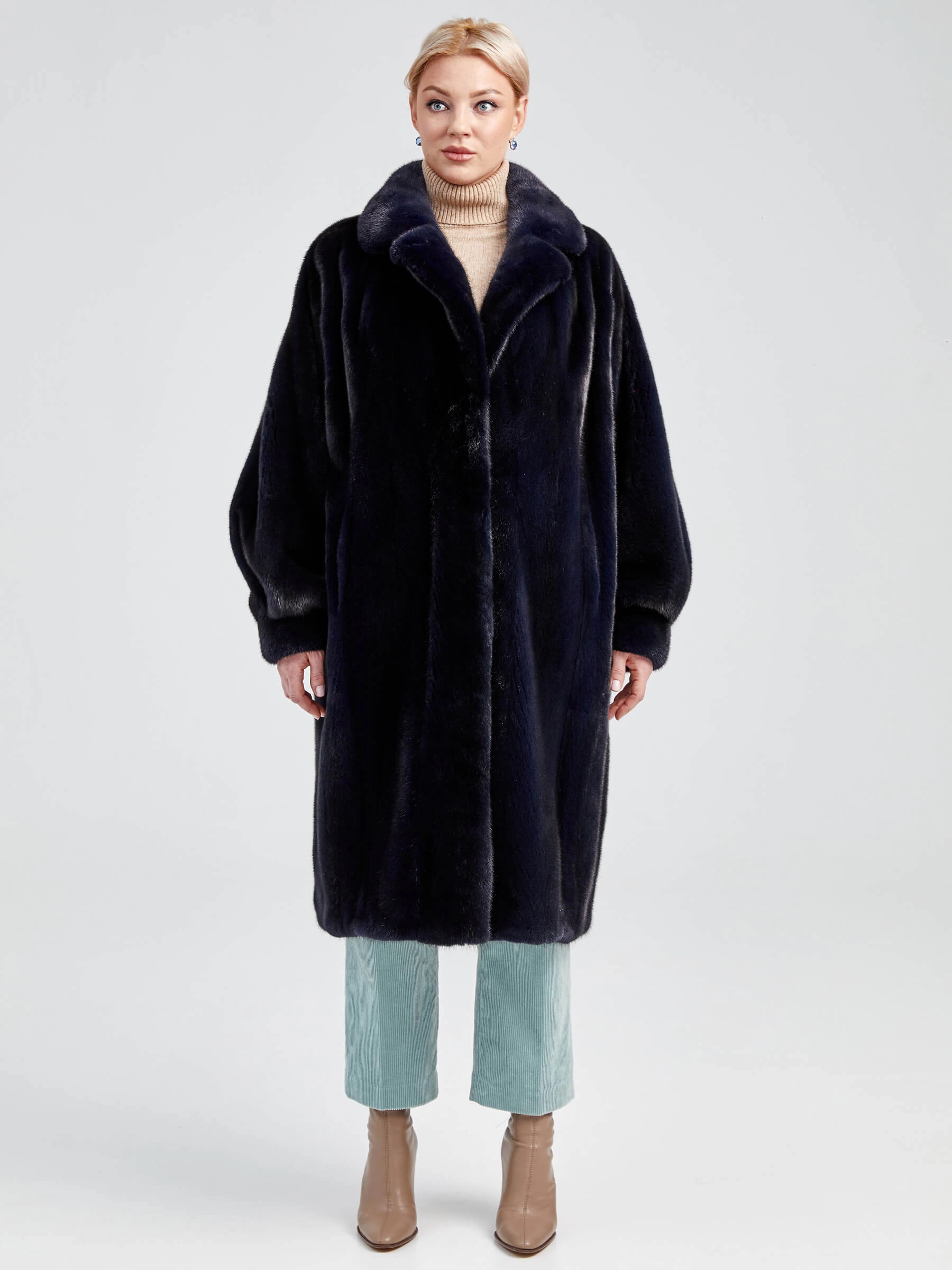 Шуба из меха норки женская 21655(ав), синий, размер 48, артикул 33010