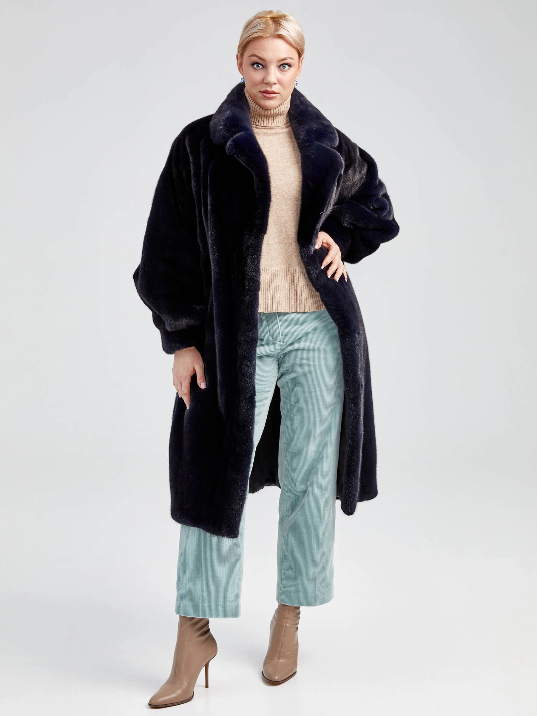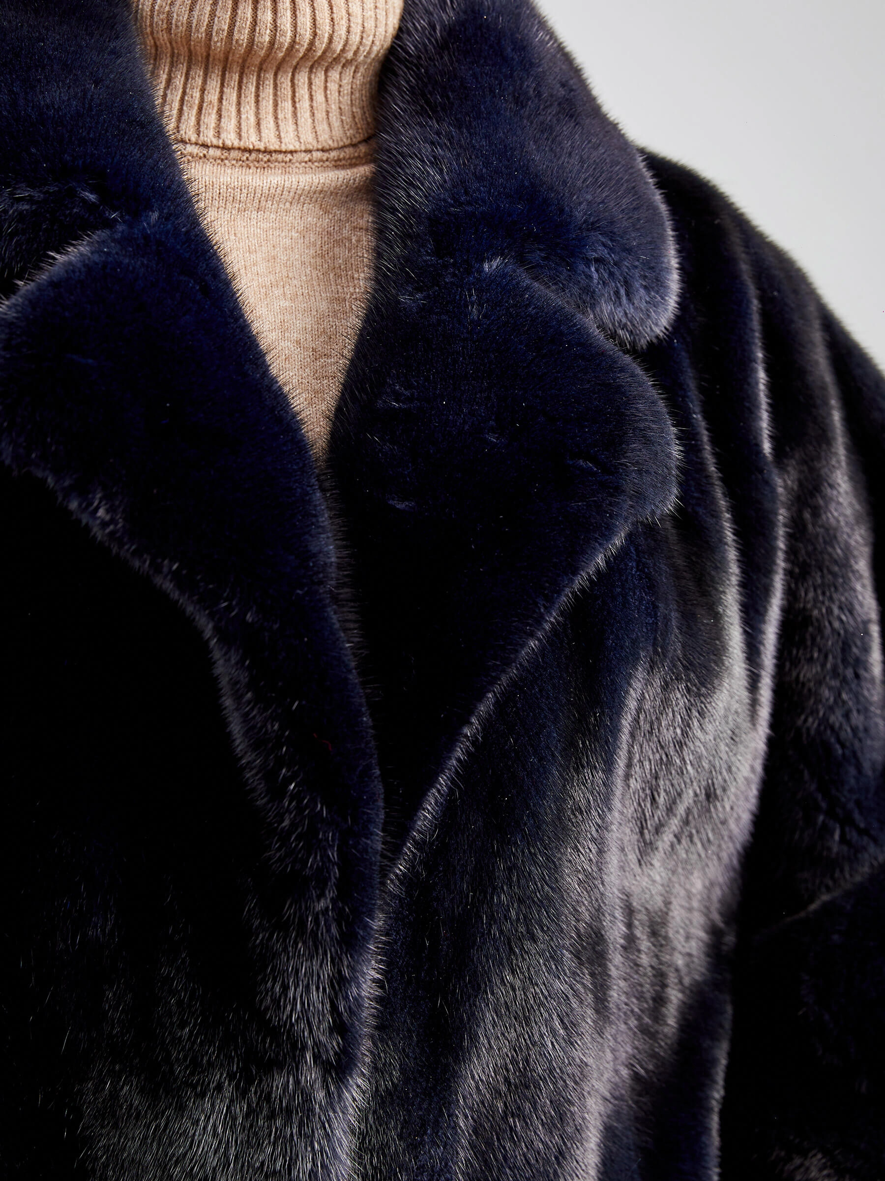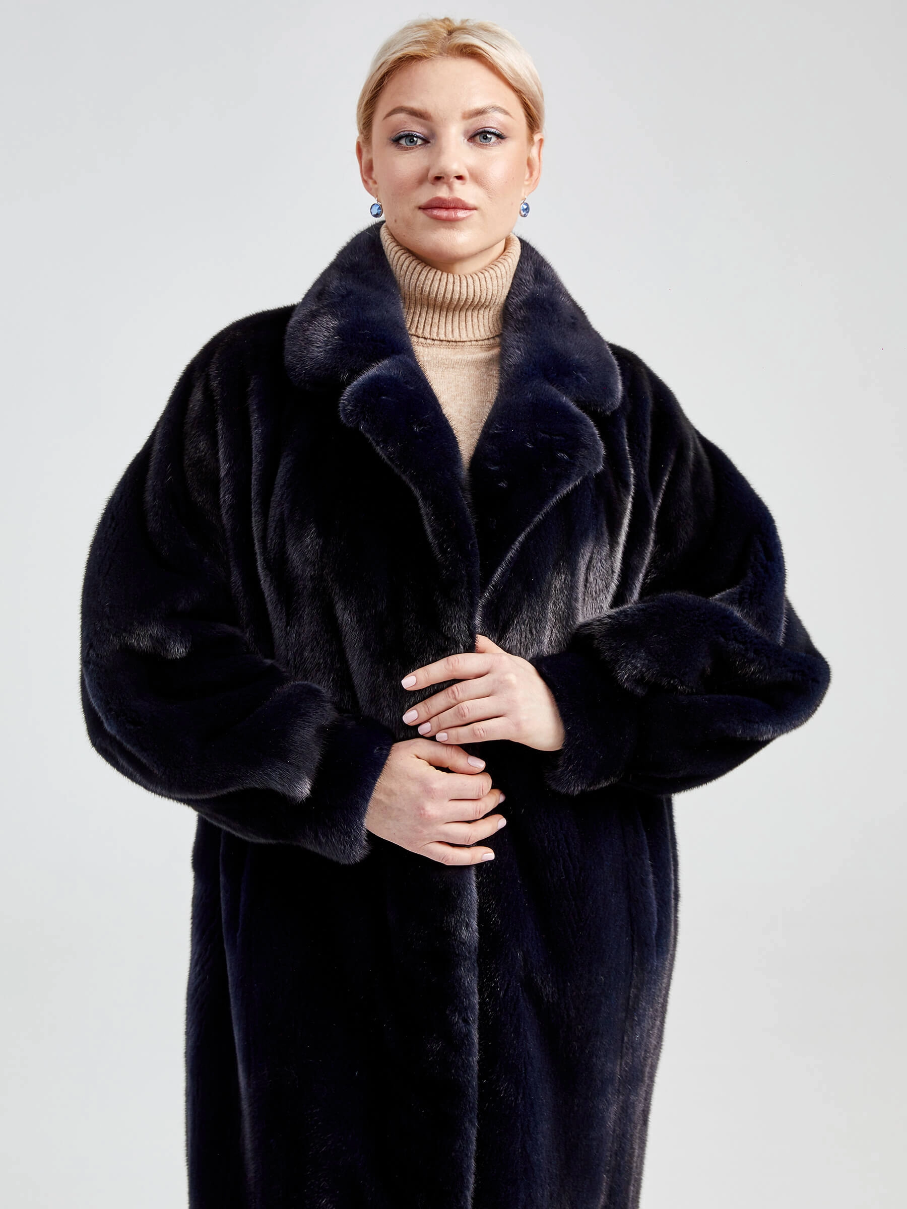 Шуба из меха норки женская 21655(ав), синий, размер 48, артикул 33010