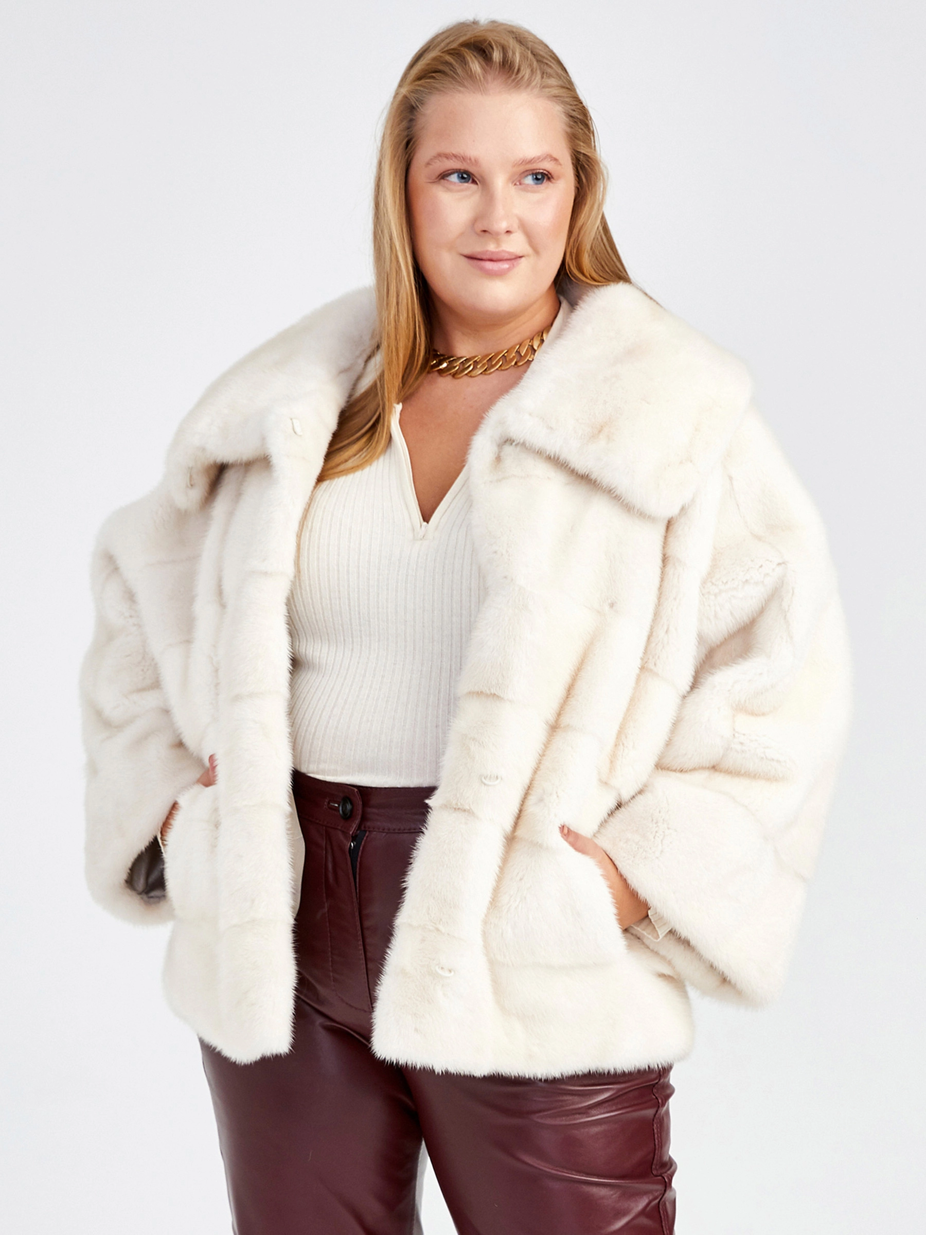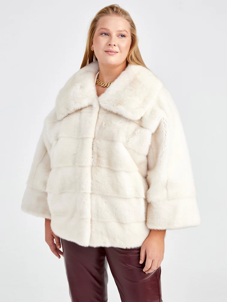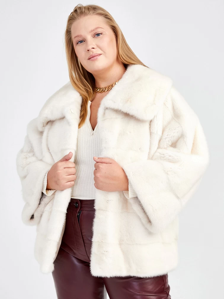 Куртка из меха норки женская Соня(в), жемчужная, размер 50, артикул 32880
