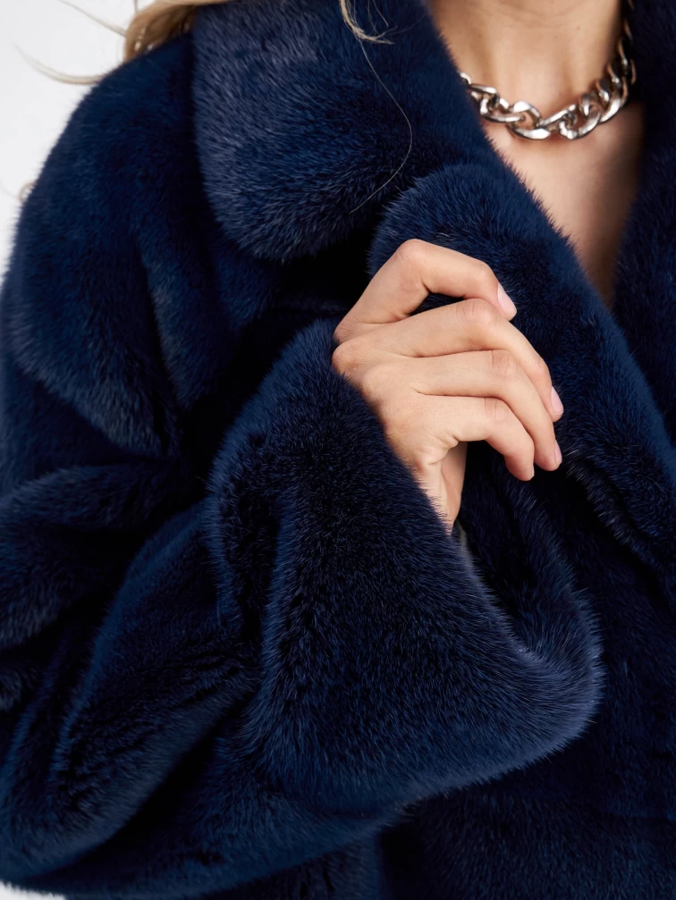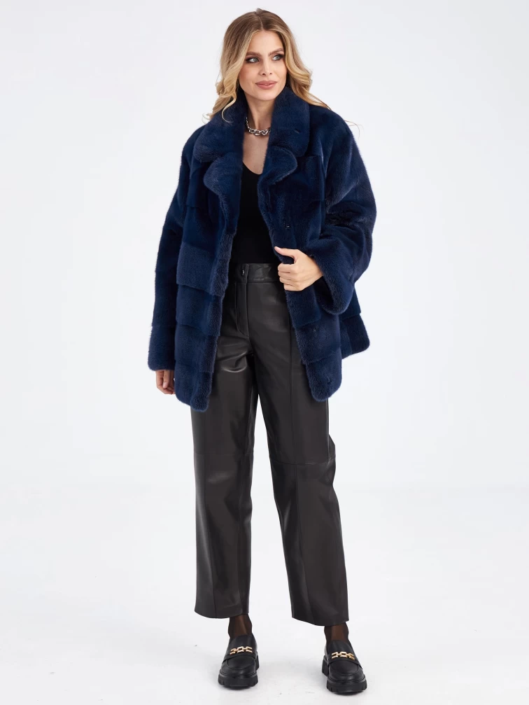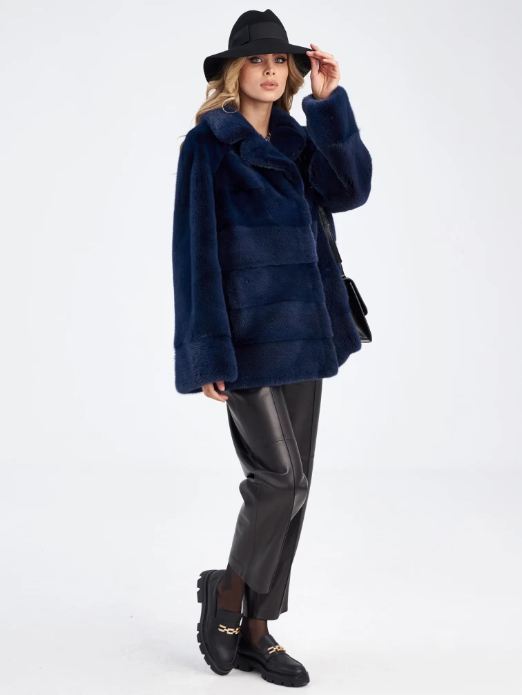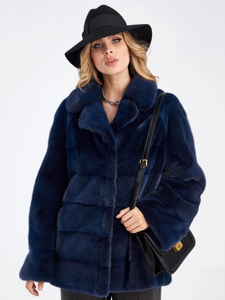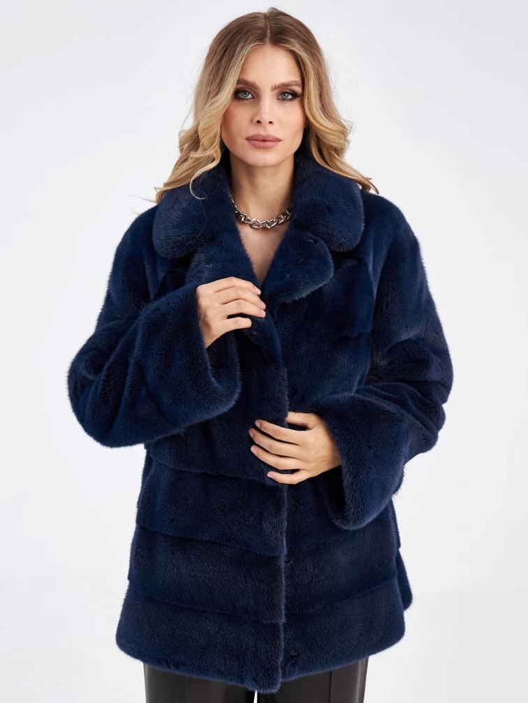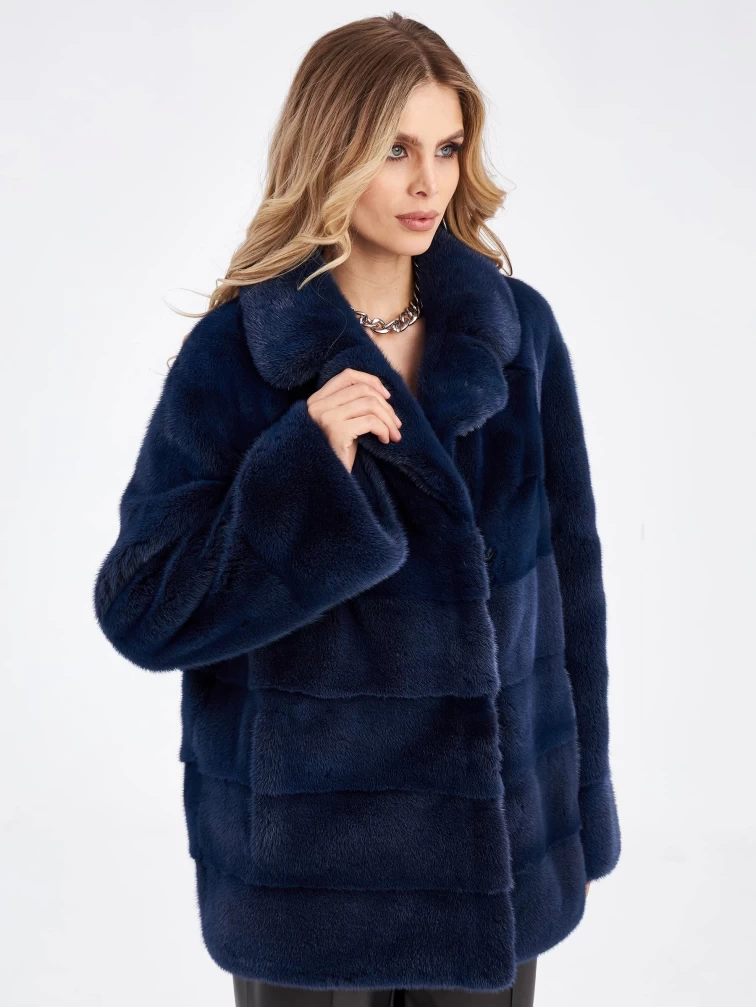 Женская куртка автоледи поперечка из меха норки Кейт, синяя, размер 56, артикул 33910