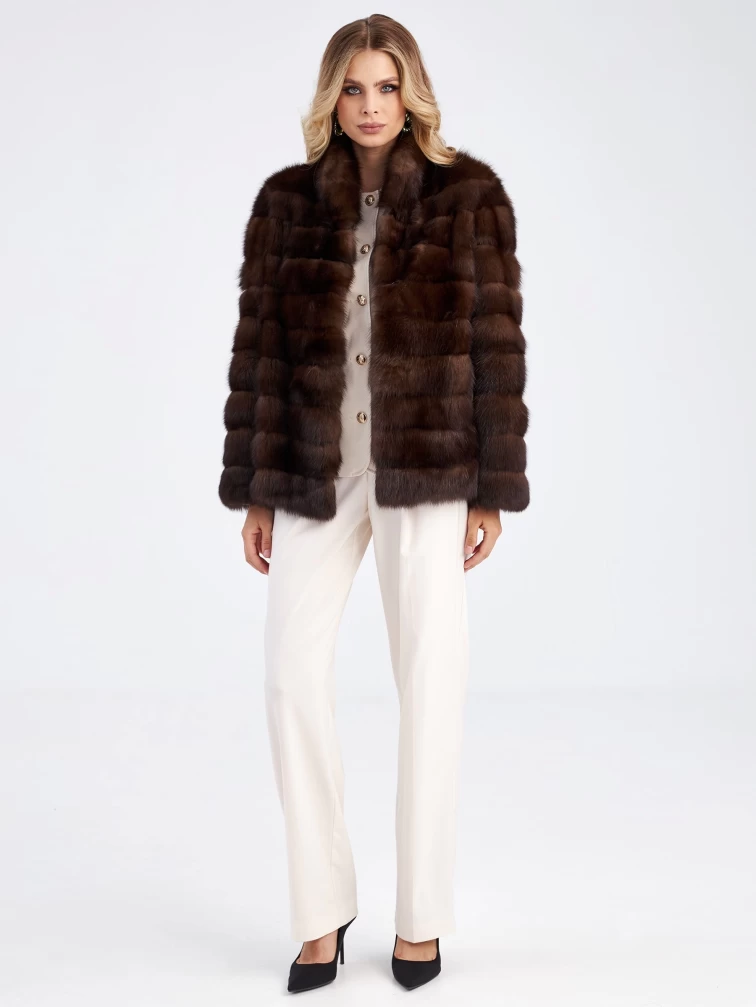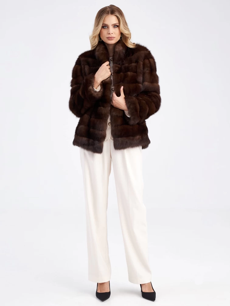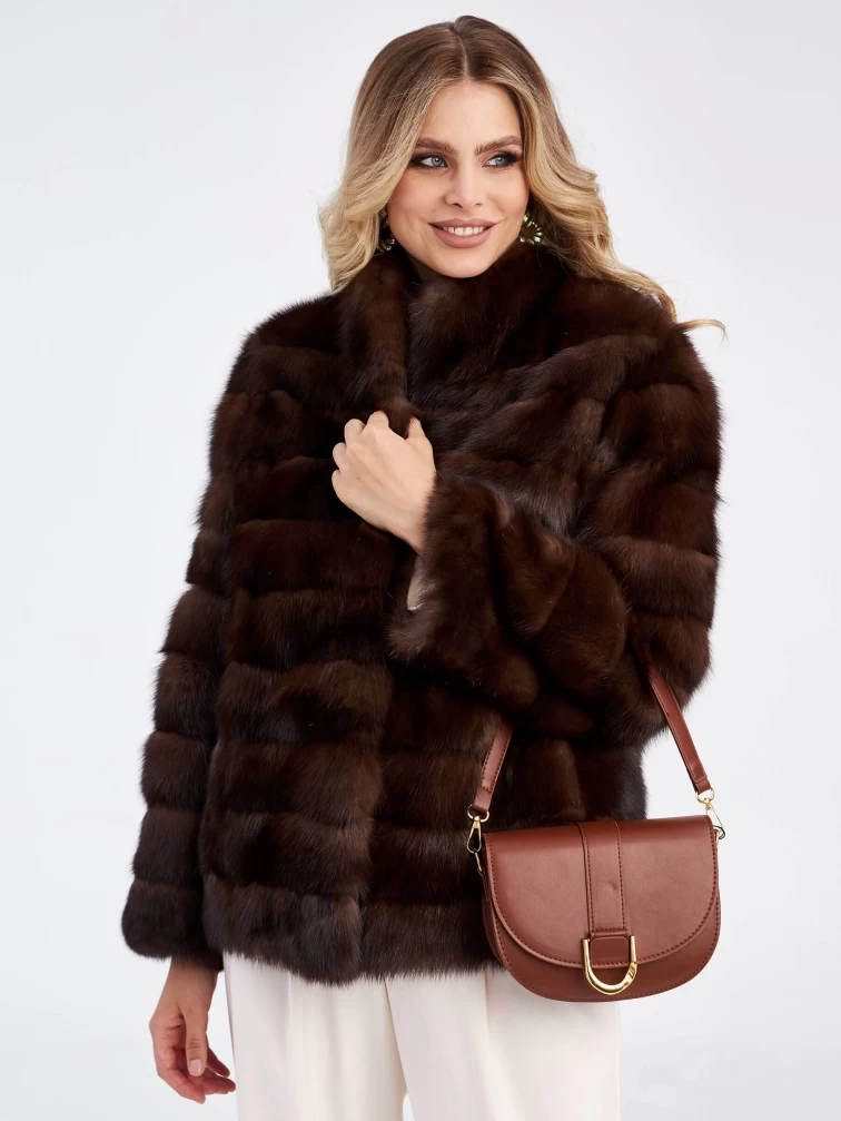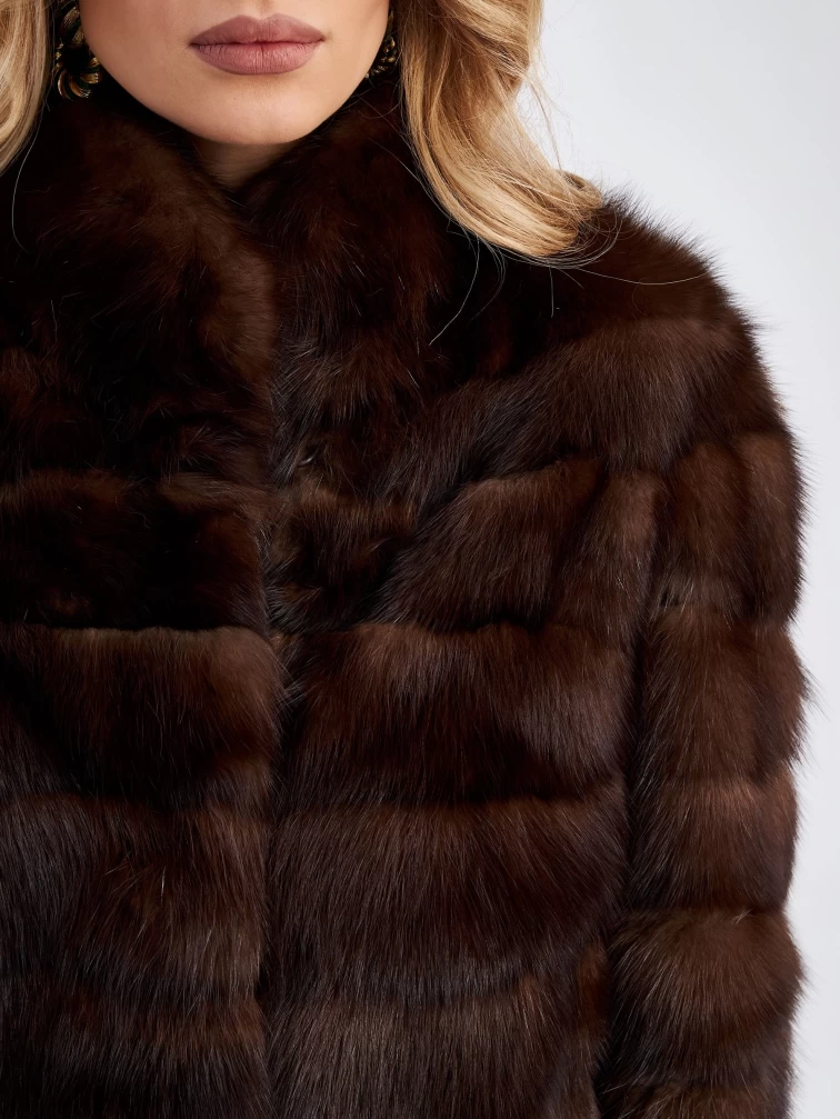 Товар женская соболиная куртка премиум класса 2а(с), темно-коричневая, размер 50, артикул 33940 выполнен из соболь с застежкой клипсы. Рассчитан на сезон: зима. Длина изделия 65 см, силуэт прямой.