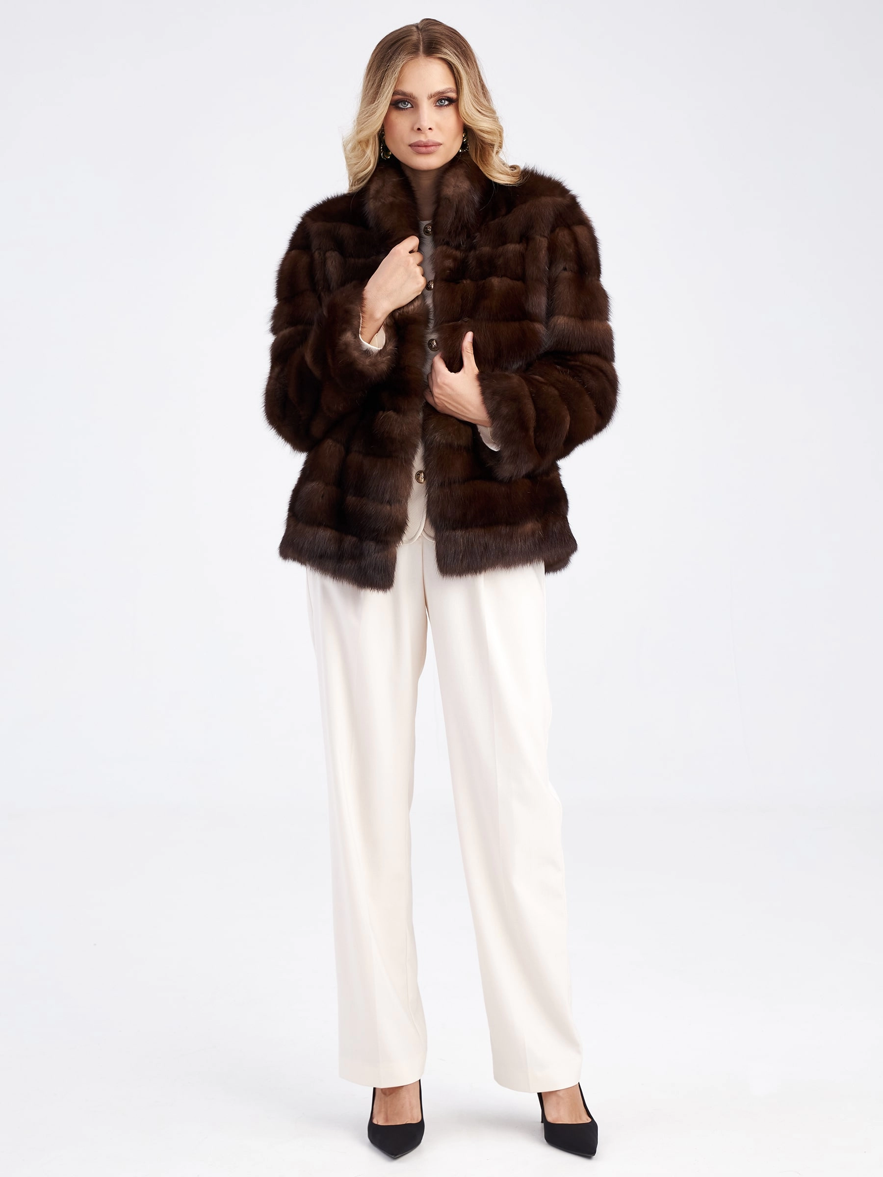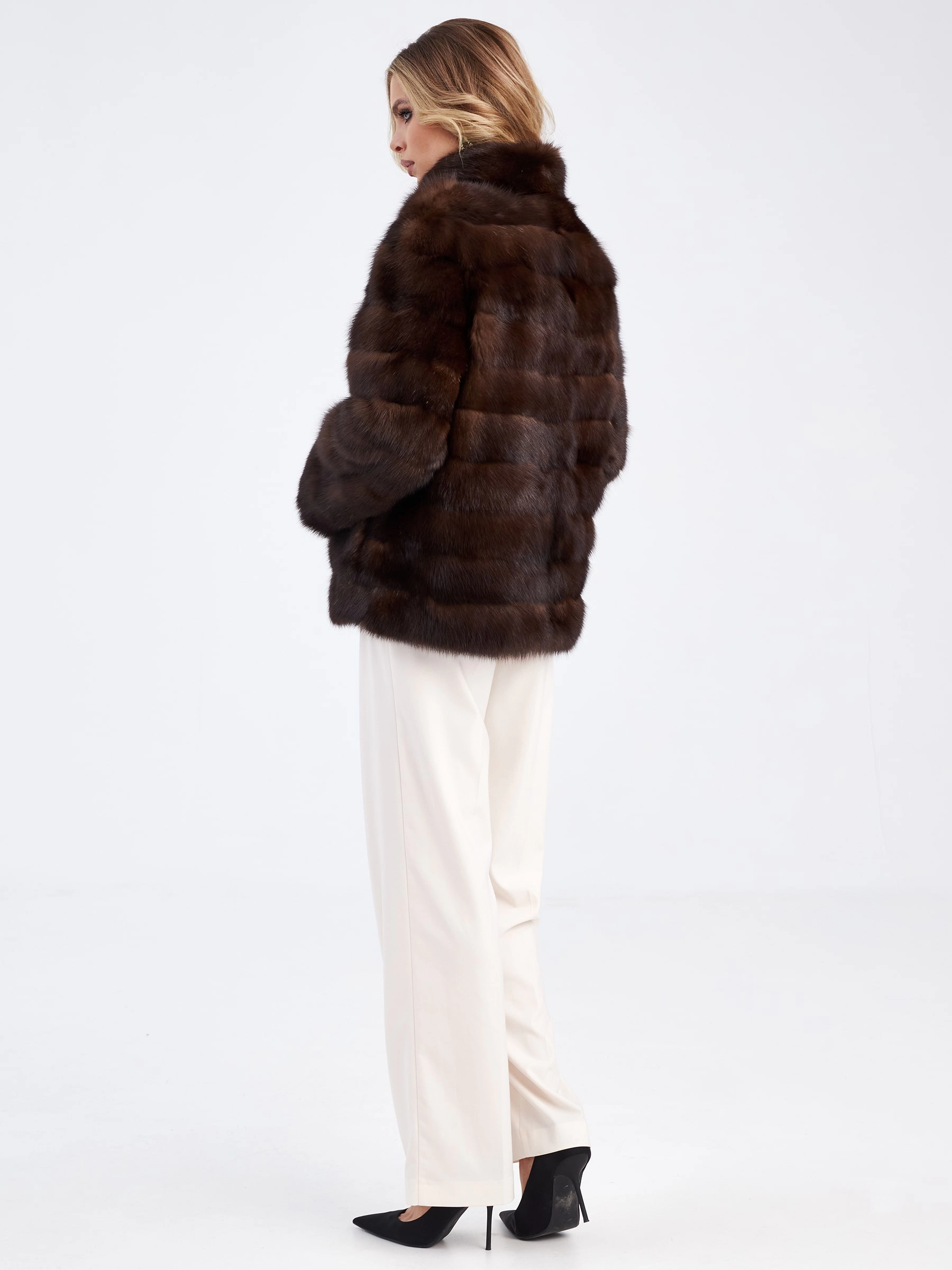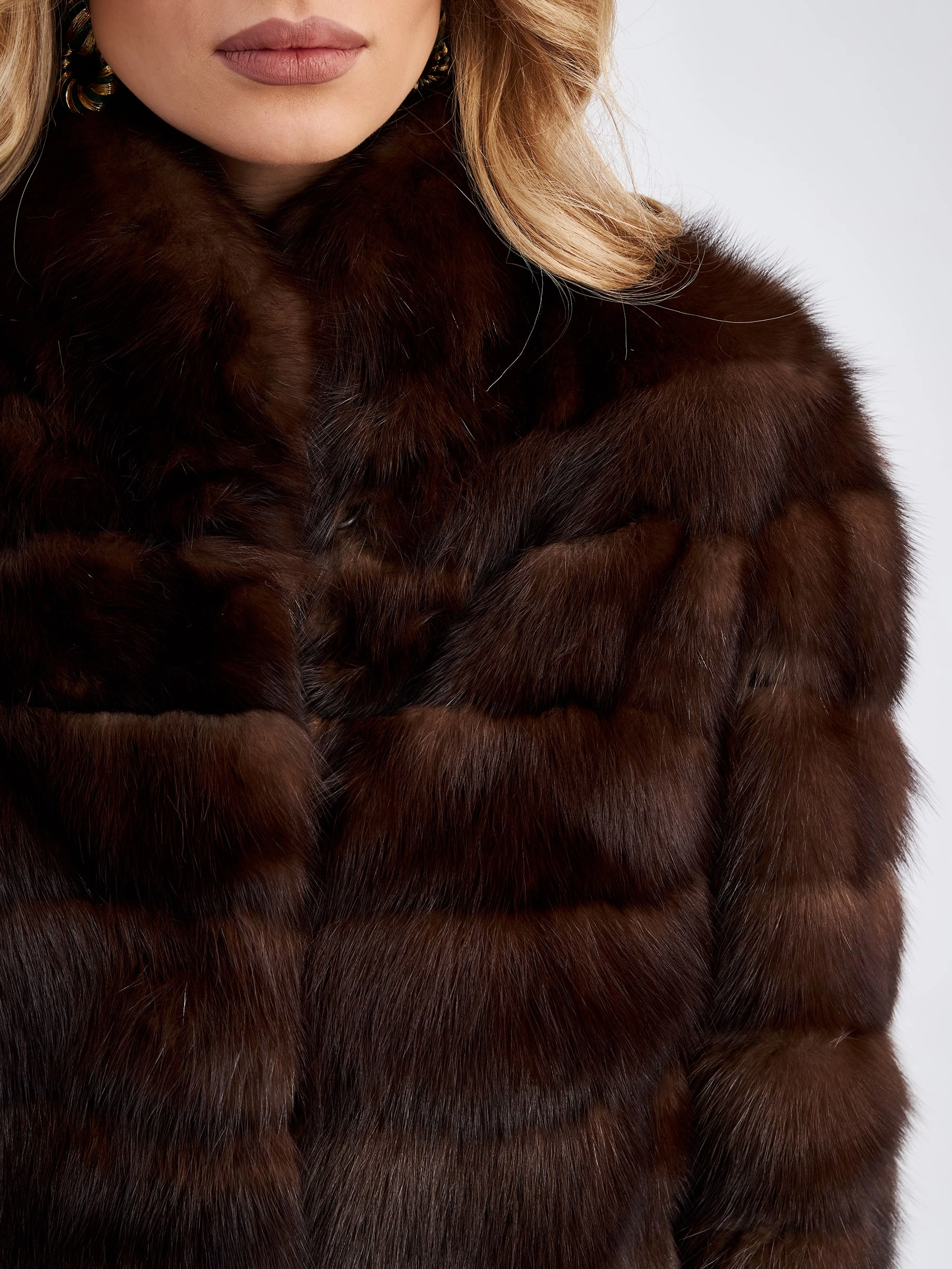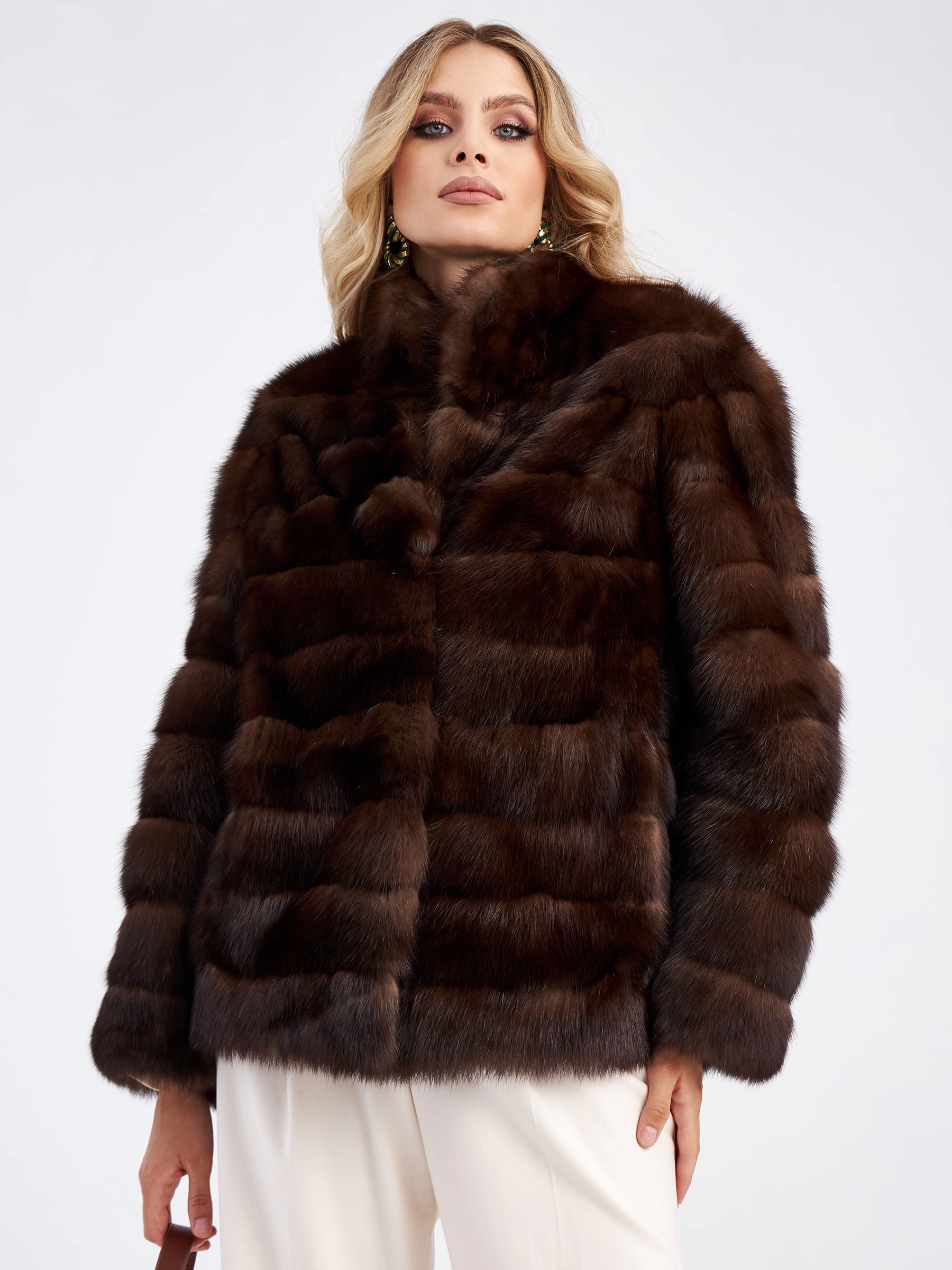 Куртка из благородного меха соболя с естественно темно-коричневым оттенком. Неповторимый комфорт и ощущение легкости читается в каждом движении этой модели. Вещь из такого материала с искрящимся блеском и густой подпушью получилась невероятно приятной на ощупь и при этом очень теплой. Прямой крой, горизонтальная раскладка меха. Воротник-стойка, полноценная длина рукава.
