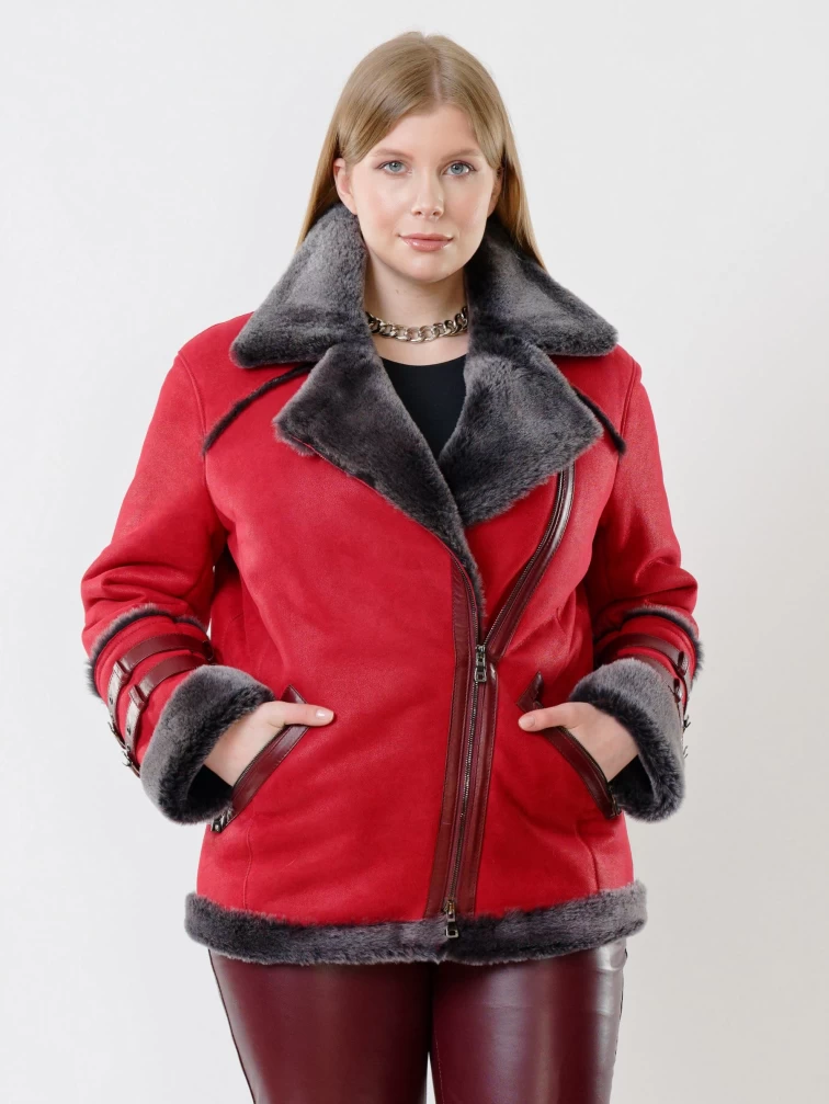 Куртка косуха из натуральной овчины для женщин 290, красная, размер 44, артикул 24190