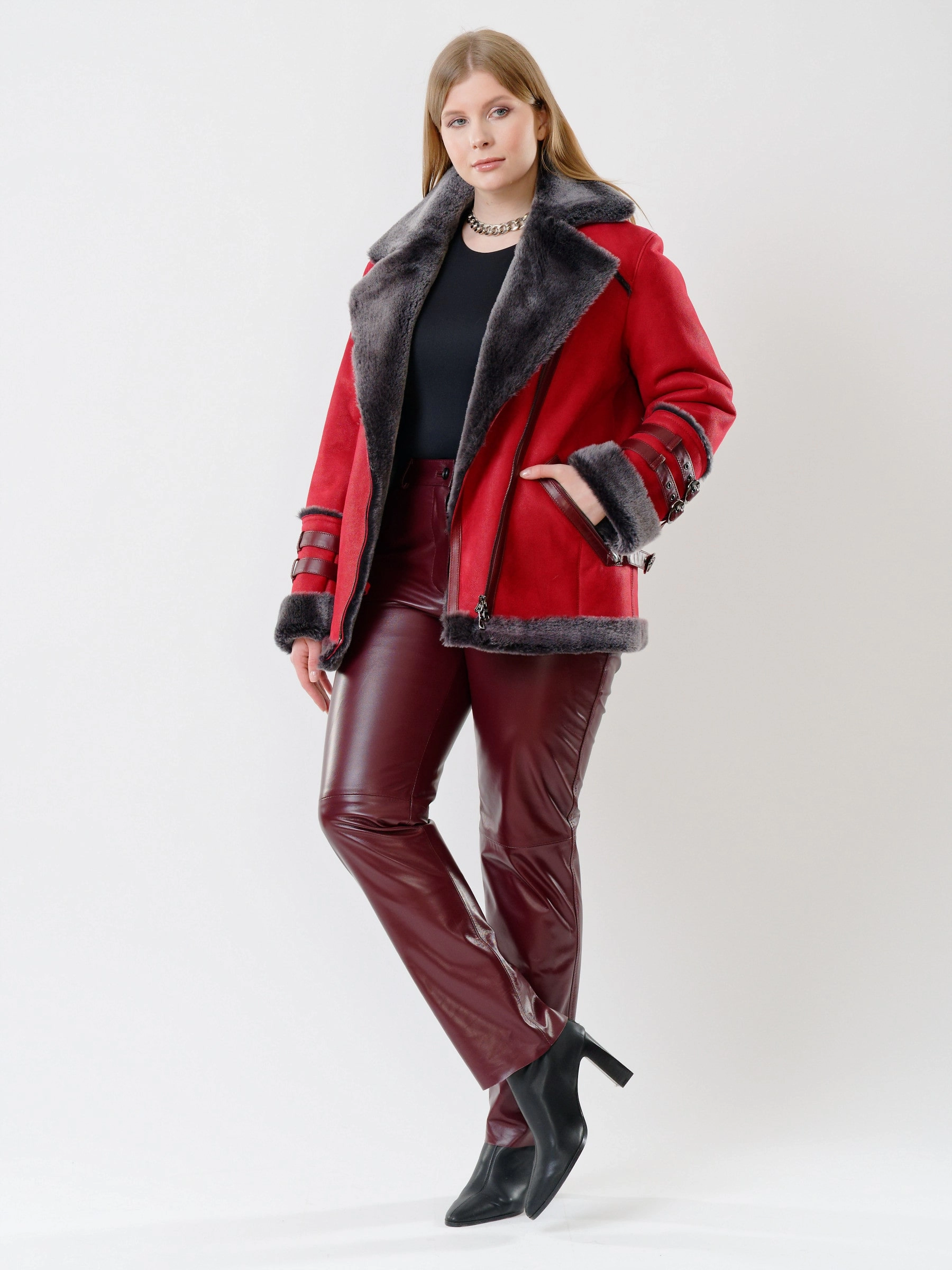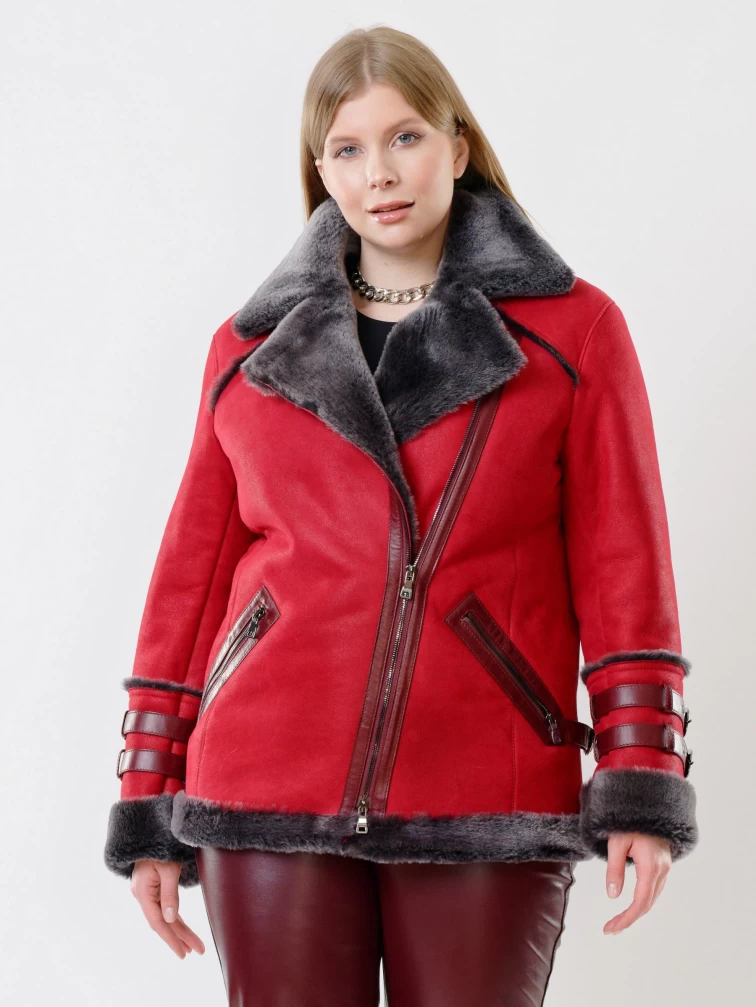 Товар куртка косуха из натуральной овчины для женщин 290, красная, размер 44, артикул 24190 выполнен из овчина "мерино" с застежкой молния. Рассчитан на сезон: осень-зима. Длина изделия 70 см, силуэт прямой.