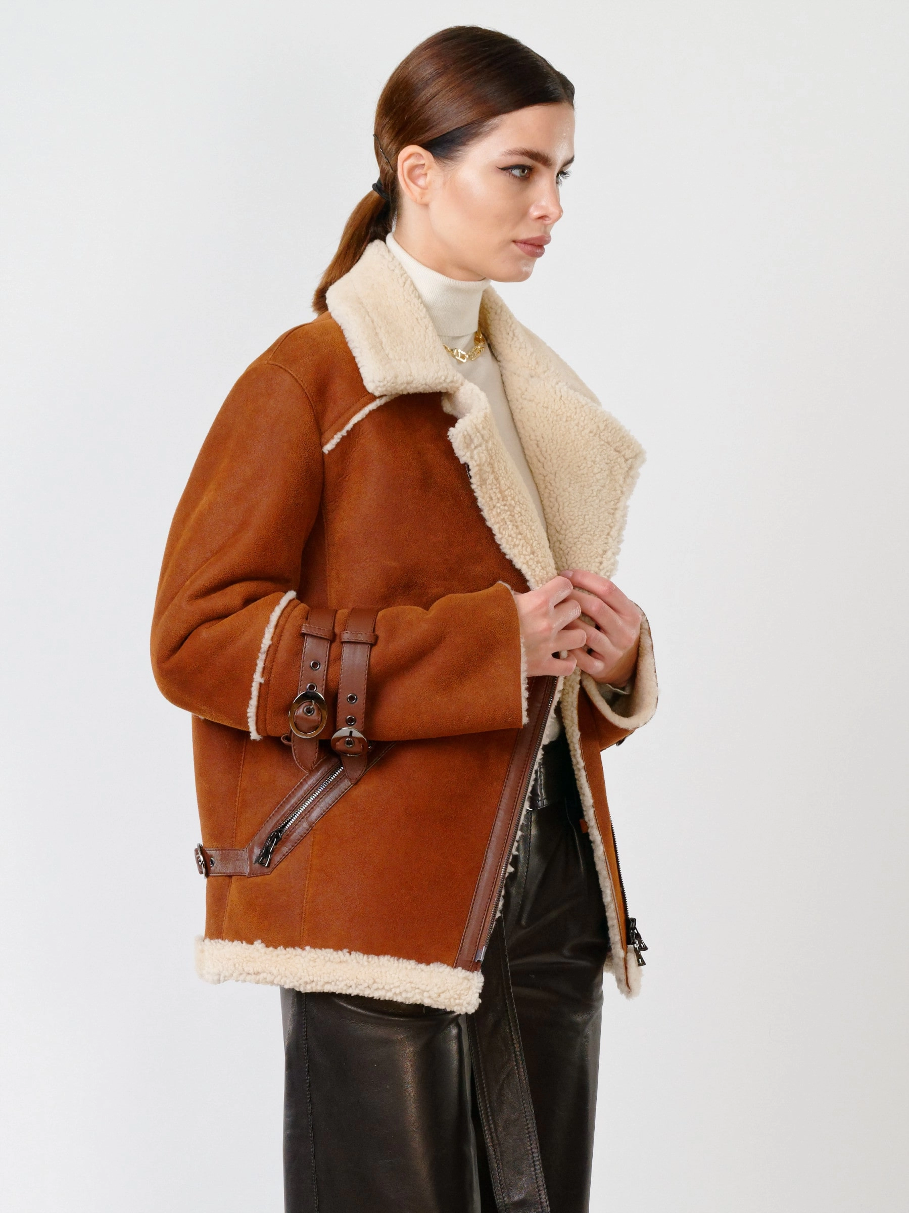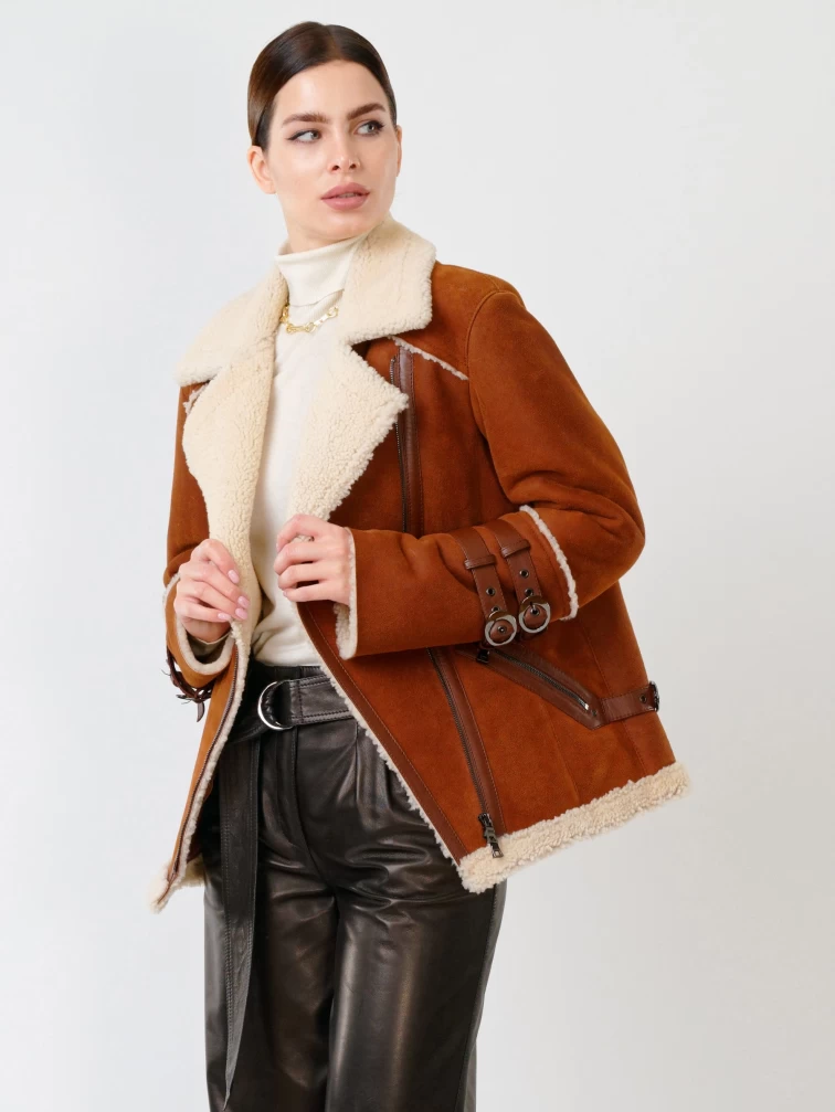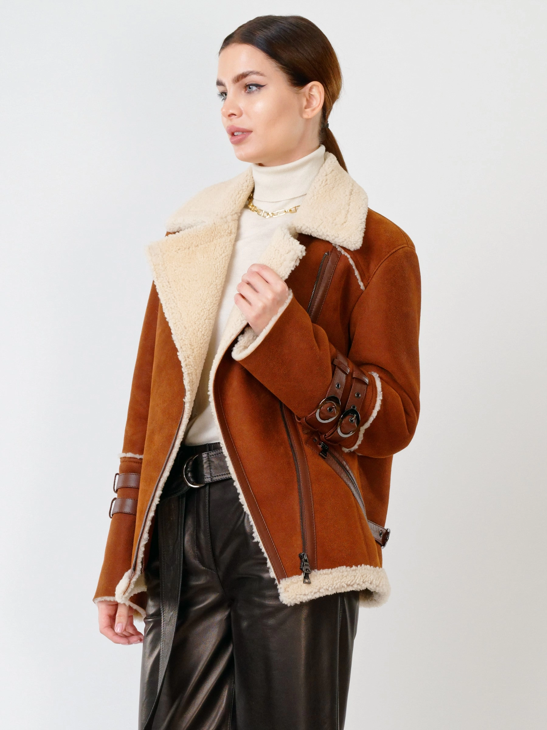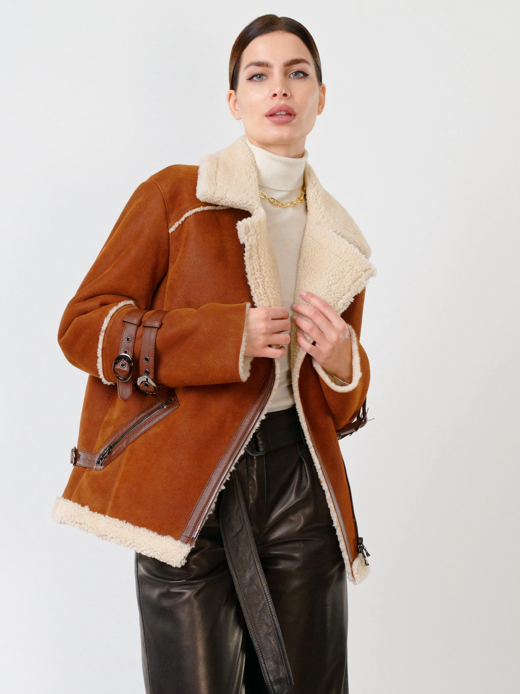Куртка косуха из натуральной овчины для женщин 290, табачно-рыжая, размер 44, артикул 24200