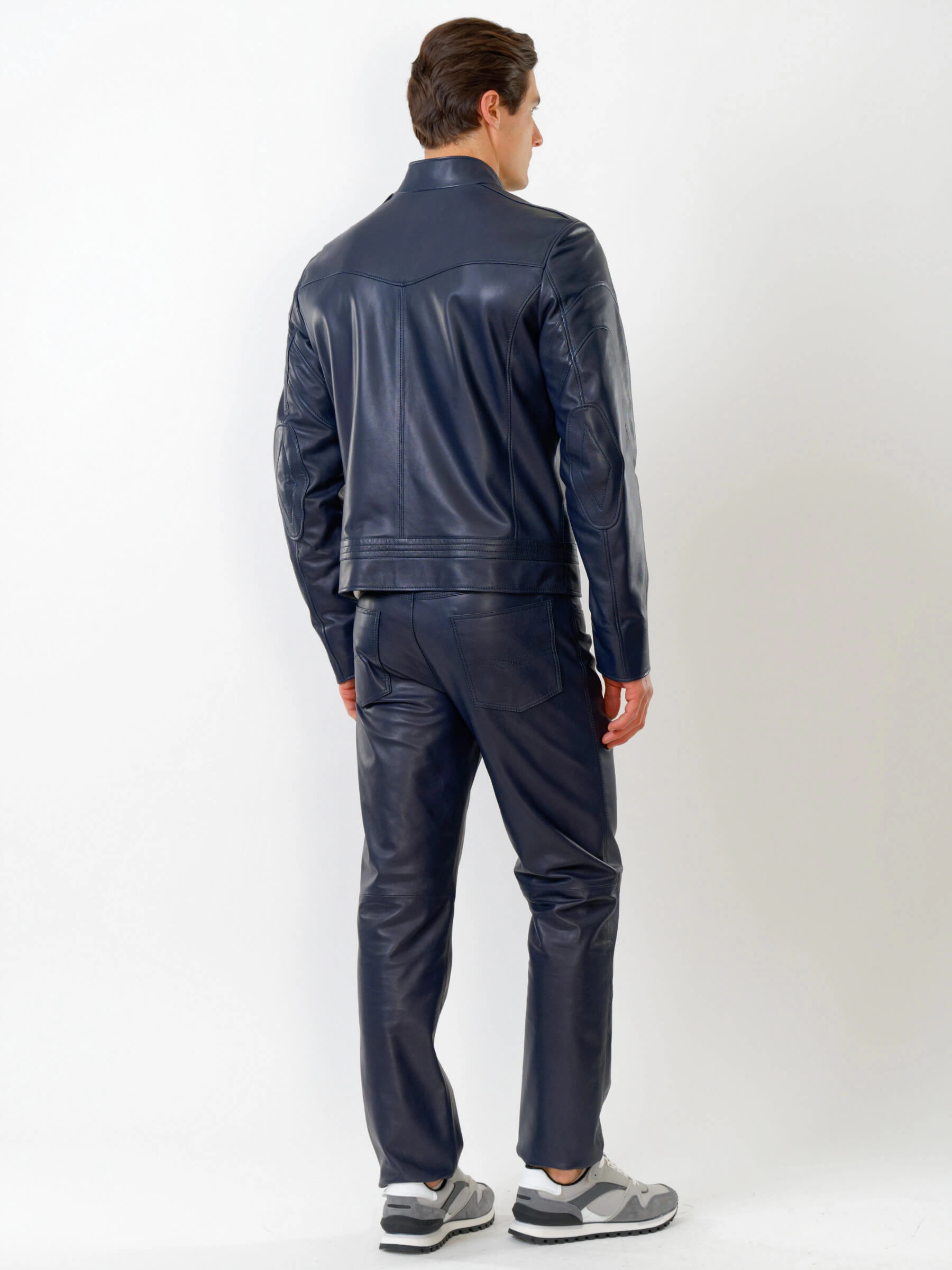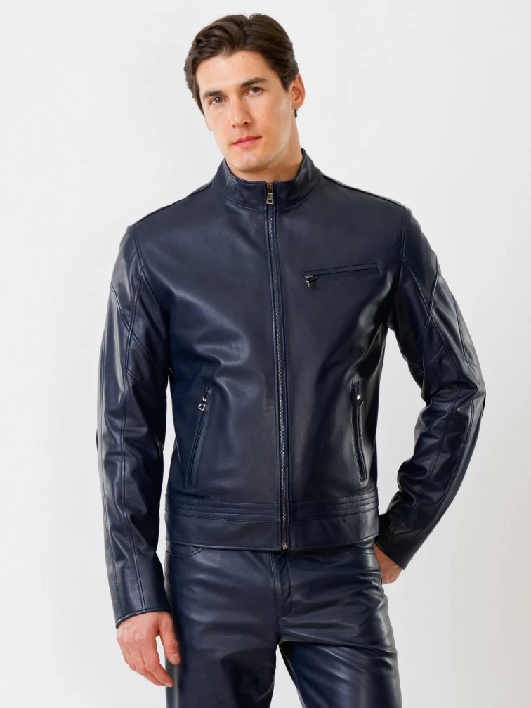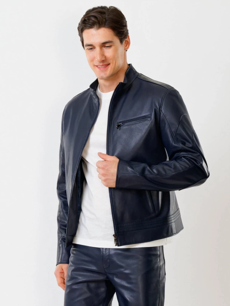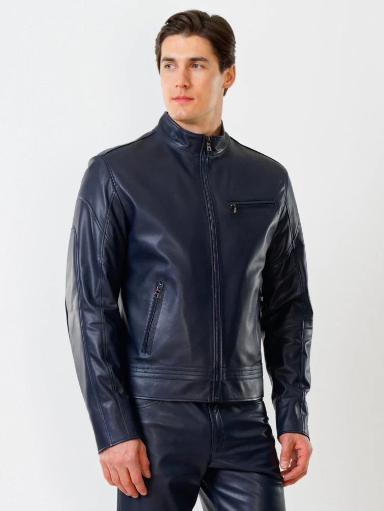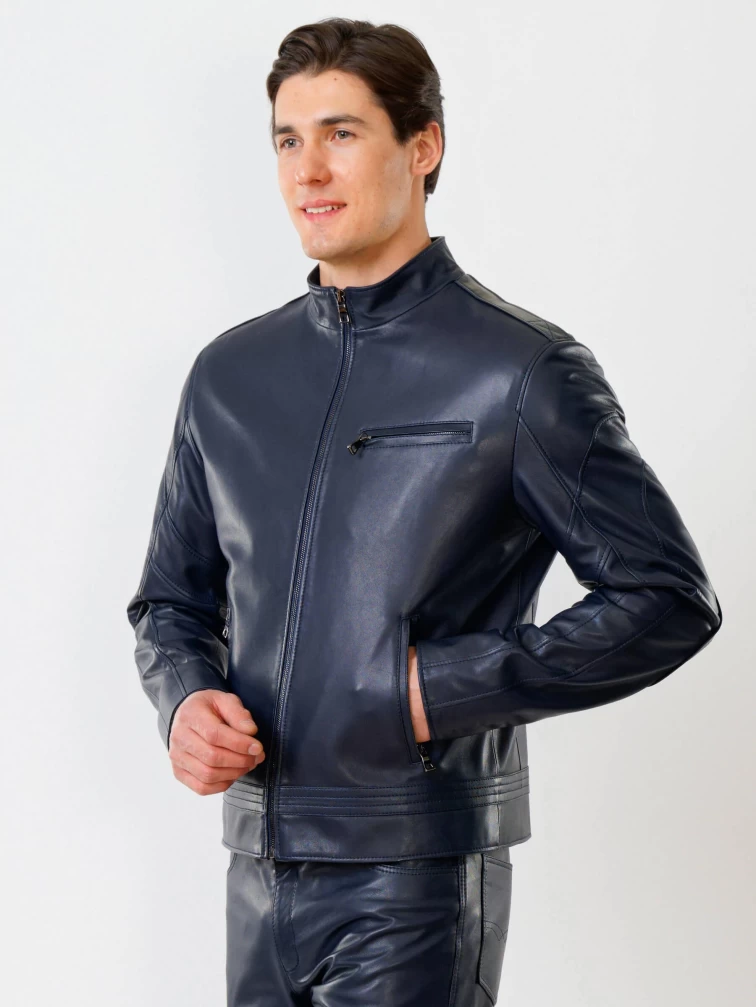 Кожаная куртка мужская 506о, синяя, размер 50, артикул 28580