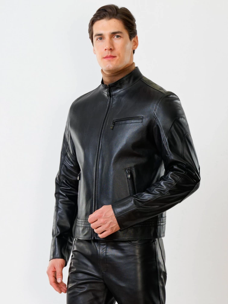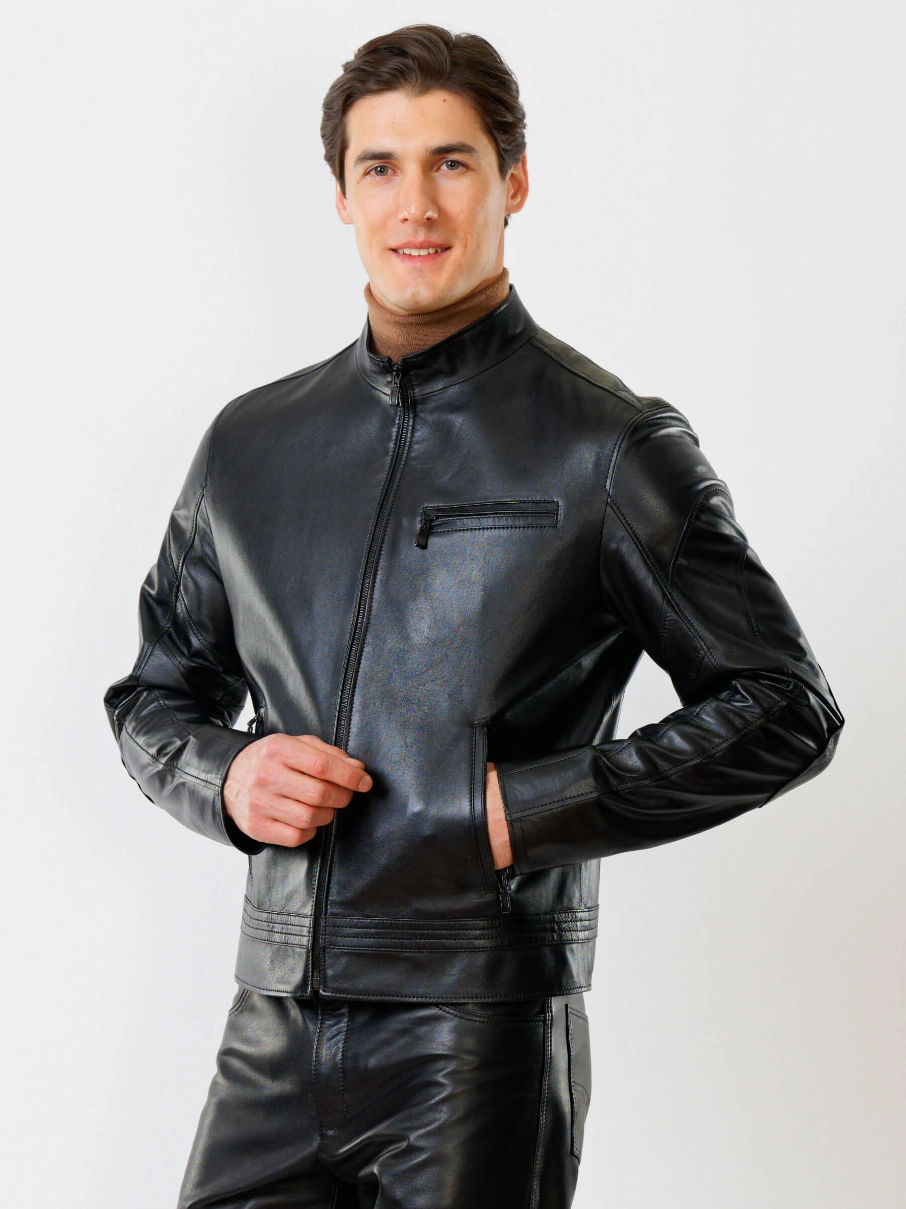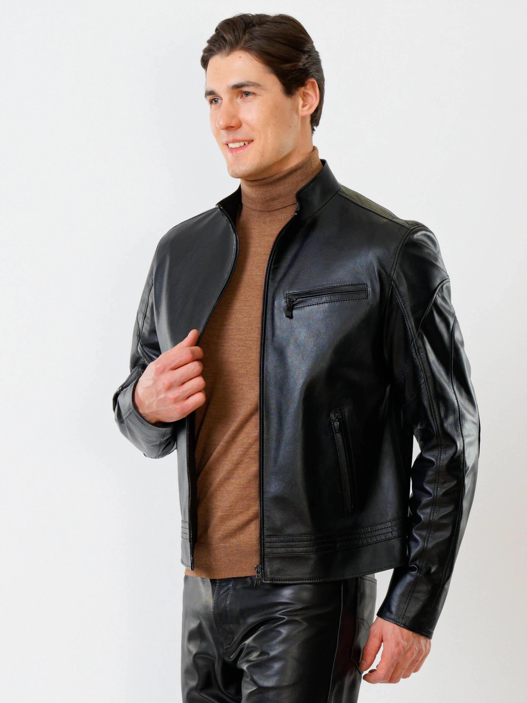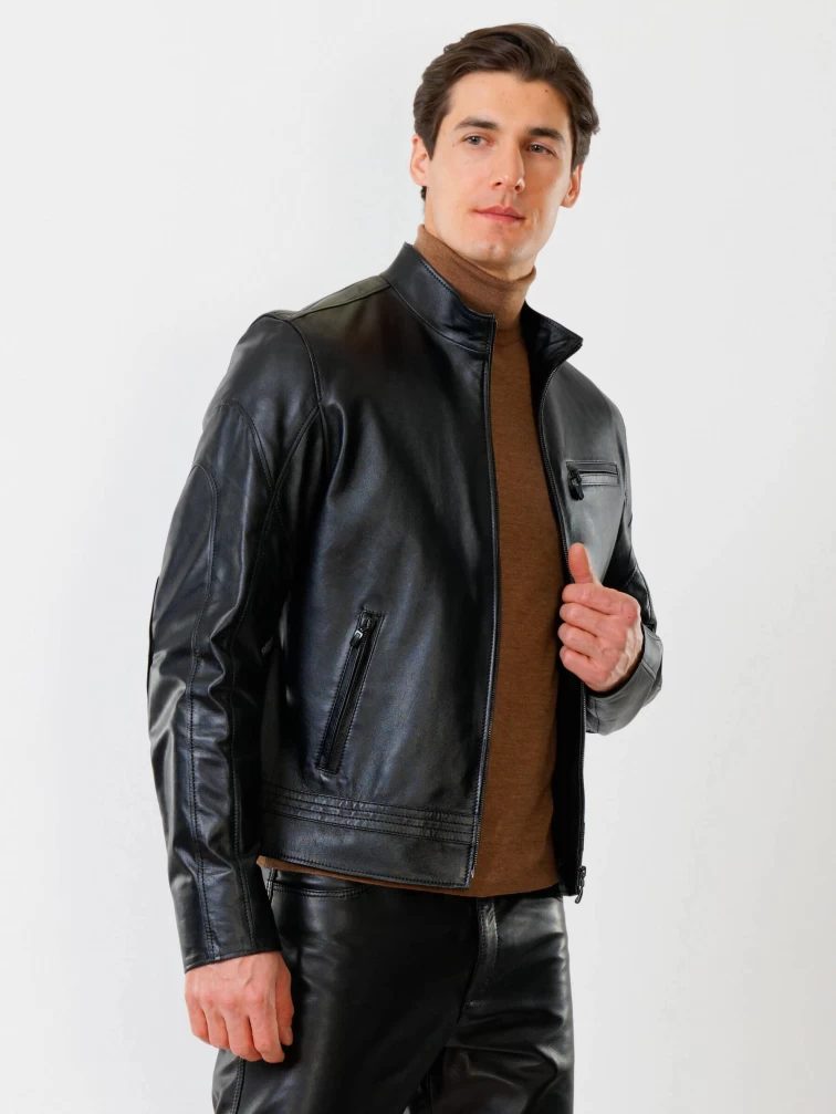 Кожаная куртка мужская 506о, черная, размер 48, артикул 27870