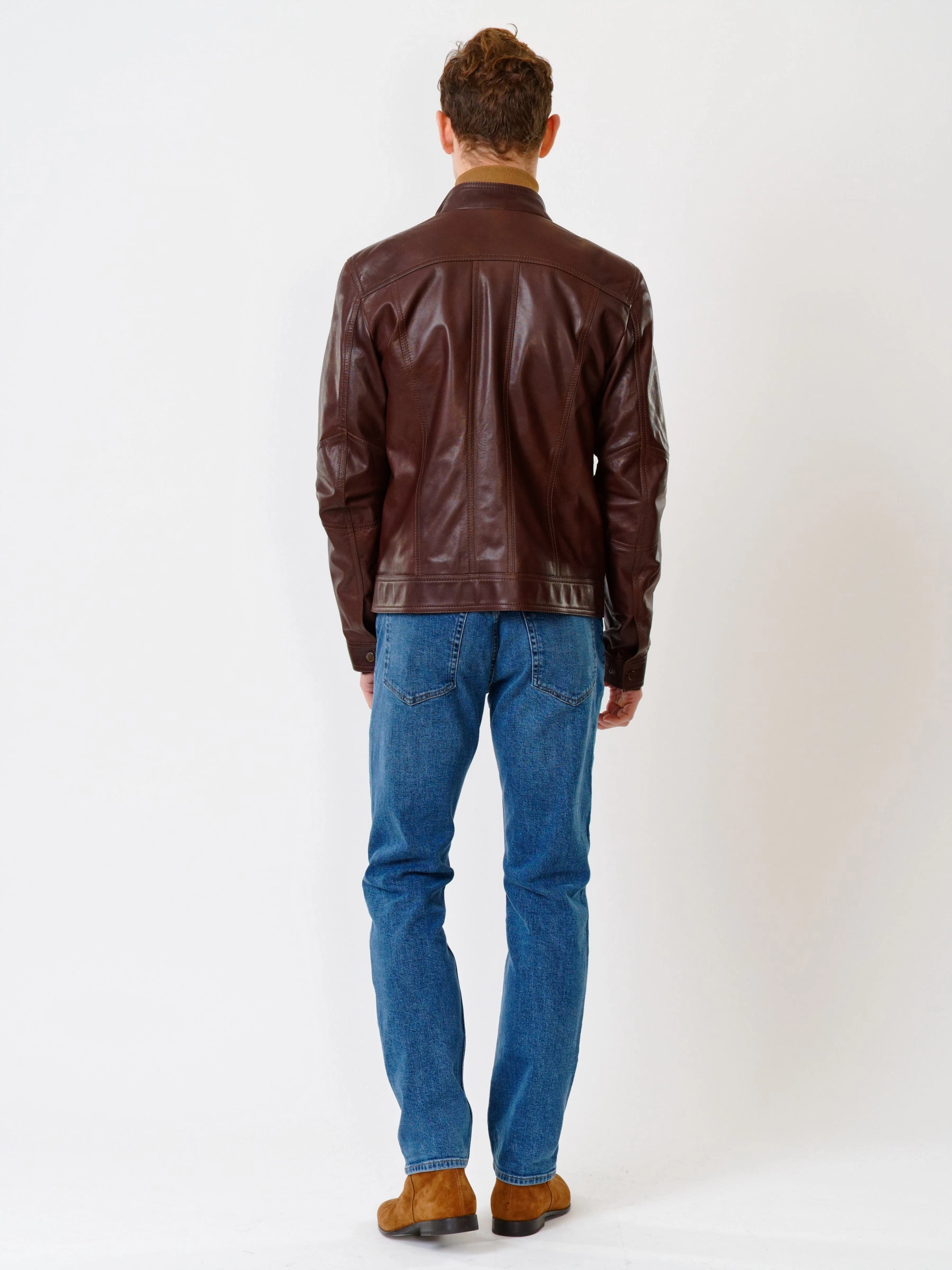 Кожаная куртка мужская 507, коричневая, размер 50, артикул 28420