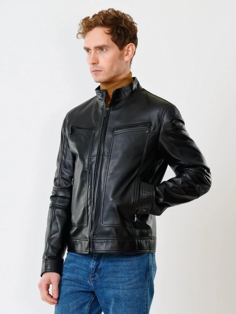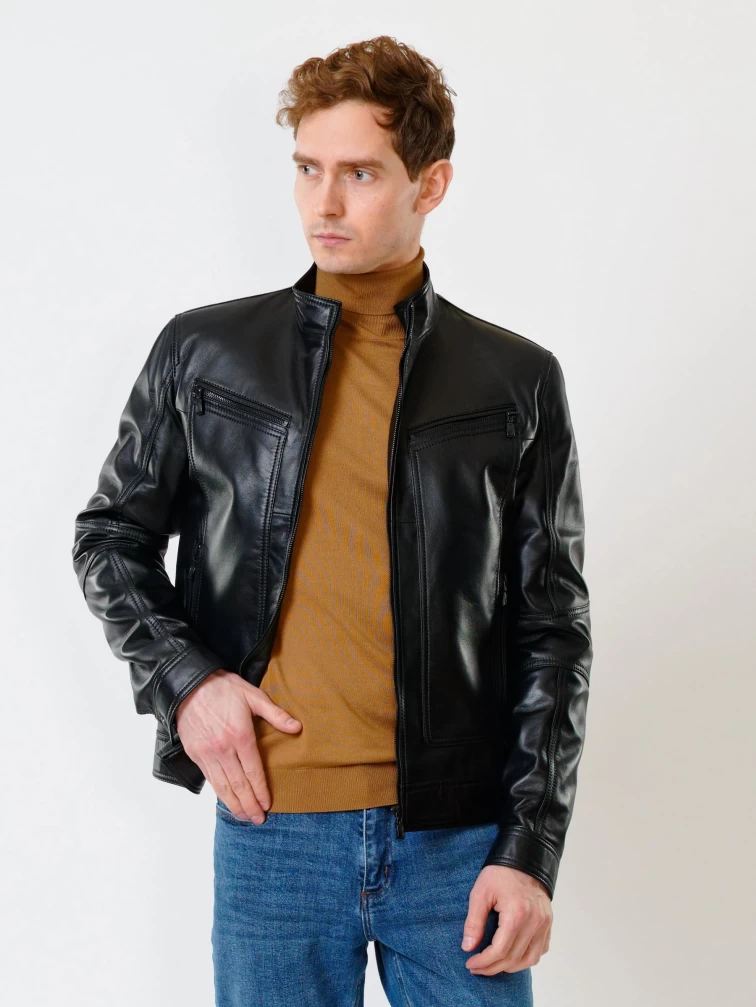 Кожаная куртка мужская 507, черная, размер 48, артикул 28430