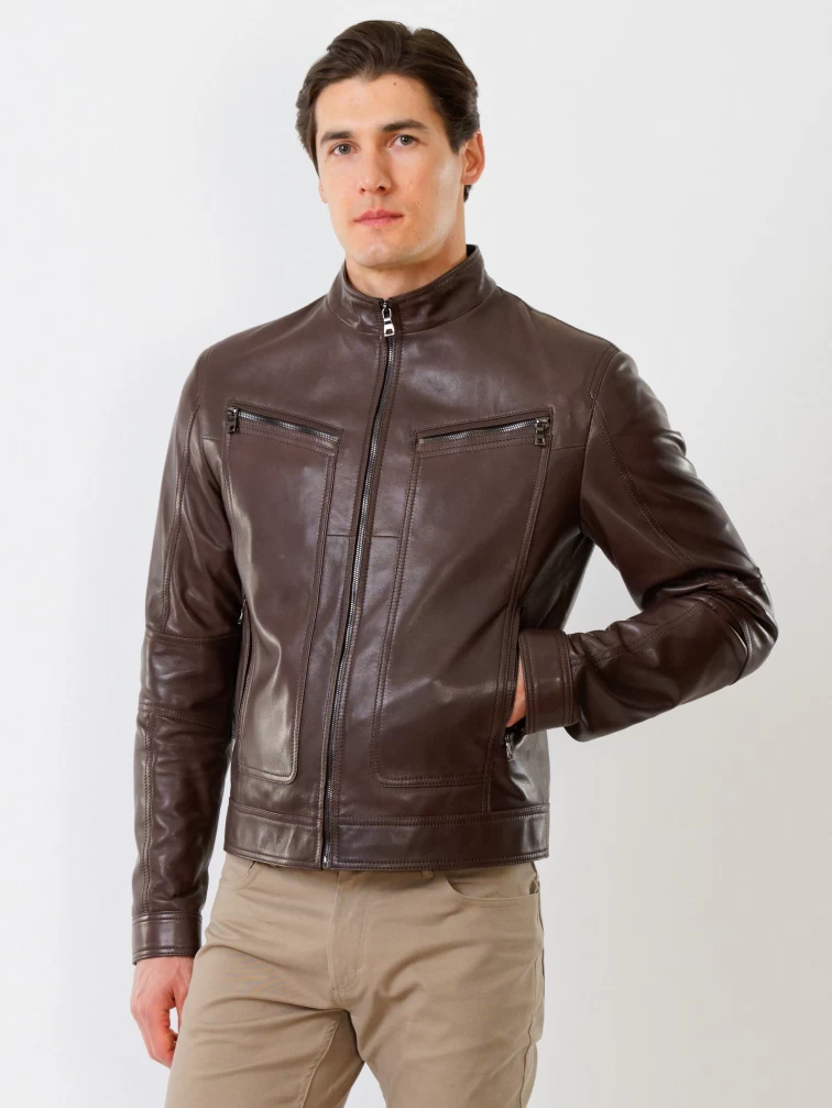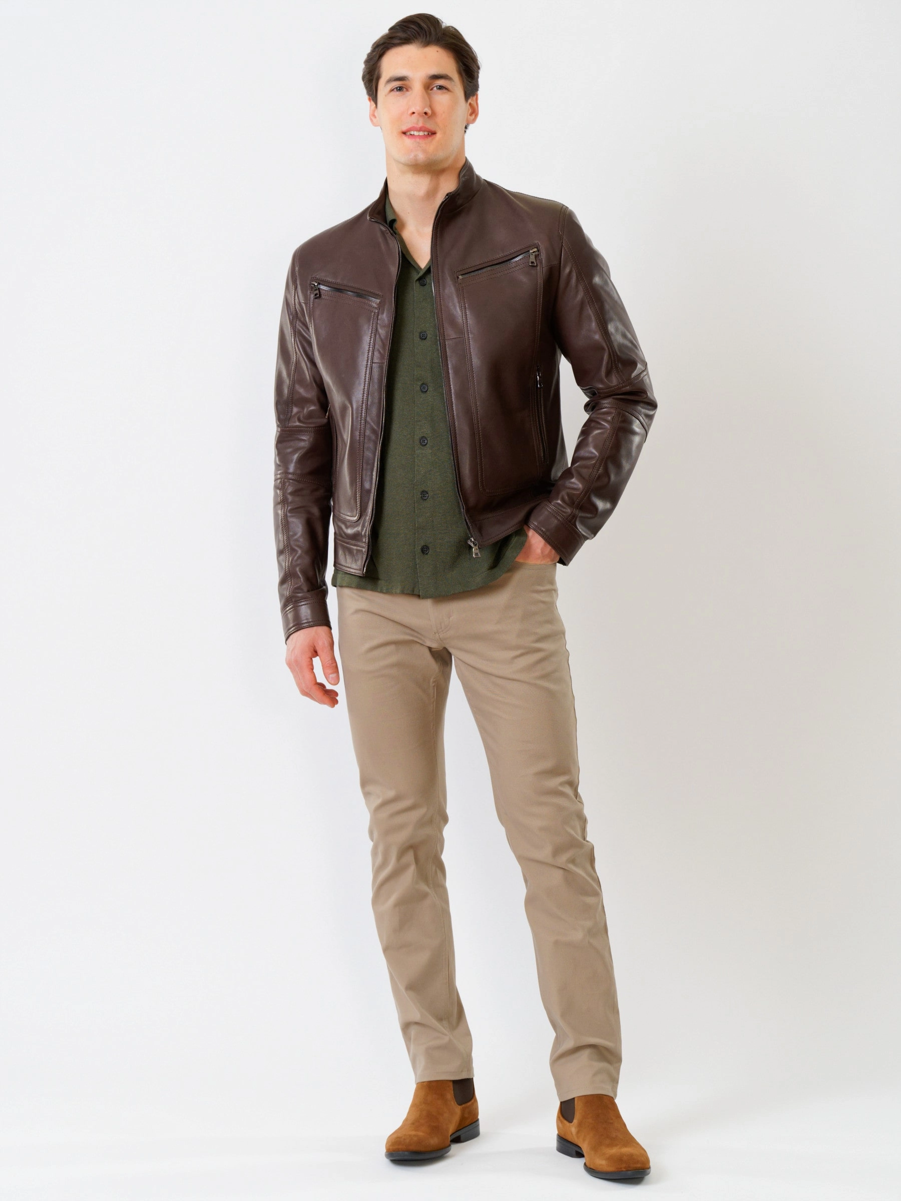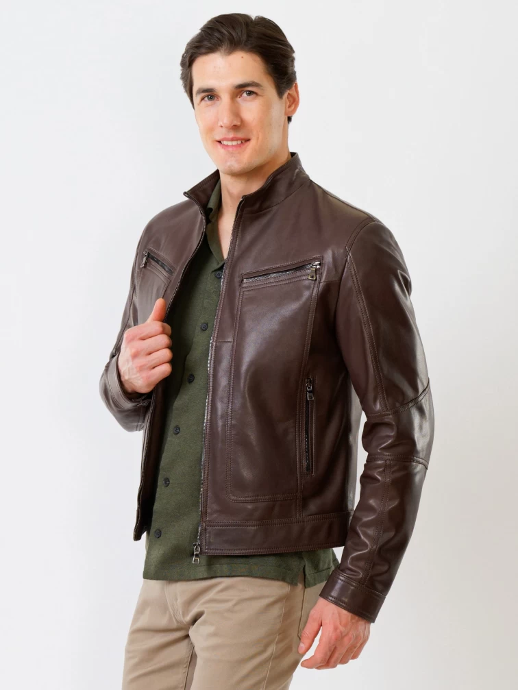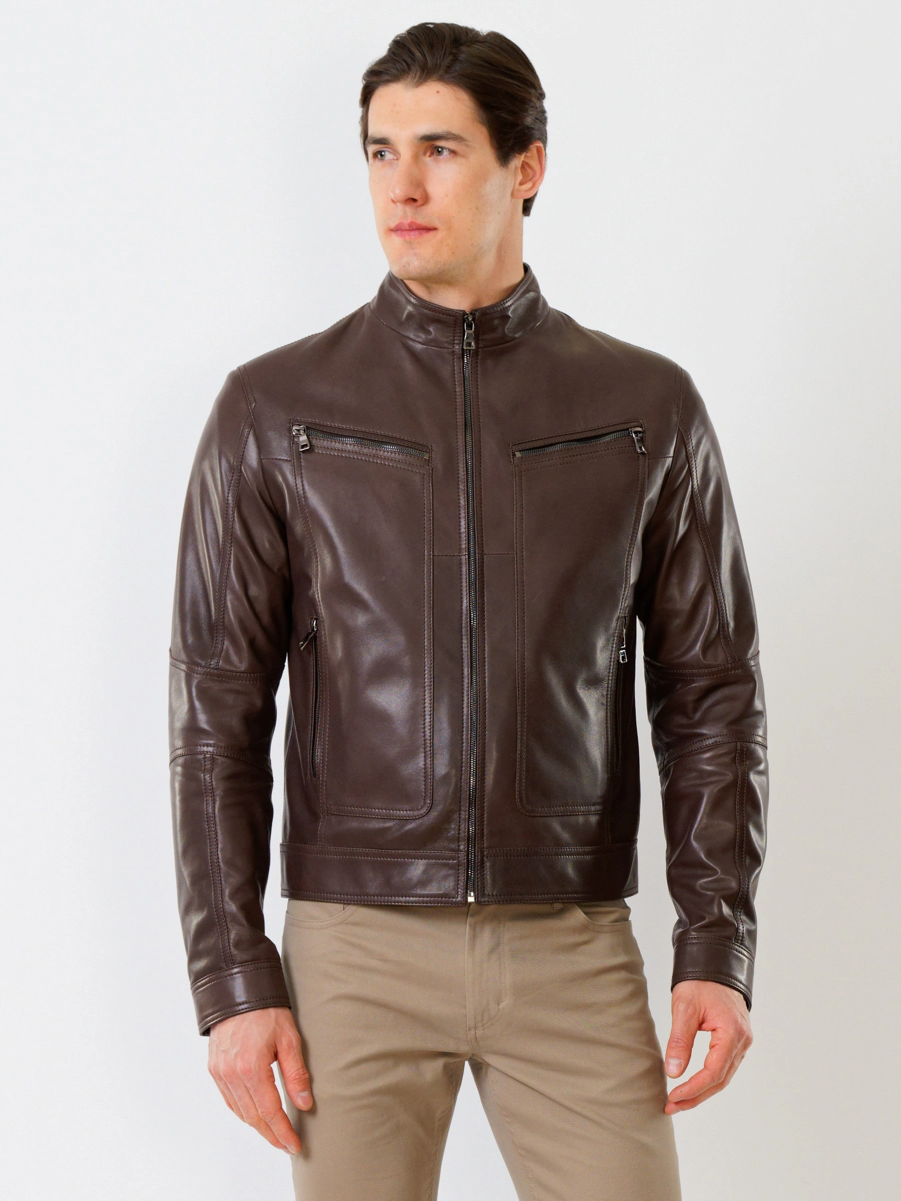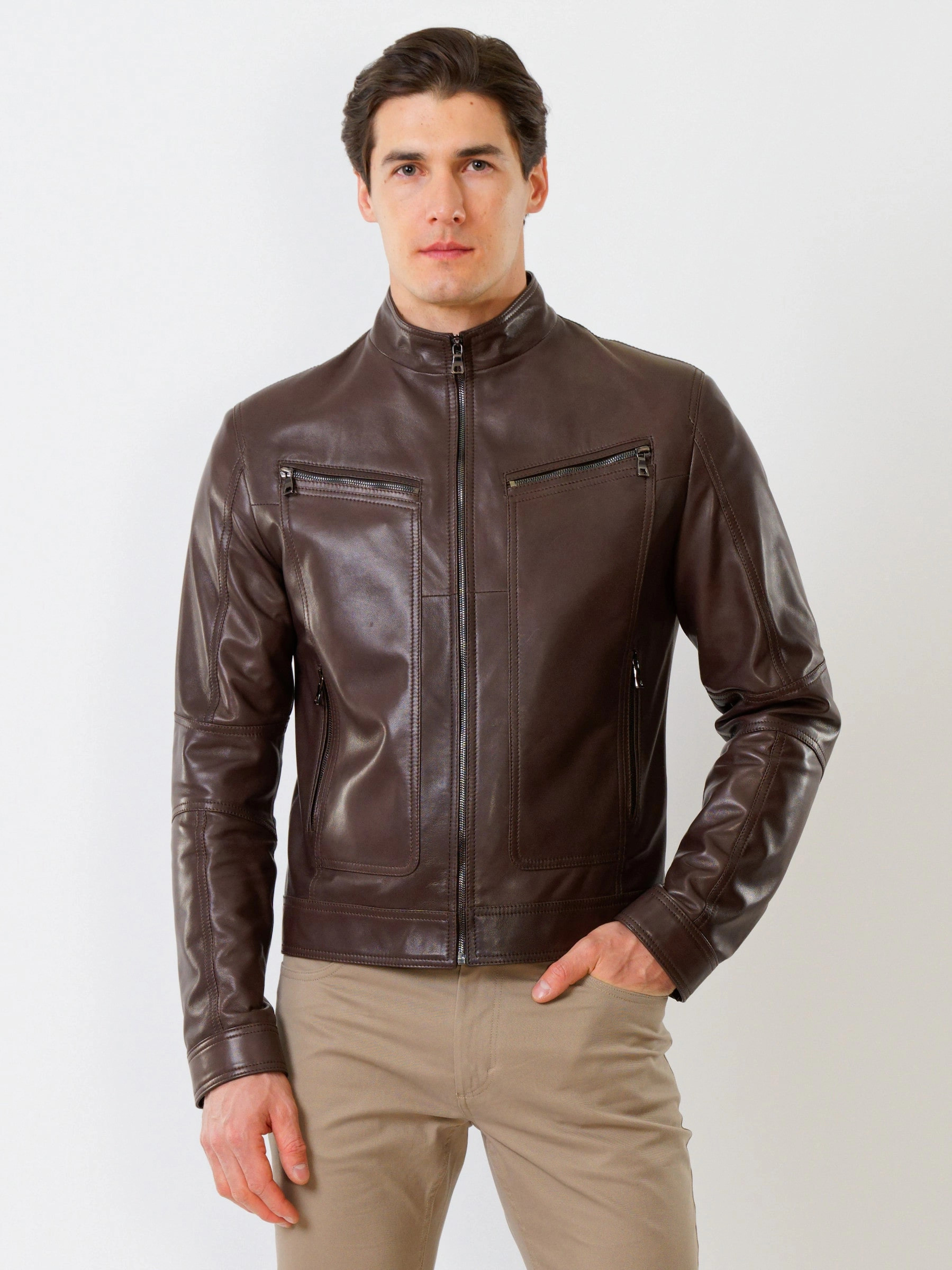 Кожаная куртка мужская 507, коричневая, размер 50, артикул 28591