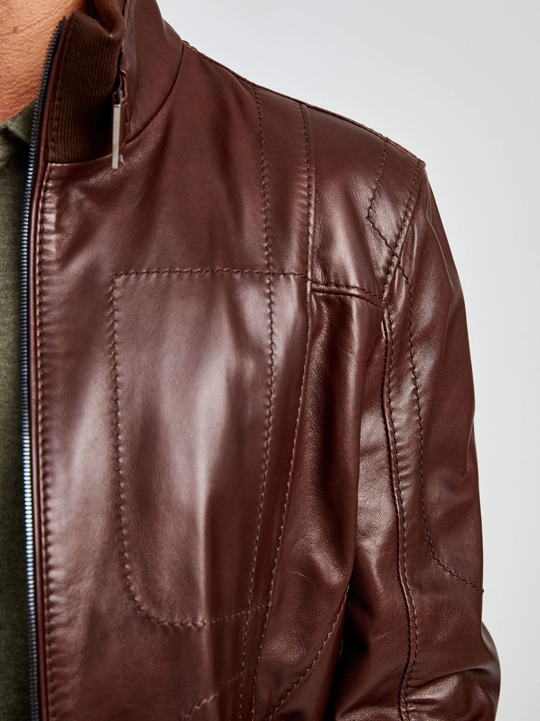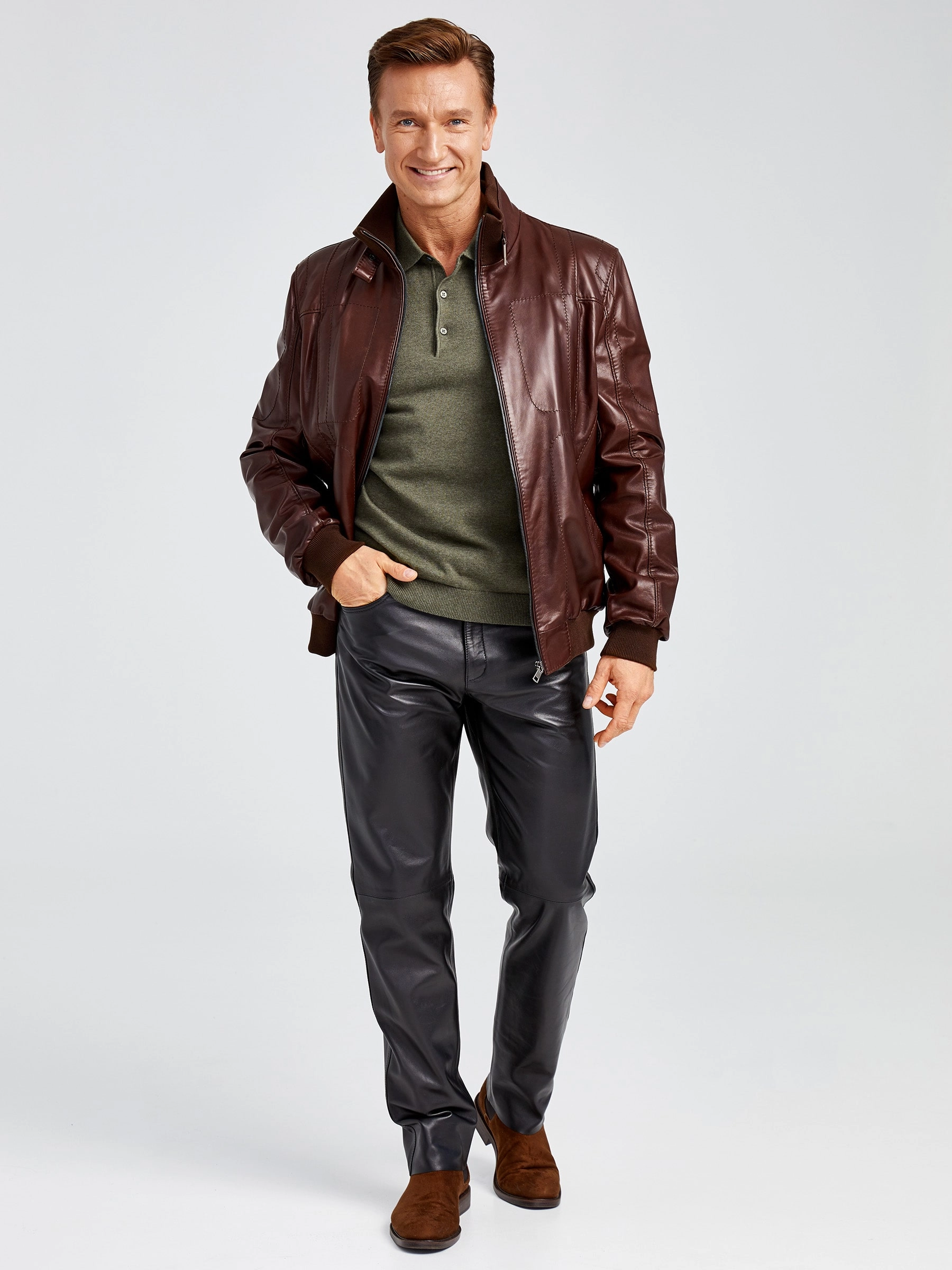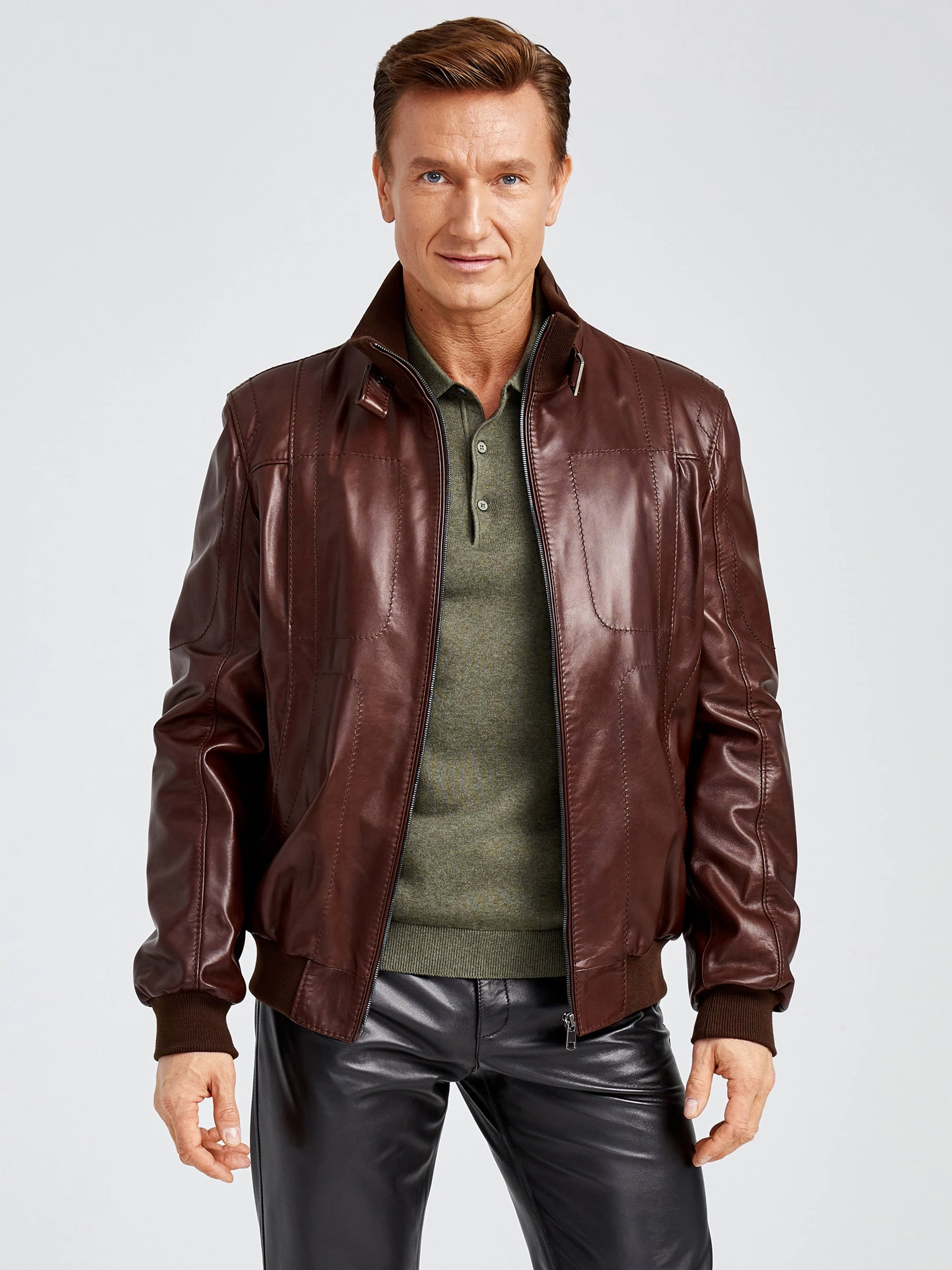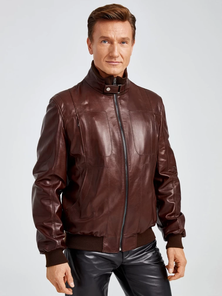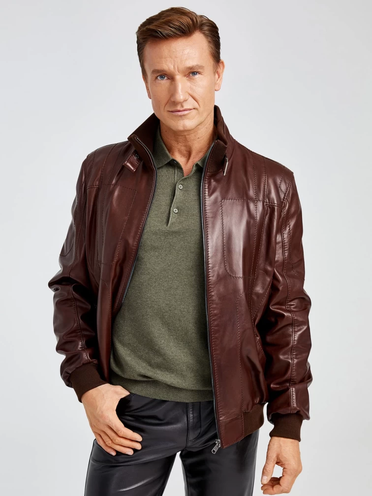 Спортивный стиль. Кожа премиального качества. Воротник-стойка. Застёжка-молния. Рукав втачной. Манжеты и низ модели выполнены из износостойкой трикотажной резинки. Предусмотрены удобные внутренние карманы для документов. Безупречная работа наших портных. Комфортная посадка по фигуре.