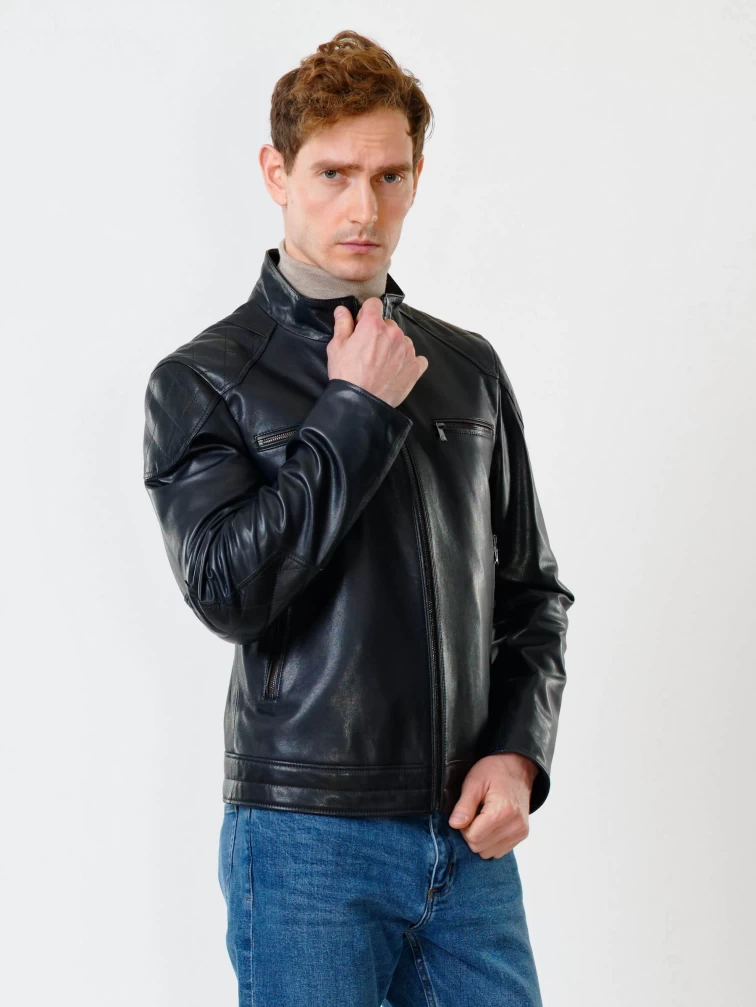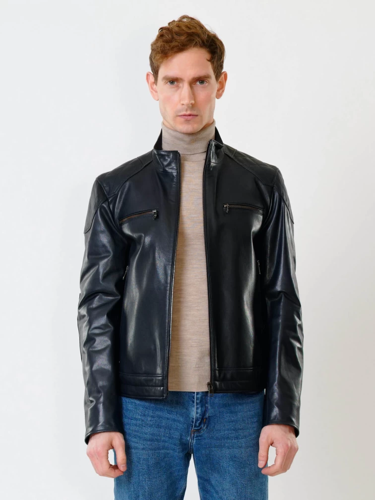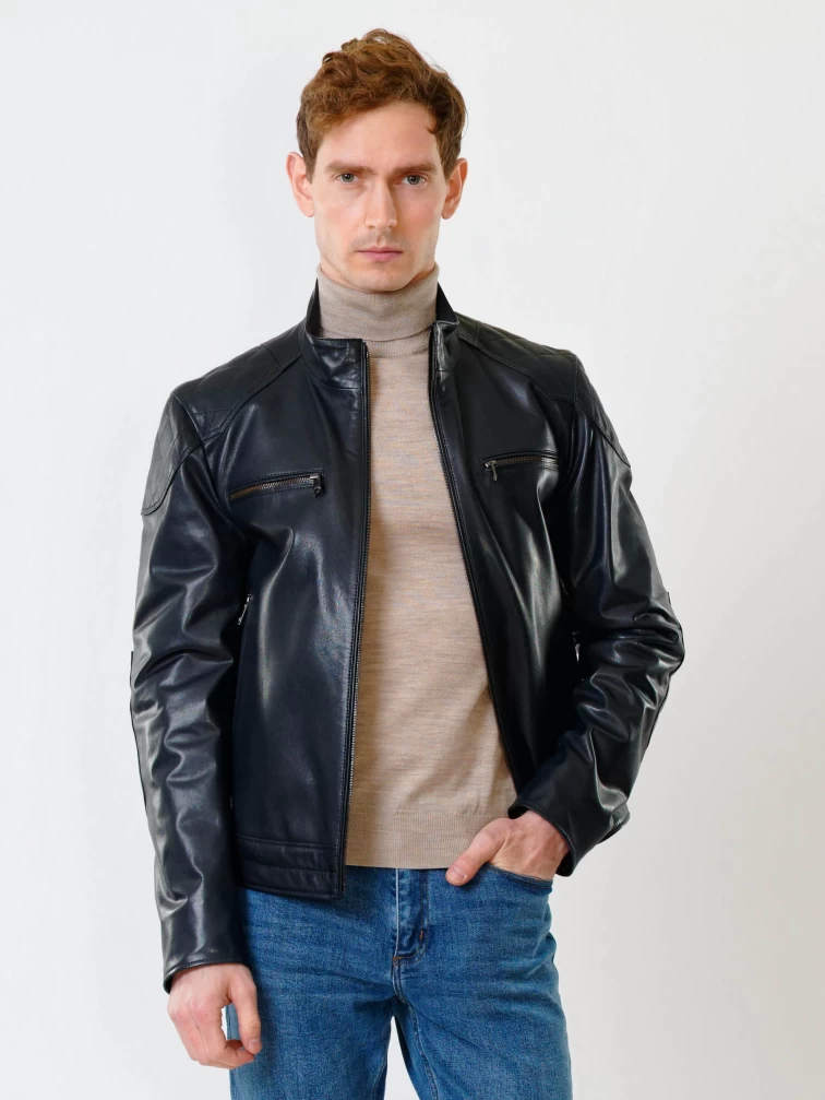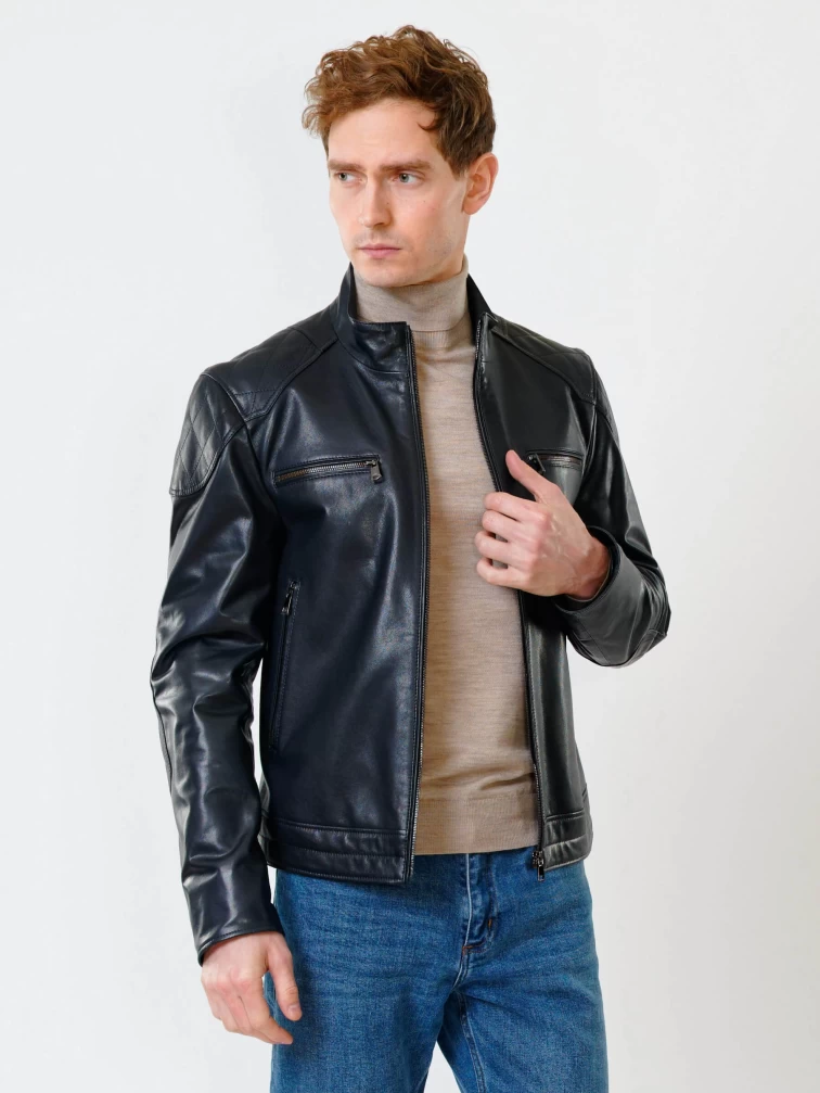 Кожаная куртка мужская 545, синяя, размер 50, артикул 28510