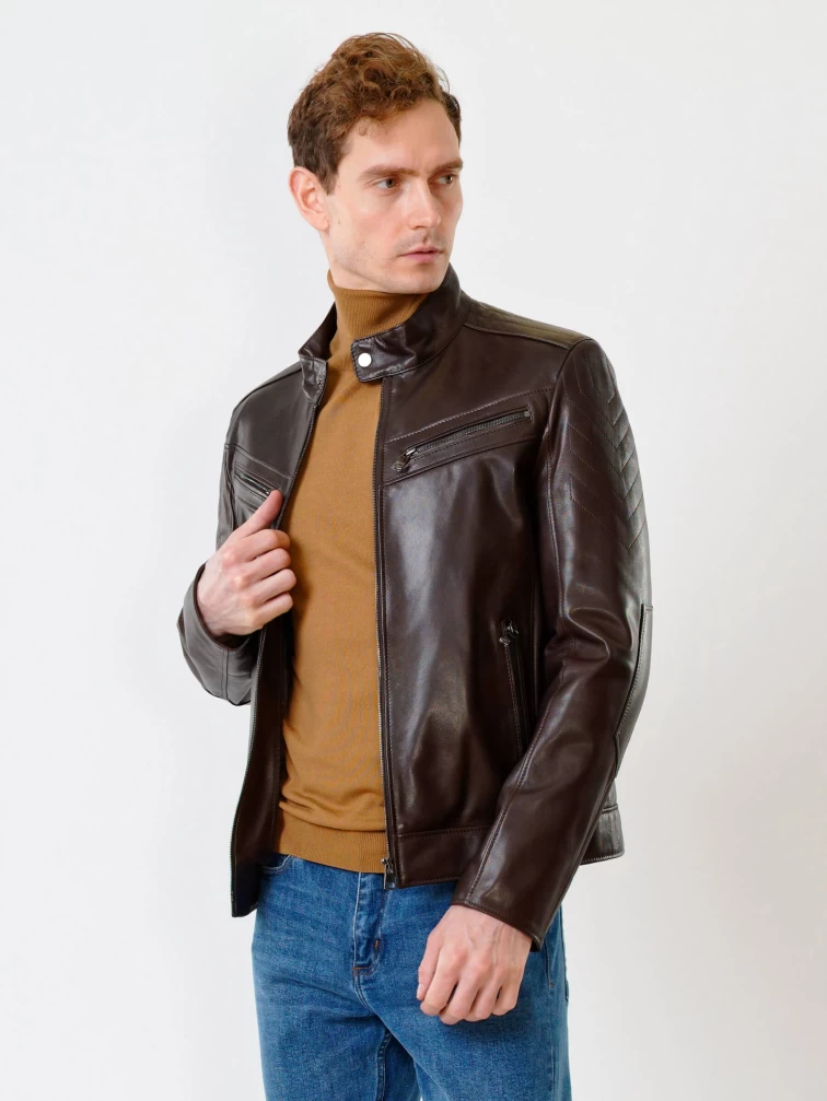 Кожаная куртка мужская 546, коричневая, размер 50, артикул 28460