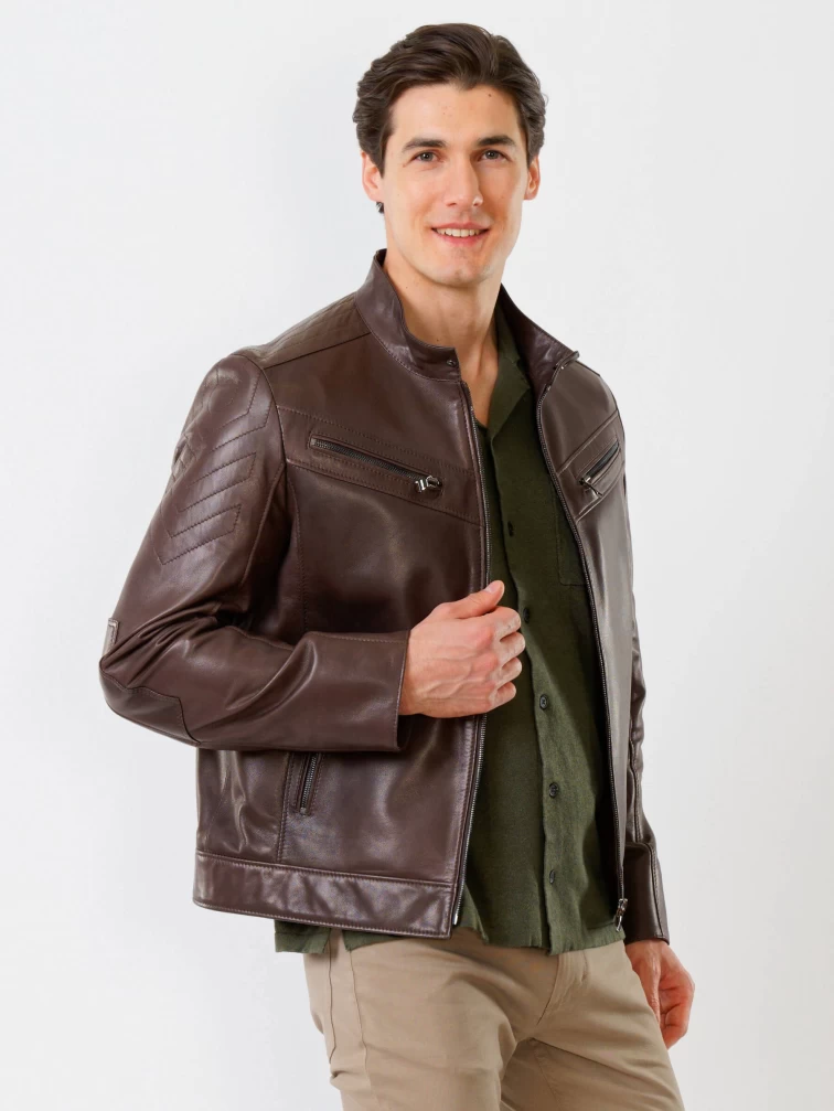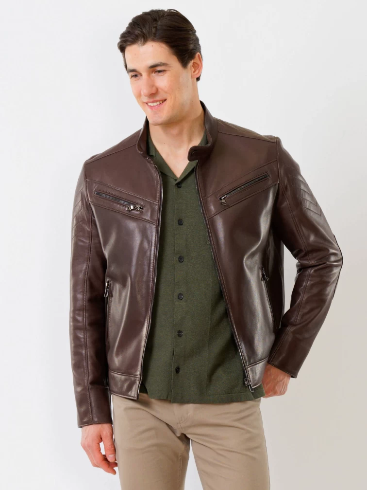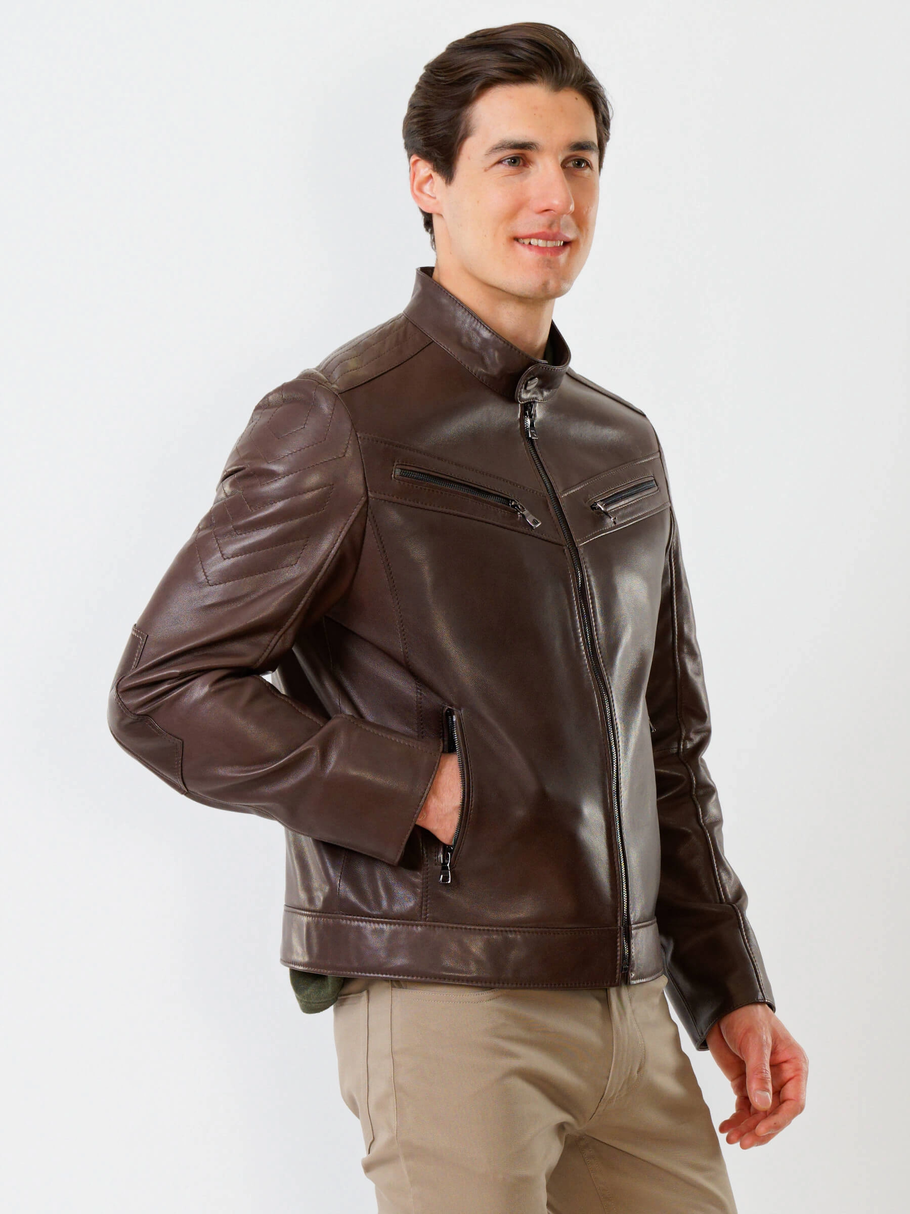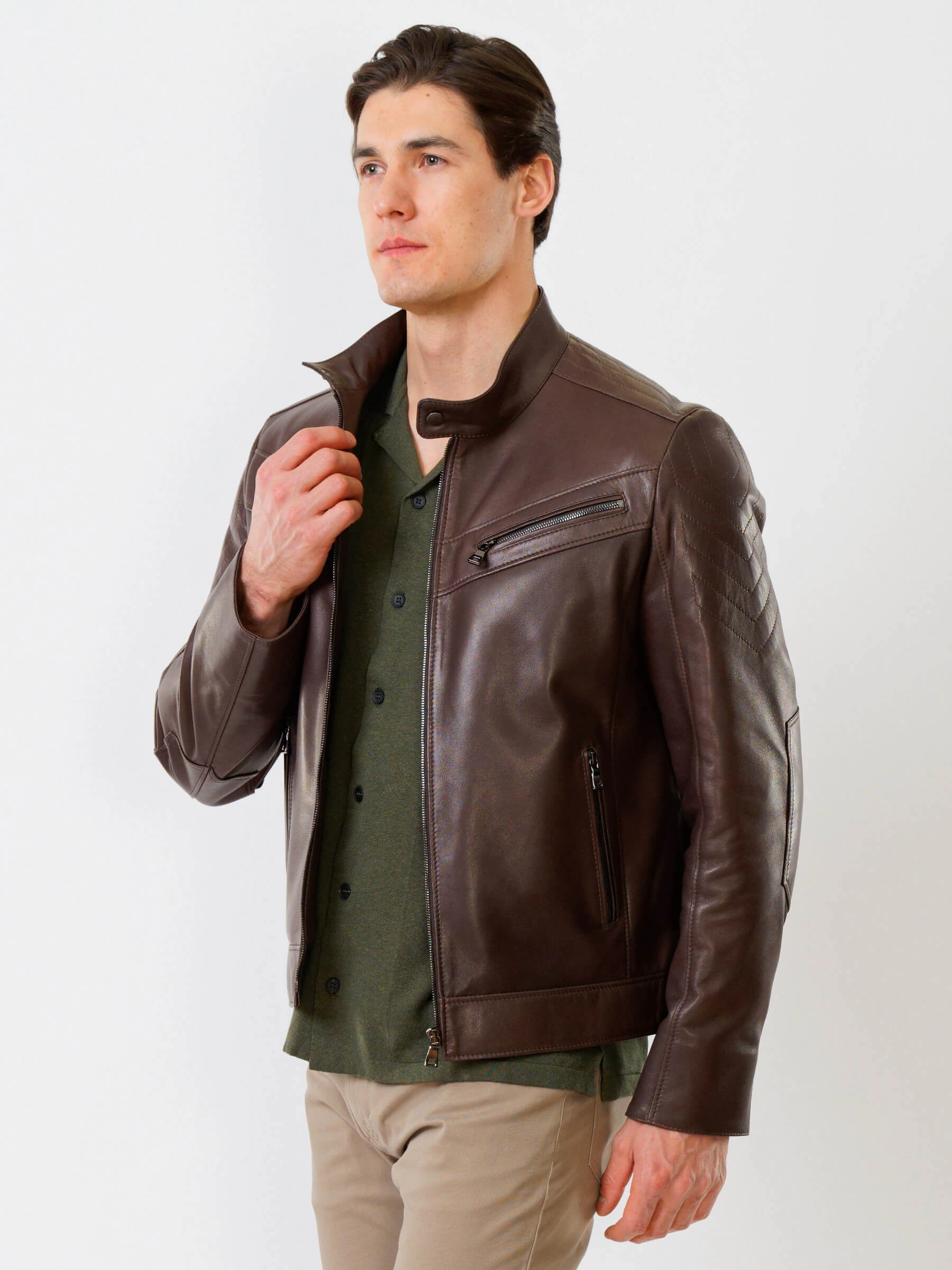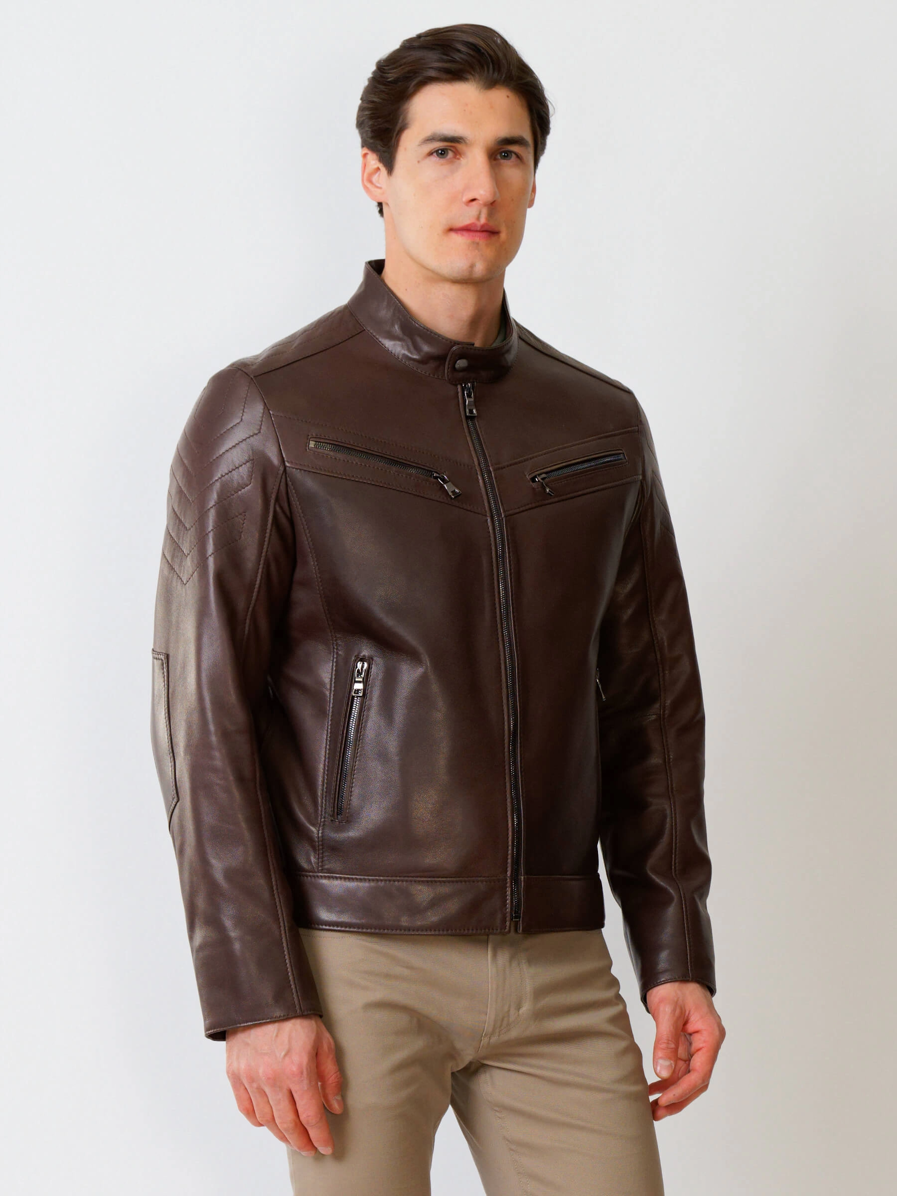 Кожаная куртка мужская 546, коричневая, размер 50, артикул 28711