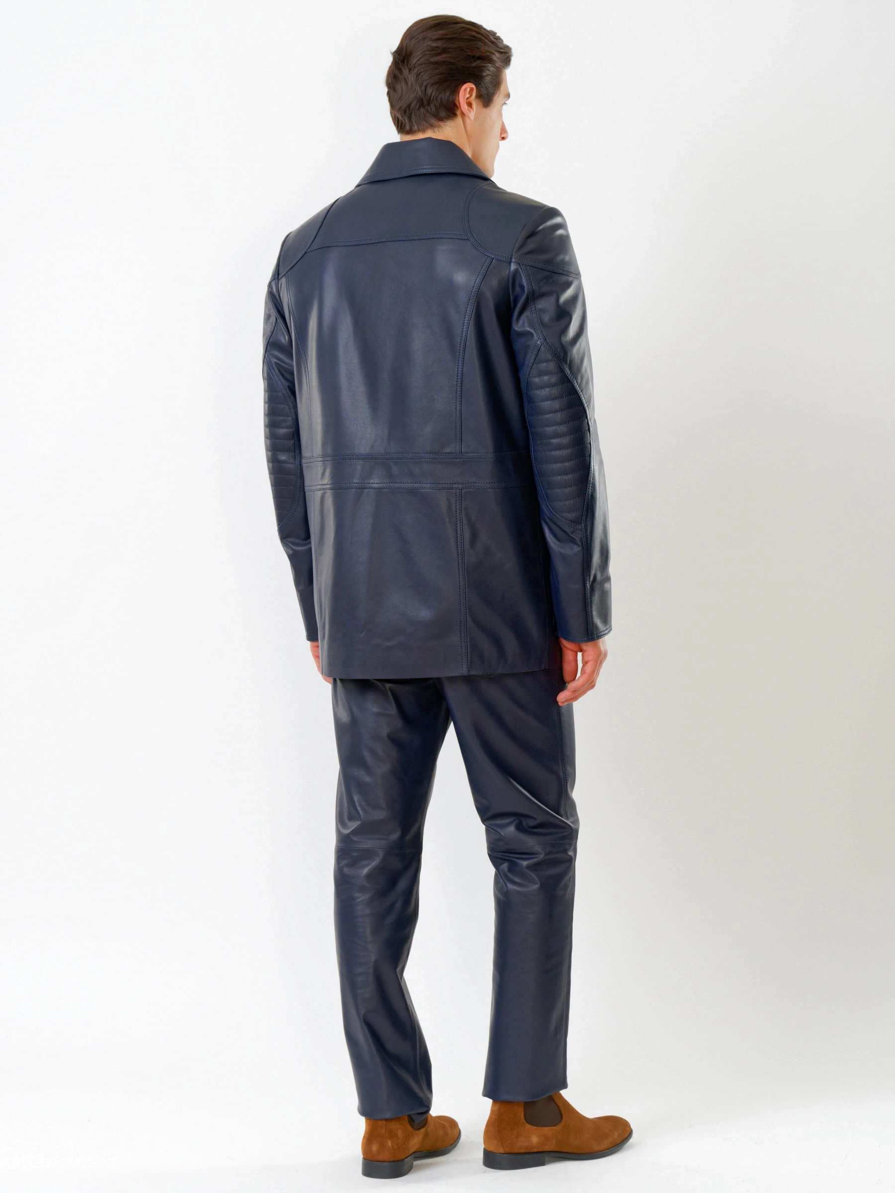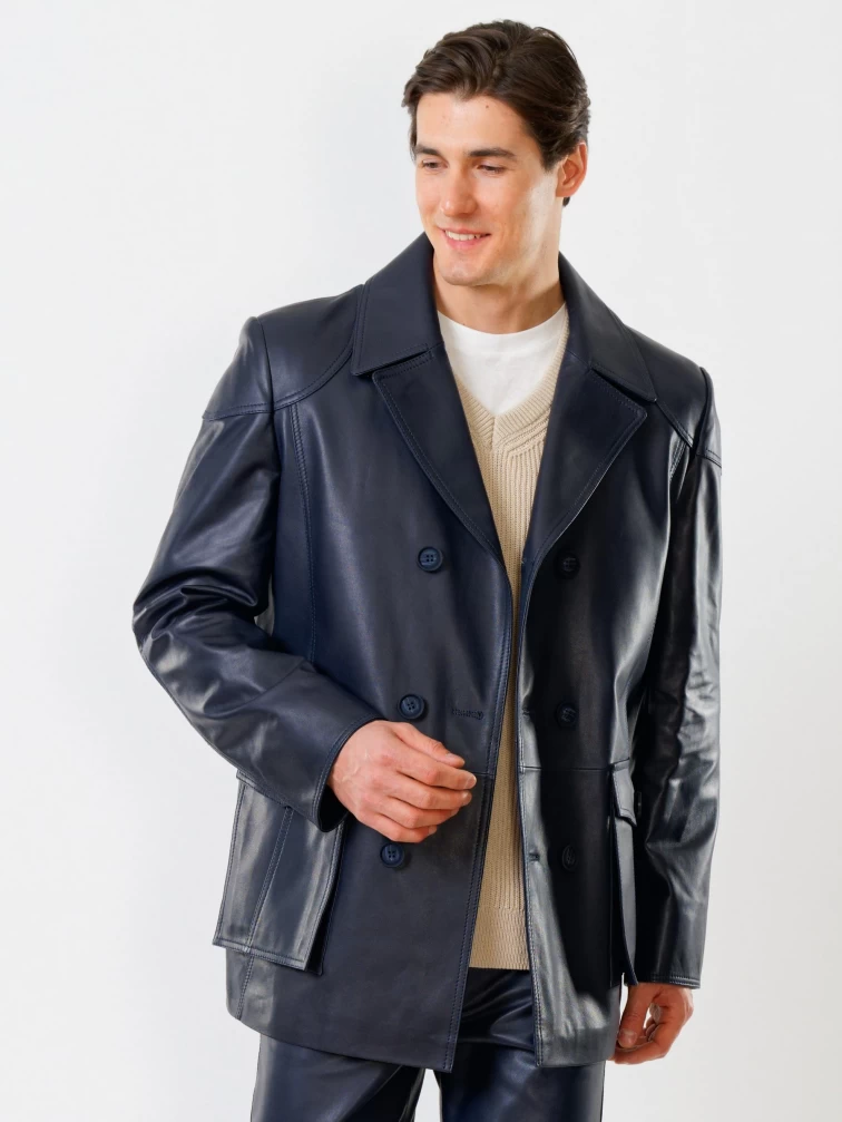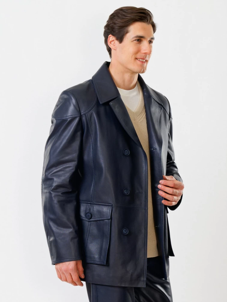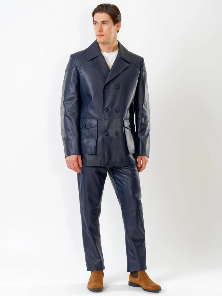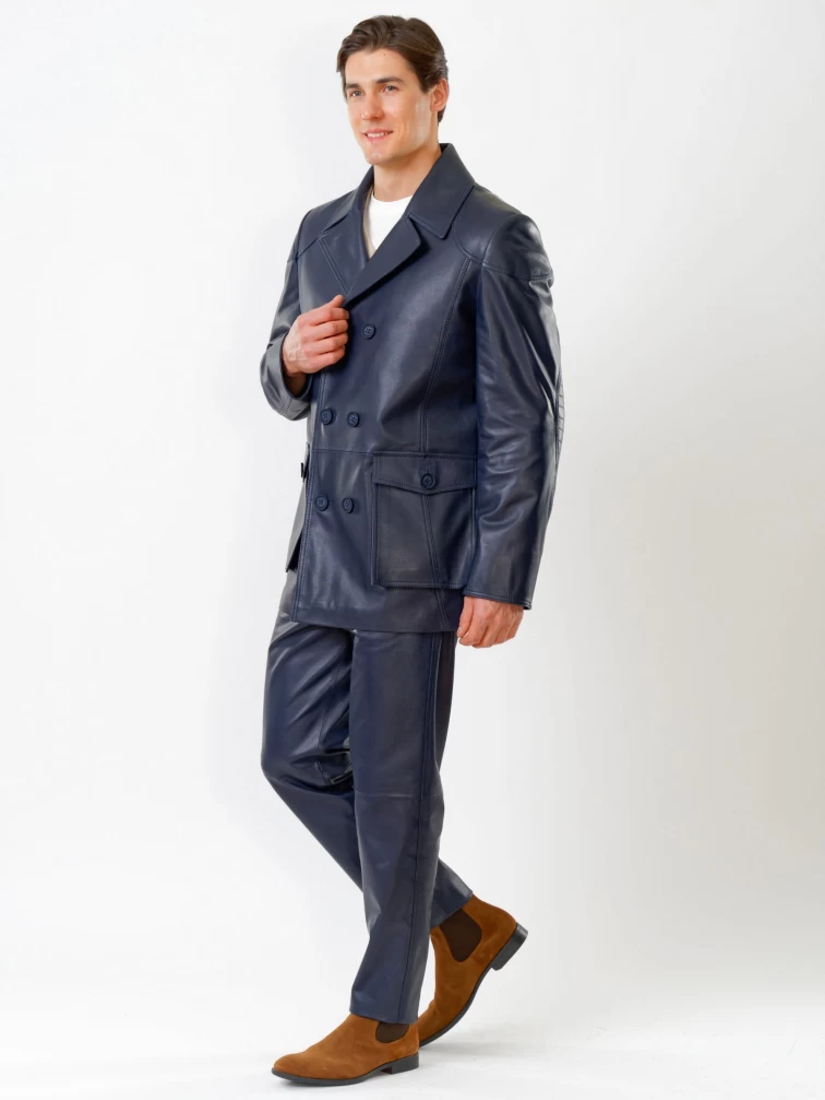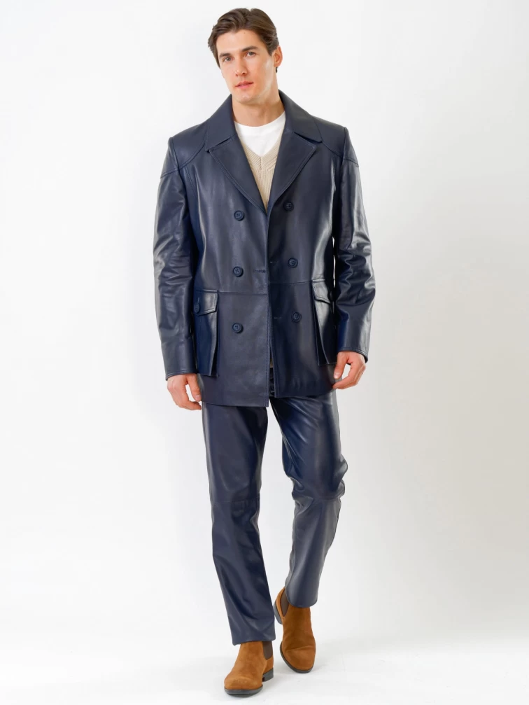 Кожаный комплект мужской: Куртка 549 + Брюки 01, синий, р. 48, артикул 140180