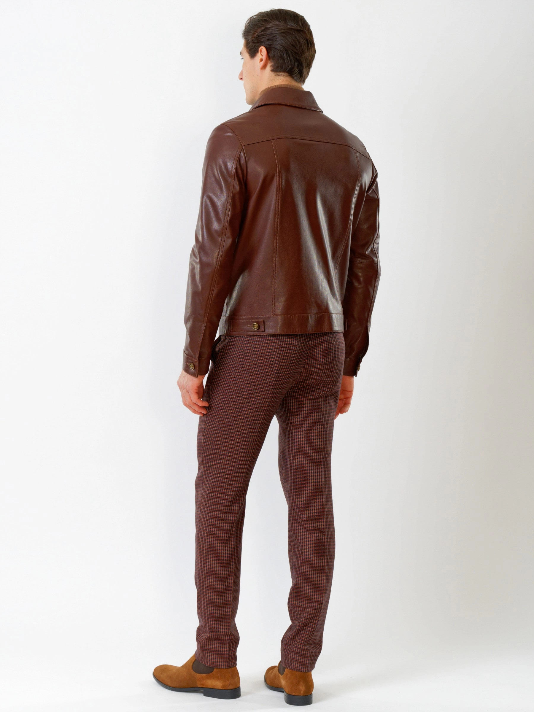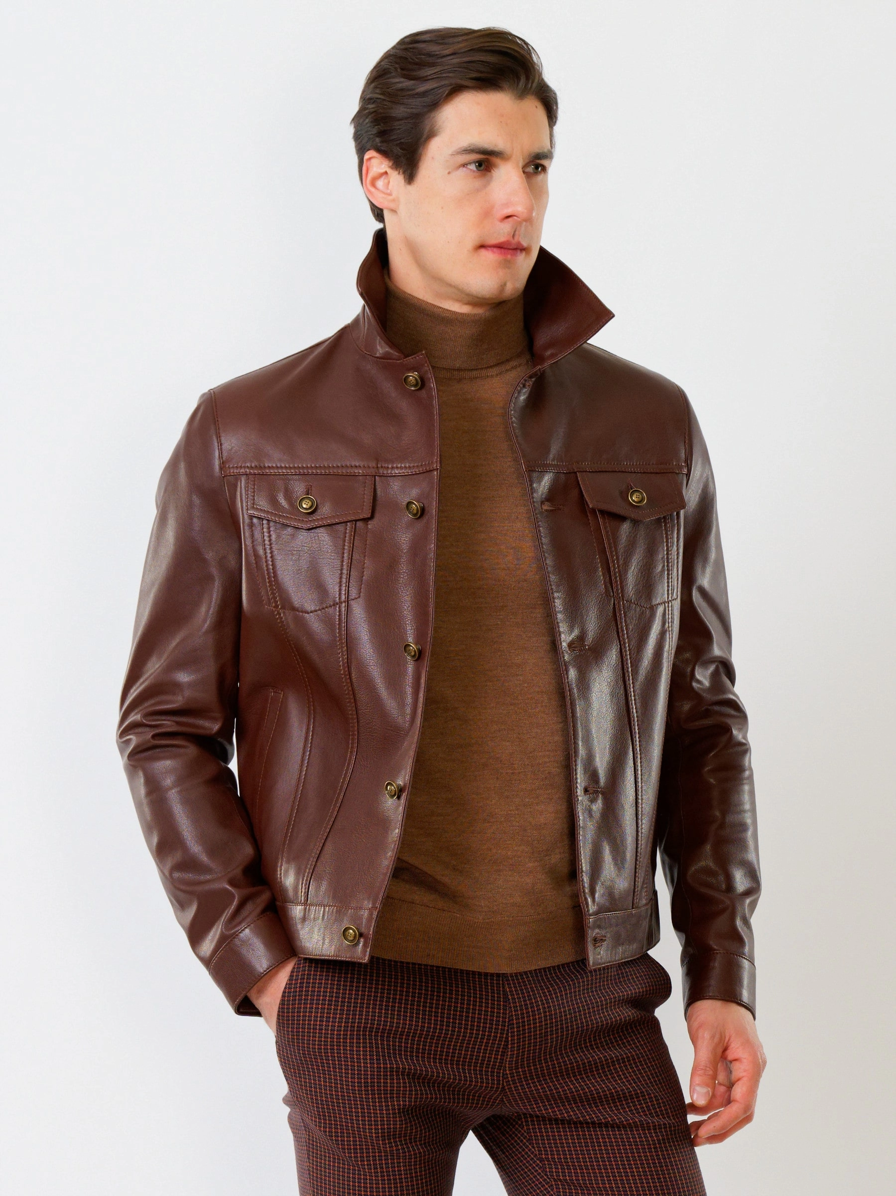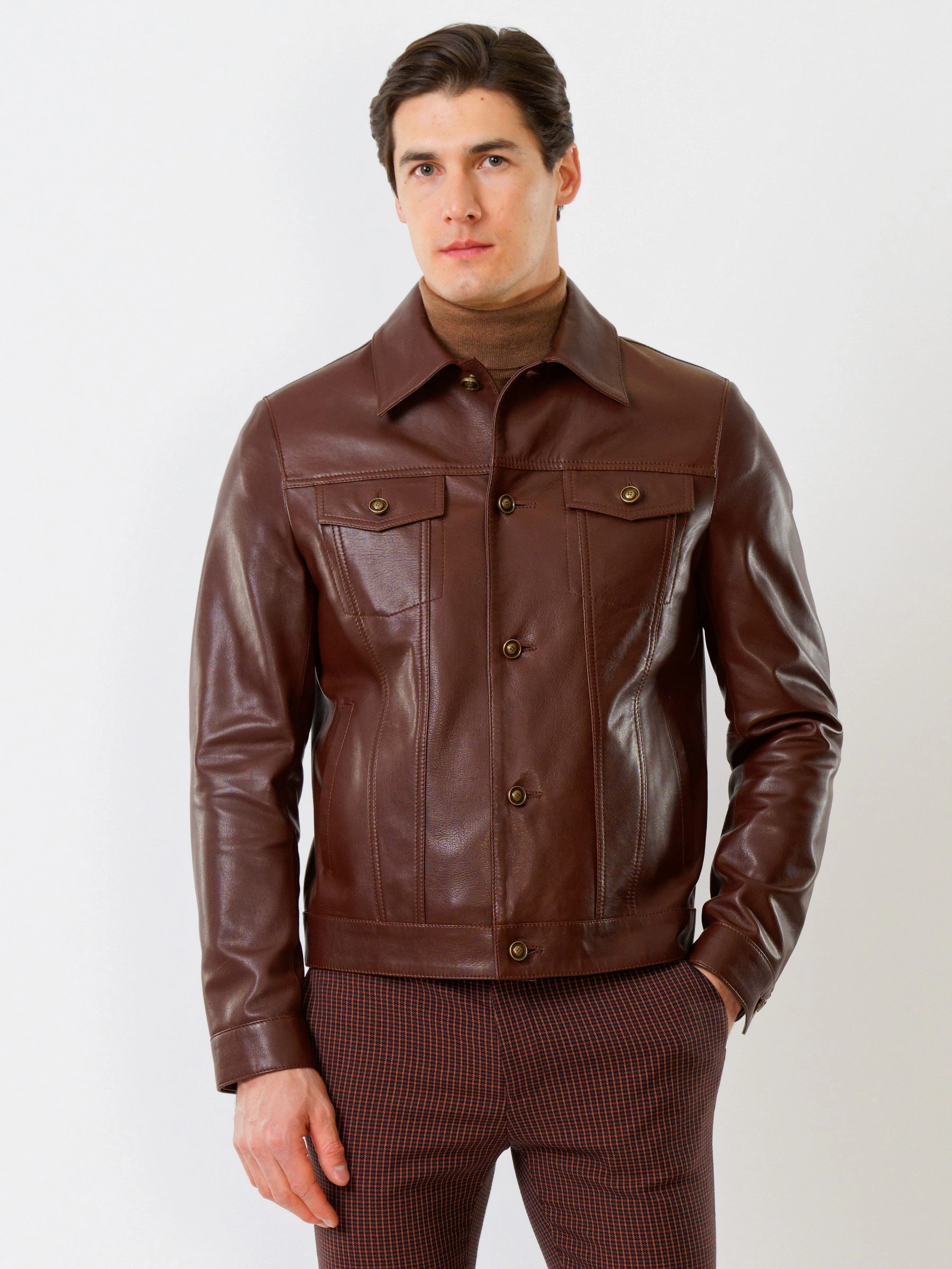 Короткая мужская кожаная куртка в джинсовом стиле 550, коричневая, размер 54, артикул 28740