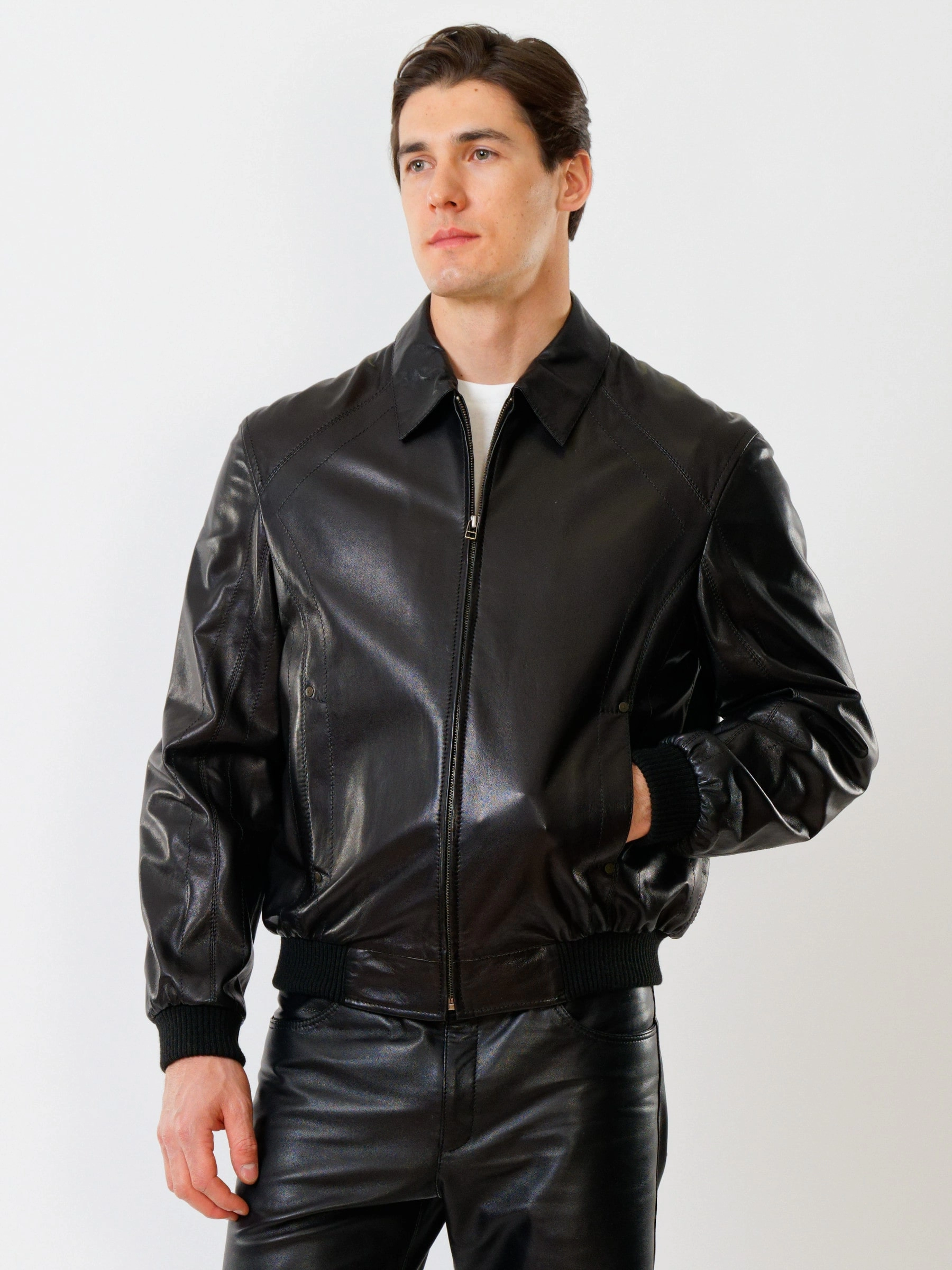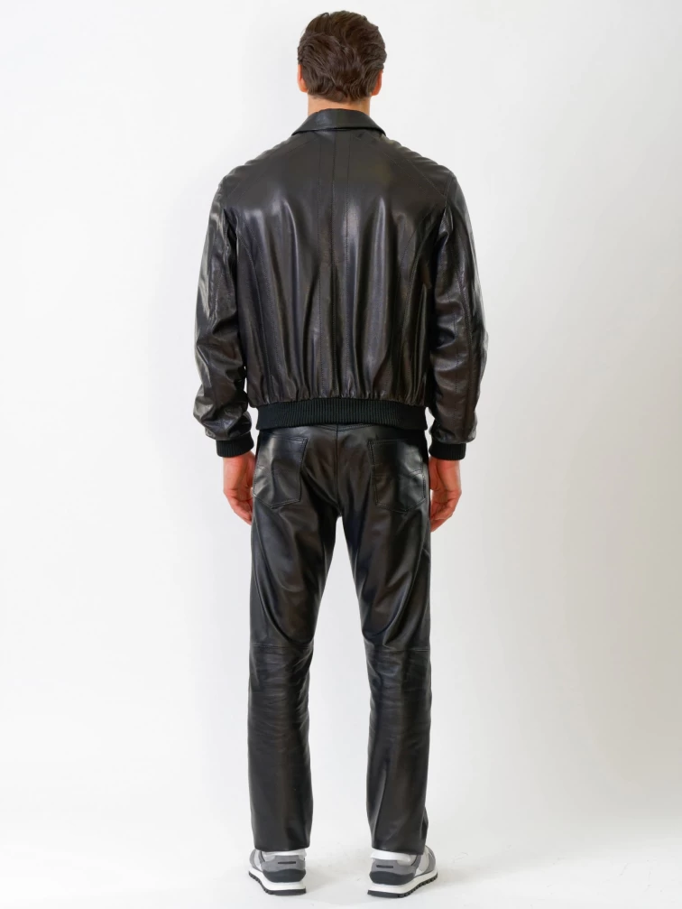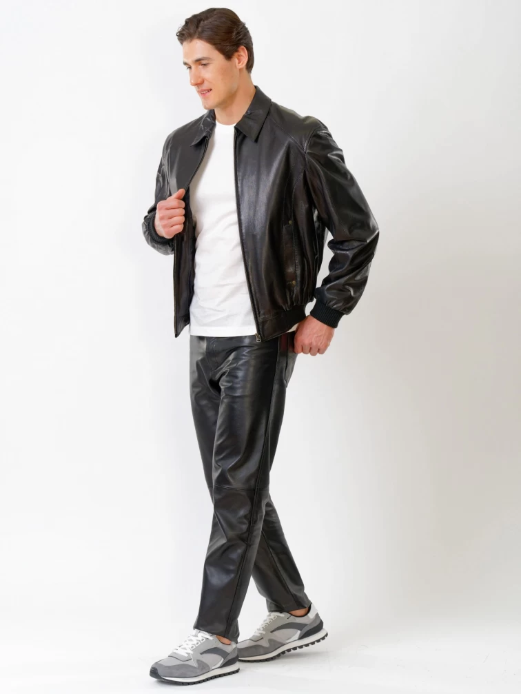 Кожаный комплект мужской: Куртка Мауро + Брюки 01, черный, р. 48, артикул 140220