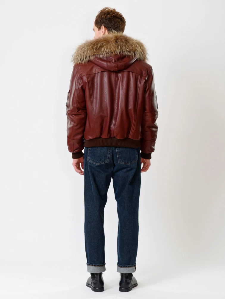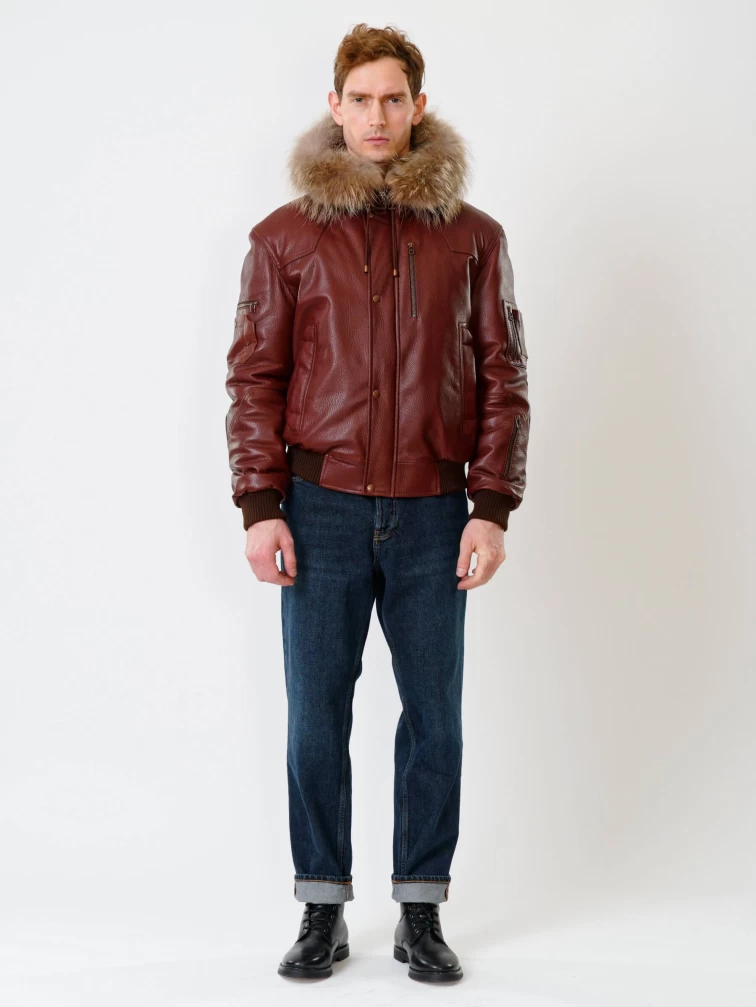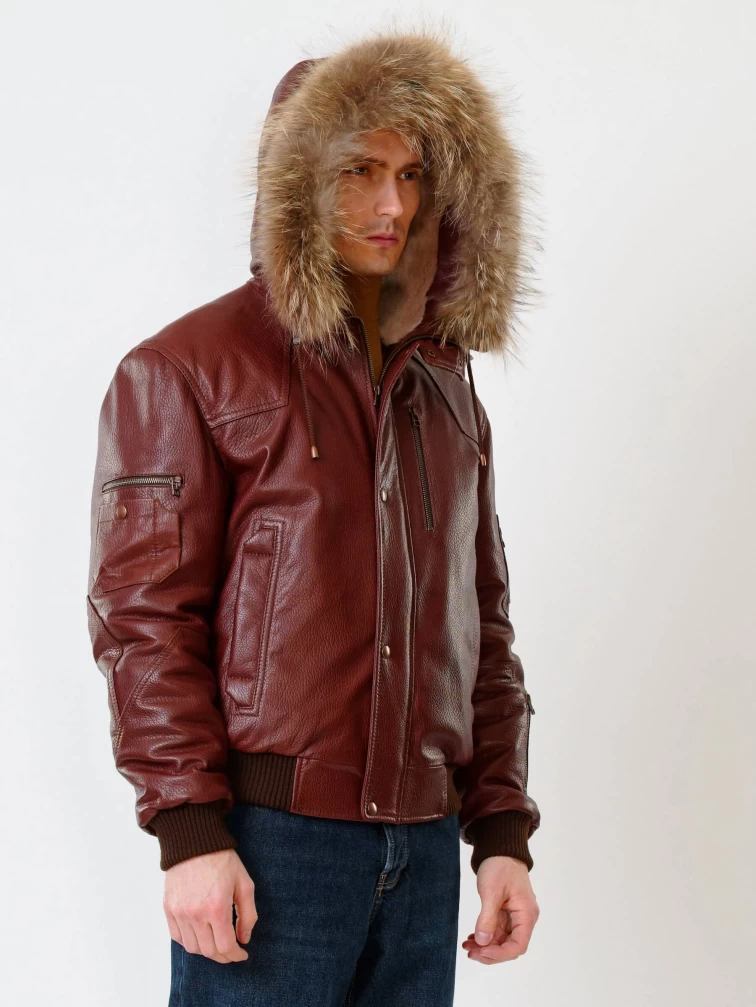 Кожаная мужская куртка аляска утепленная с мехом енота 509, виски, размер 48, артикул 40190