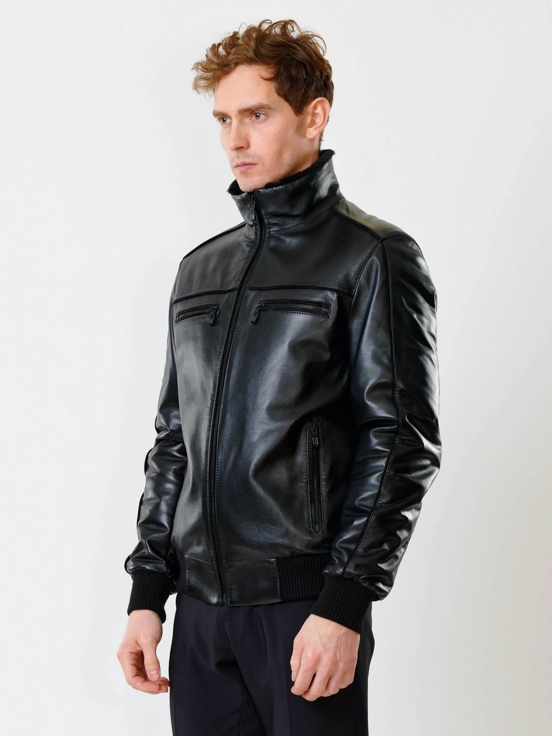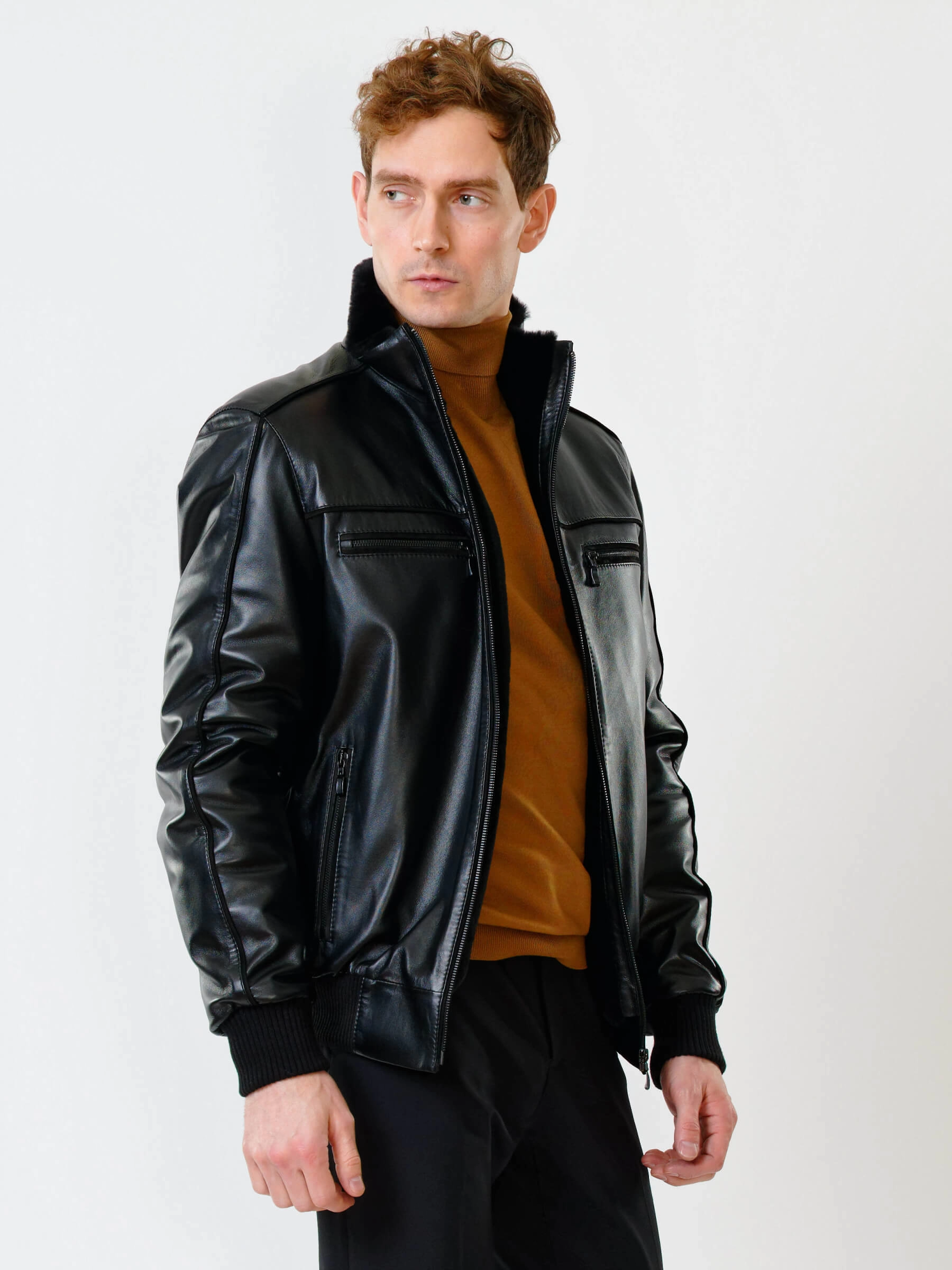 Кожаная дубленка с меховой подкладкой из овчины. Утеплитель в рукавах - синтепон. Воротник-стойка. Застёжка-молния до верха воротника. Боковые карманы на молниях. Нагрудные карманы на молниях. Удобные внутренние карманы для документов. Напульсники рукавов и низ модели из трикотажной резинки. Комфортная посадка по фигуре. Куртка очень удобна за рулём.
