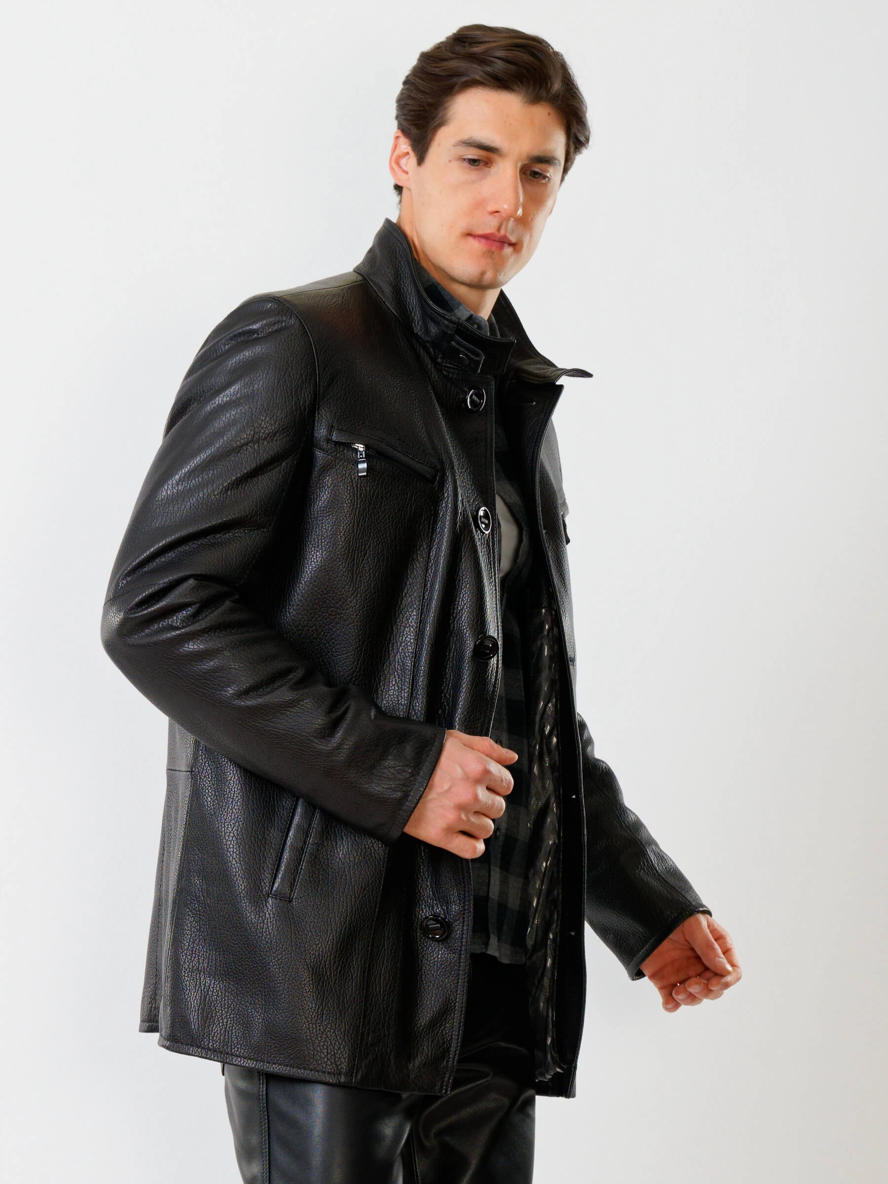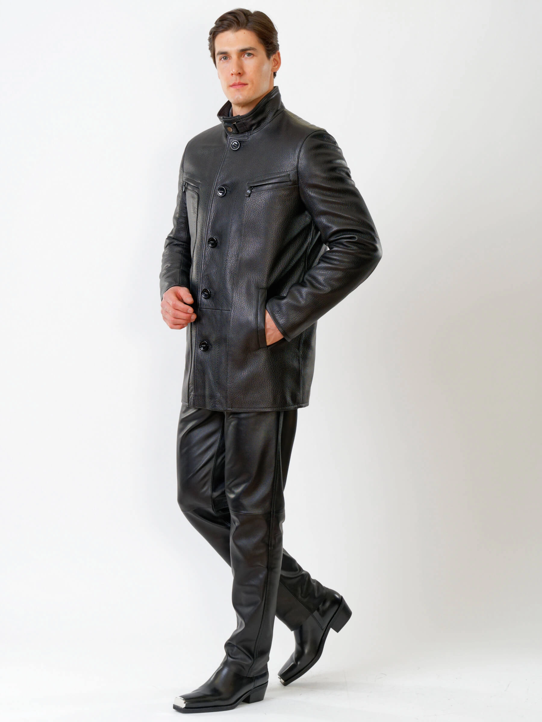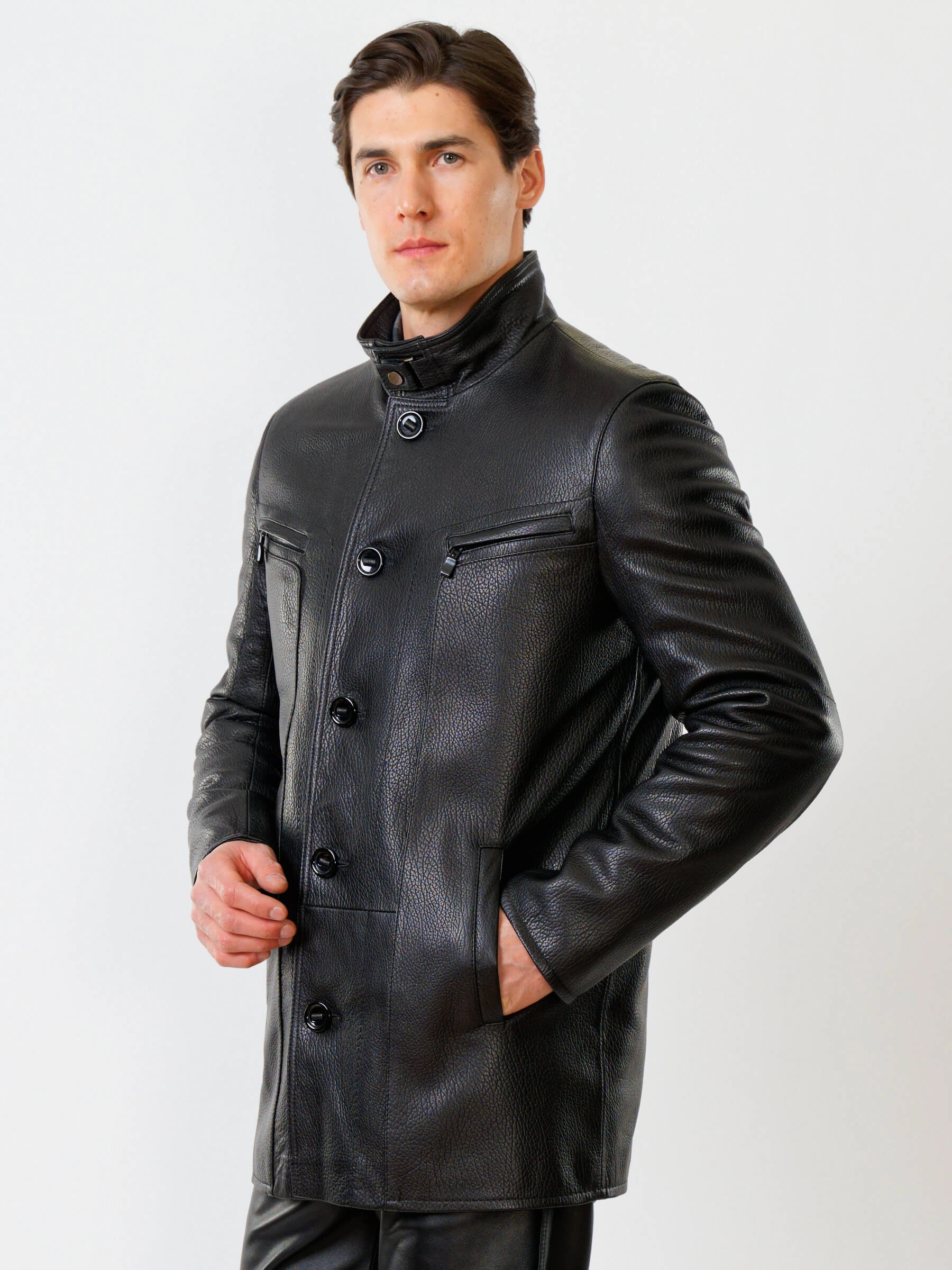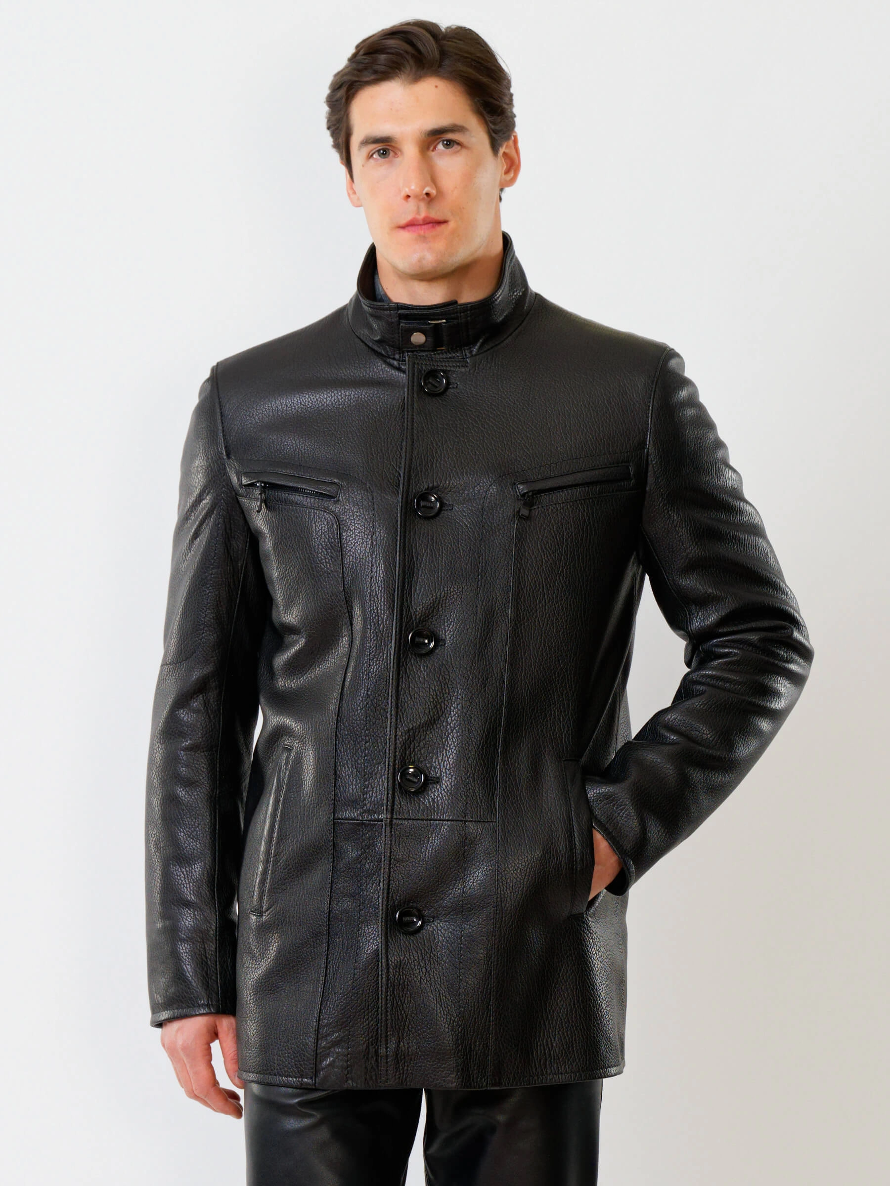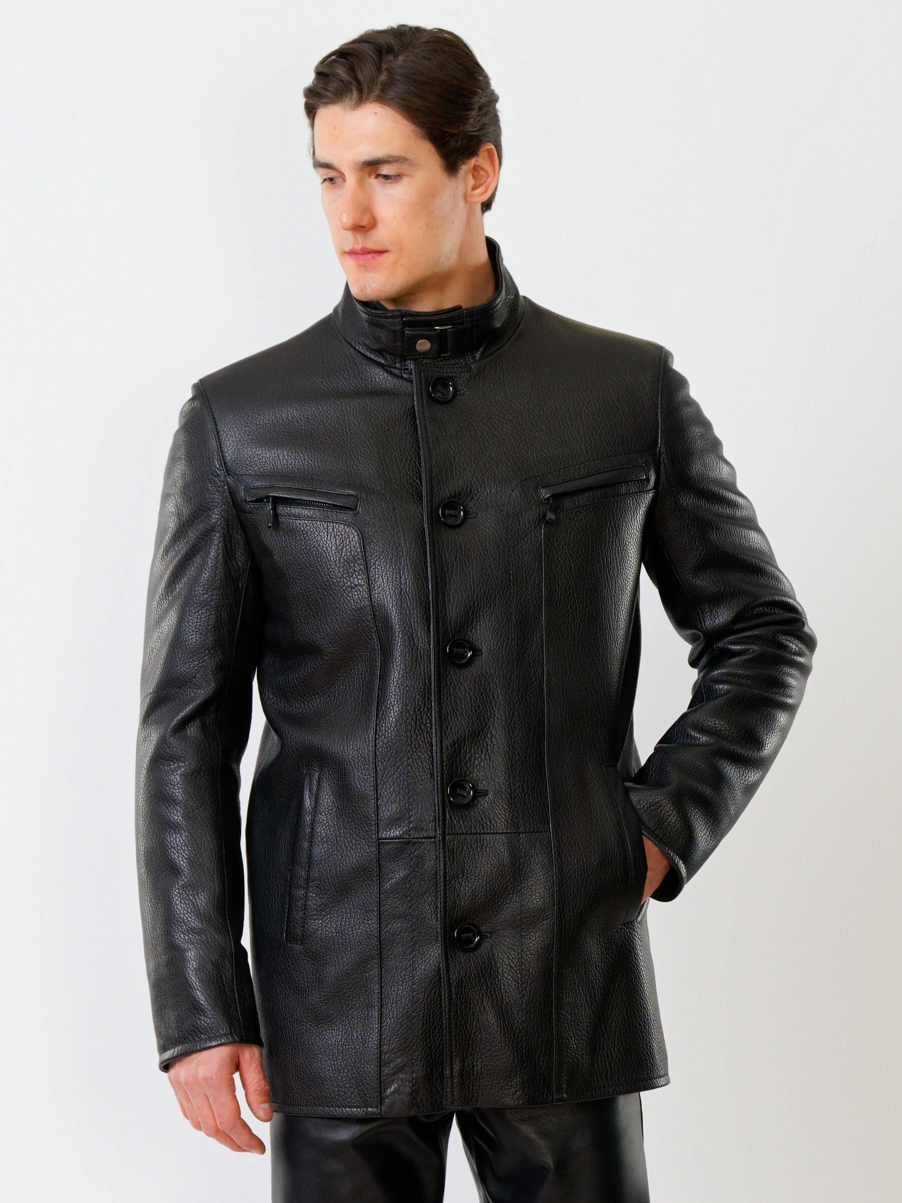 Товар кожаная куртка утепленная мужская 517нвш, черная, размер 48, артикул 40360 выполнен из натуральной кожи с застежкой пуговицы. Рассчитан на сезон: демисезон. Длина изделия 88 см, силуэт прямой.
