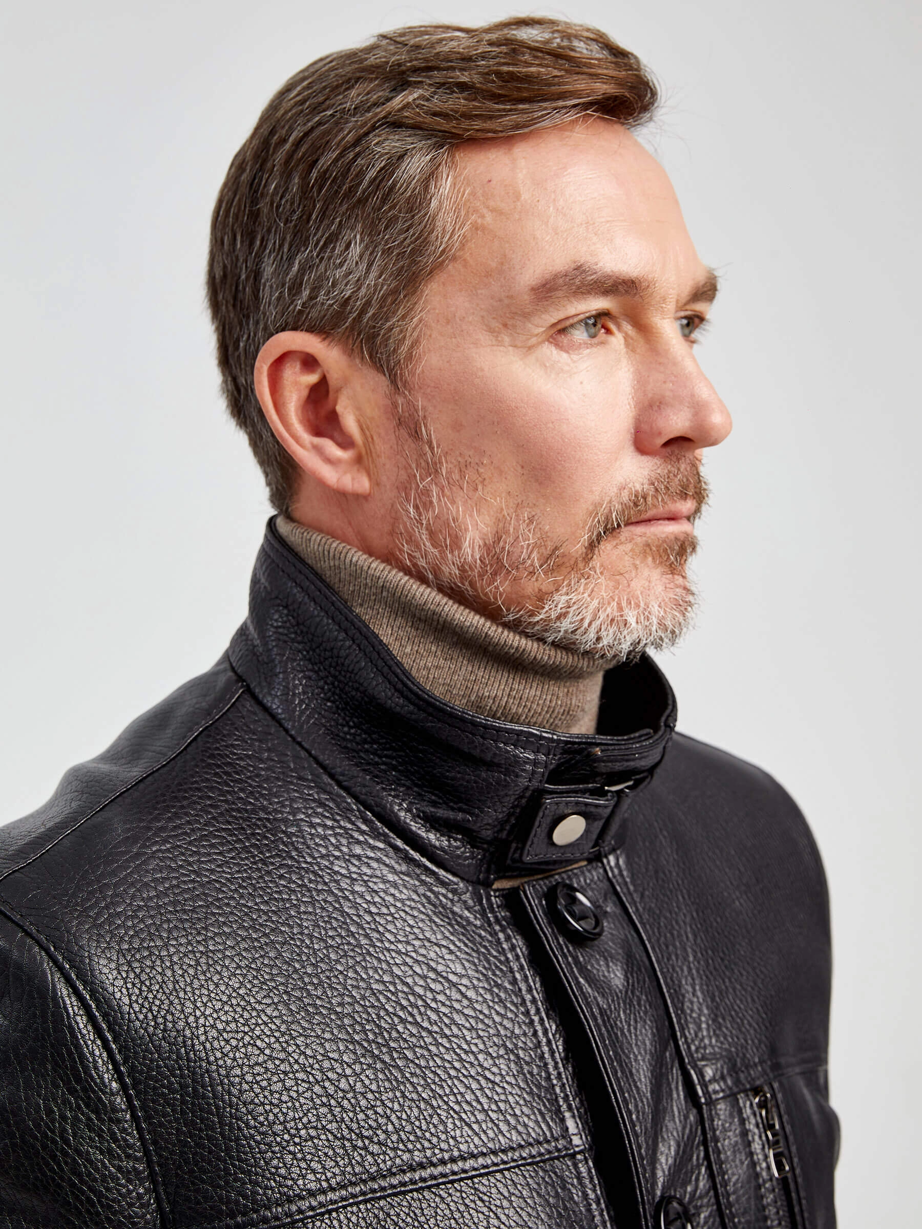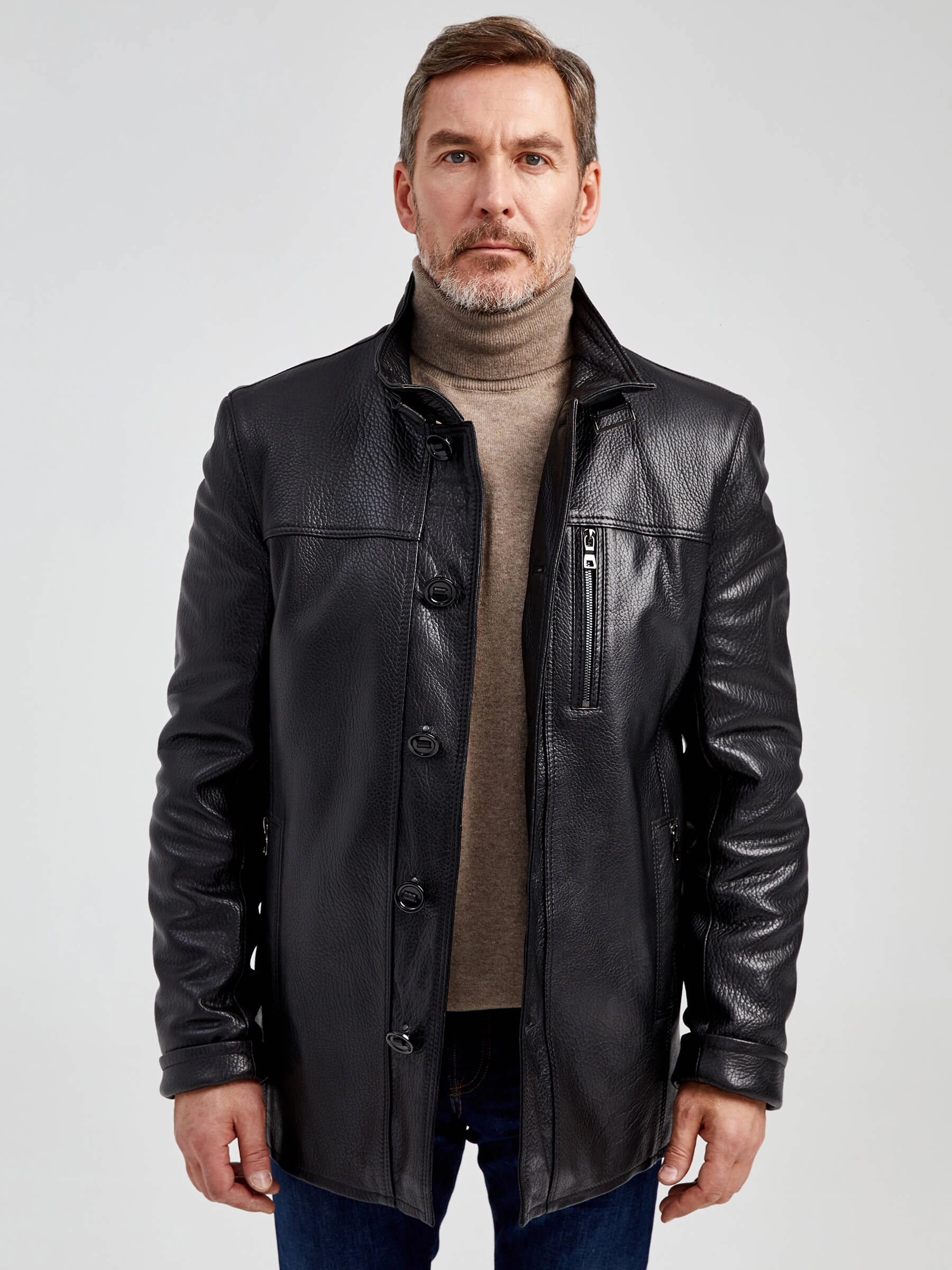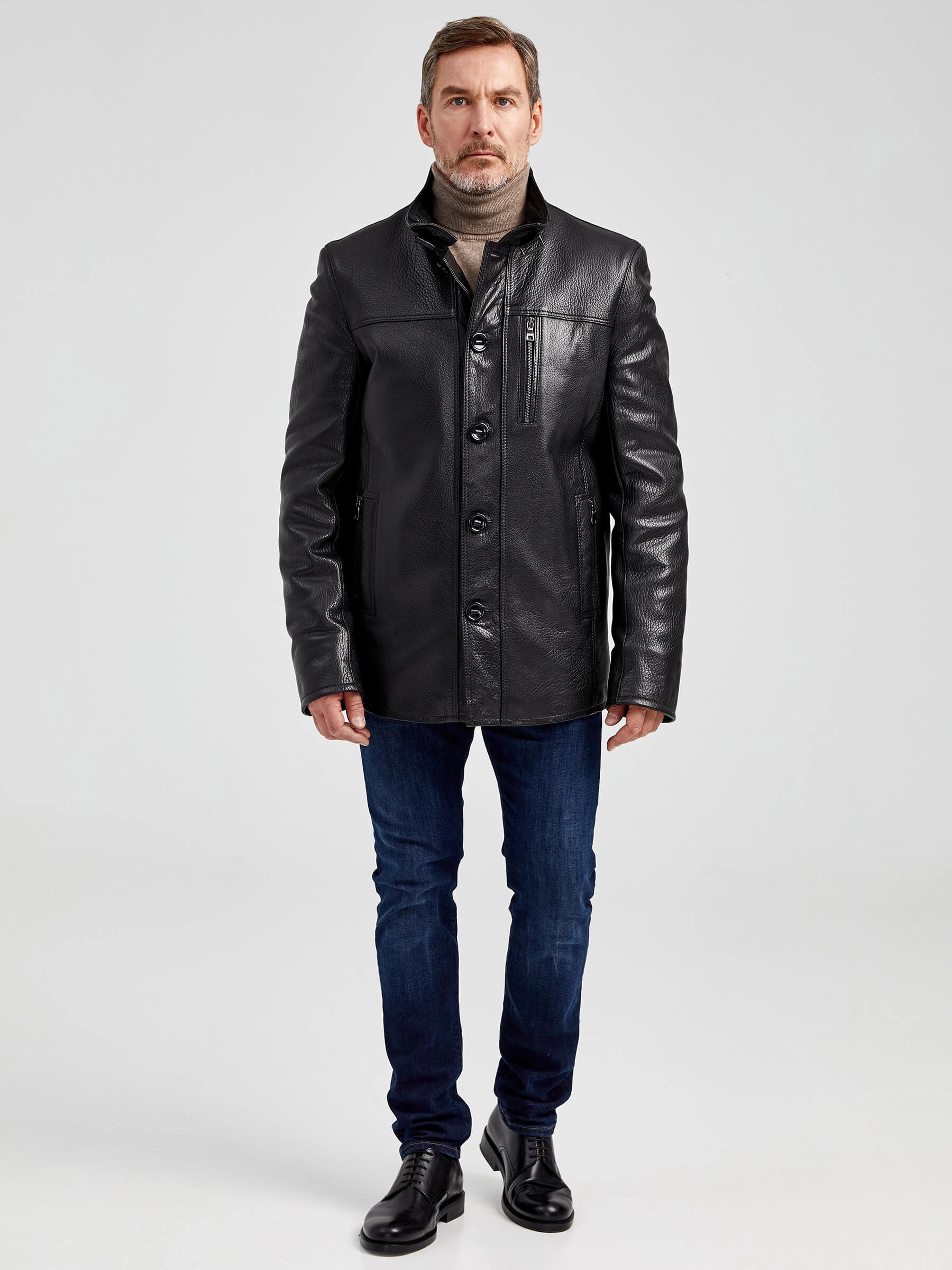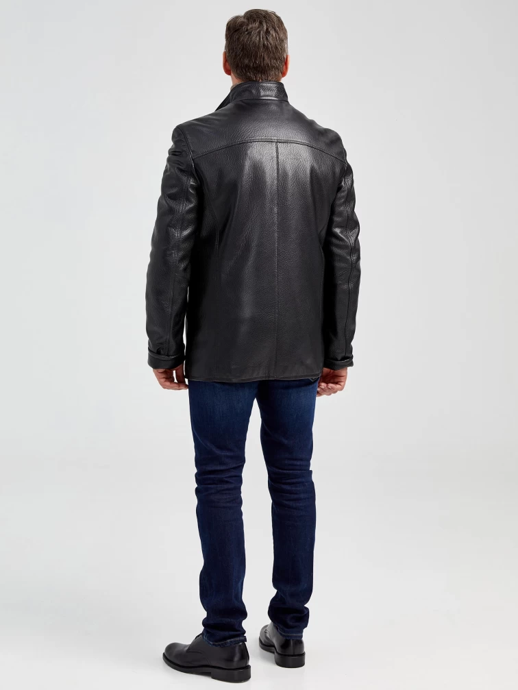 Кожаная куртка утепленная мужская 518ш, черная, размер 46, артикул 40461