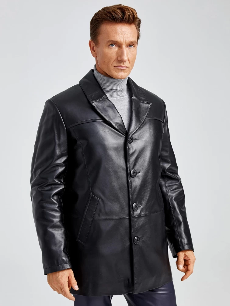 Товар мужская зимняя кожаная куртка с норковым воротником премиум класса 534мех, черная, размер 58, артикул 40401 выполнен из натуральной кожи с застежкой пуговицы. Рассчитан на сезон: осень-зима. Длина изделия 86 см, силуэт прямой.