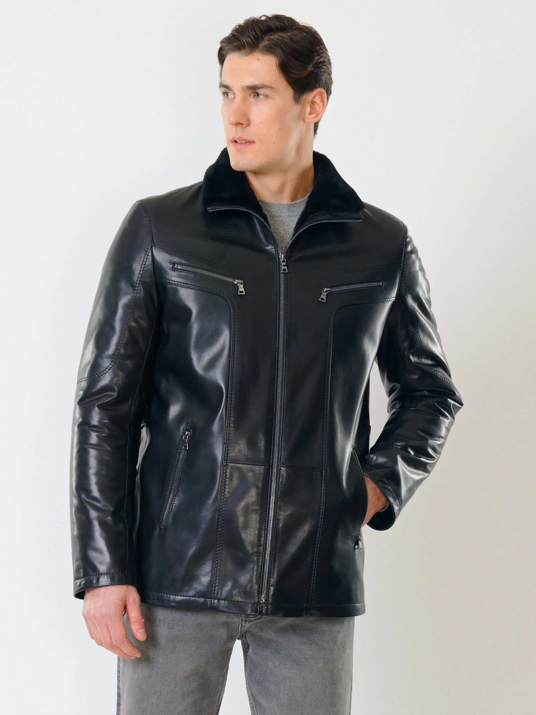 Товар зимняя мужская кожаная куртка на подкладке из овчины премиум классса 537мех, черная, размер 52, артикул 40290 выполнен из натуральной кожи с застежкой молния. Рассчитан на сезон: осень-зима. Длина изделия 78 см, силуэт прямой.