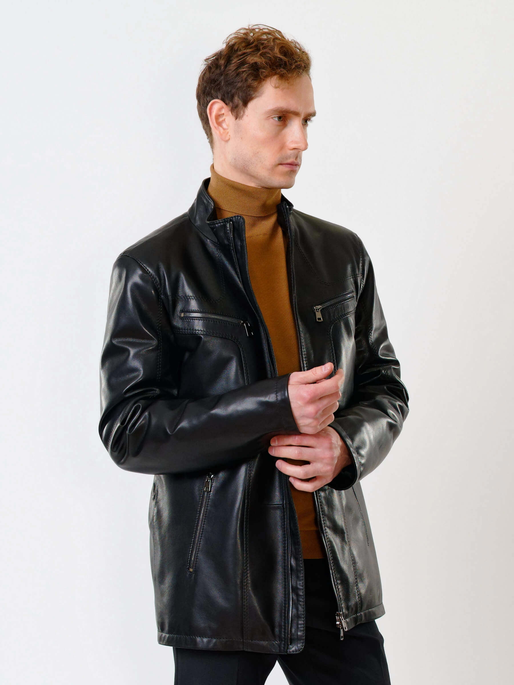 Мужская утепленная кожаная куртка пять молний премиум класса 537ш, черная, размер 58, артикул 40221