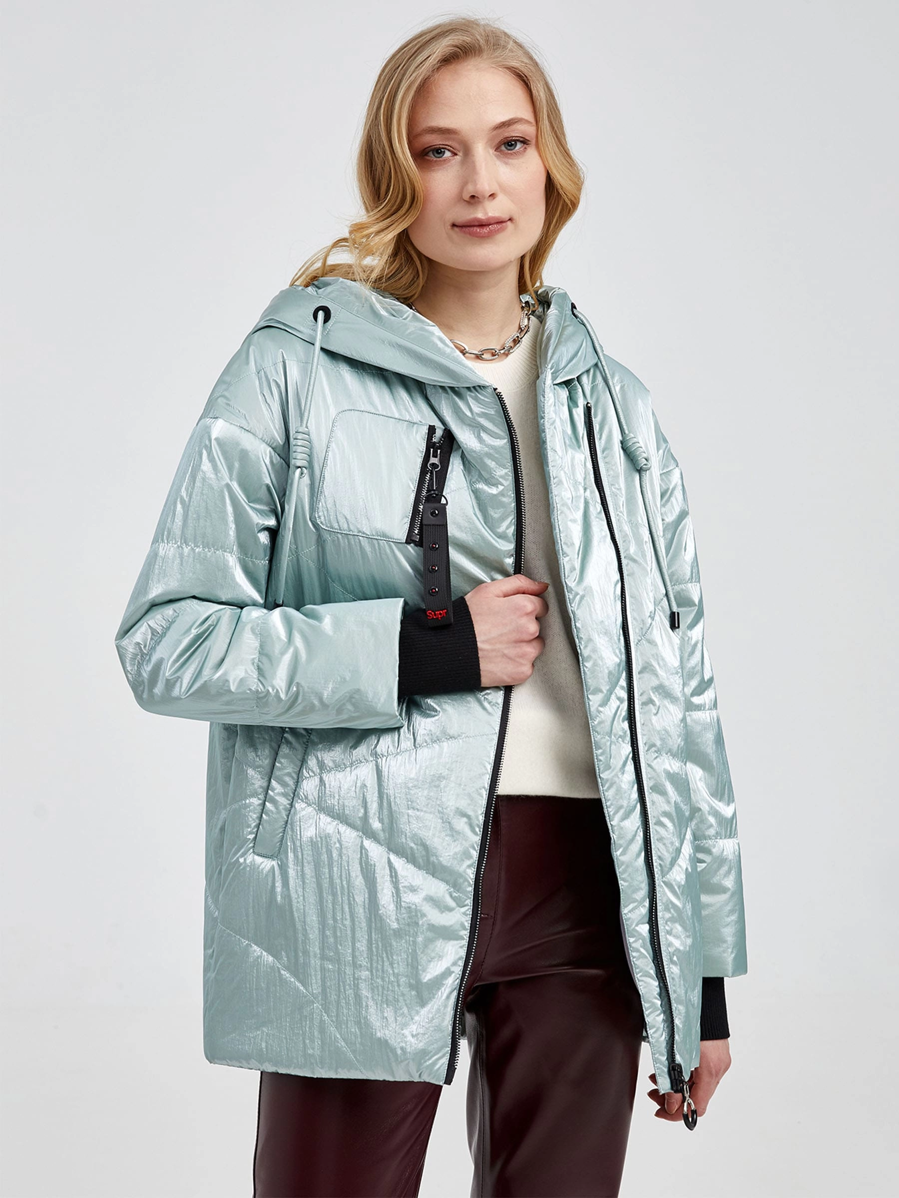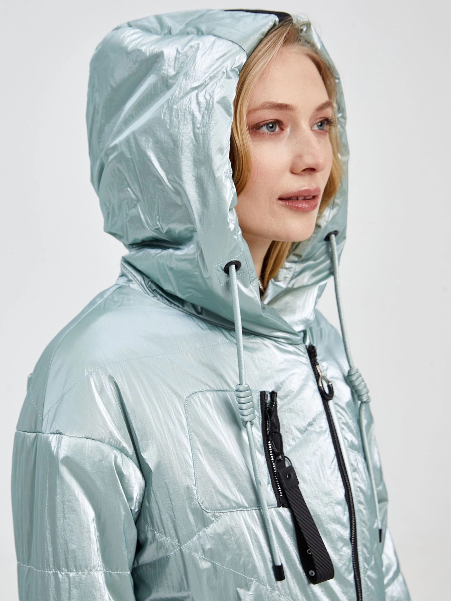 Товар женская текстильная утепленная куртка с капюшоном 20032, мятная, размер 42, артикул 25050 выполнен из текстиль с застежкой молния. Рассчитан на сезон: демисезон. Длина изделия 51-74 см, силуэт прямой.