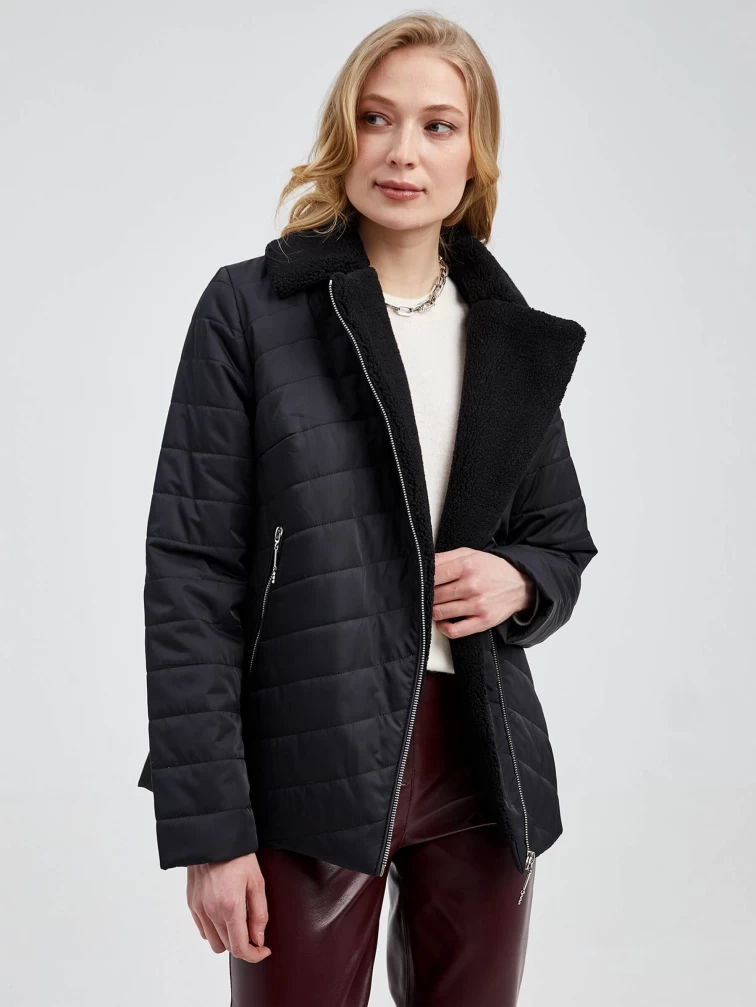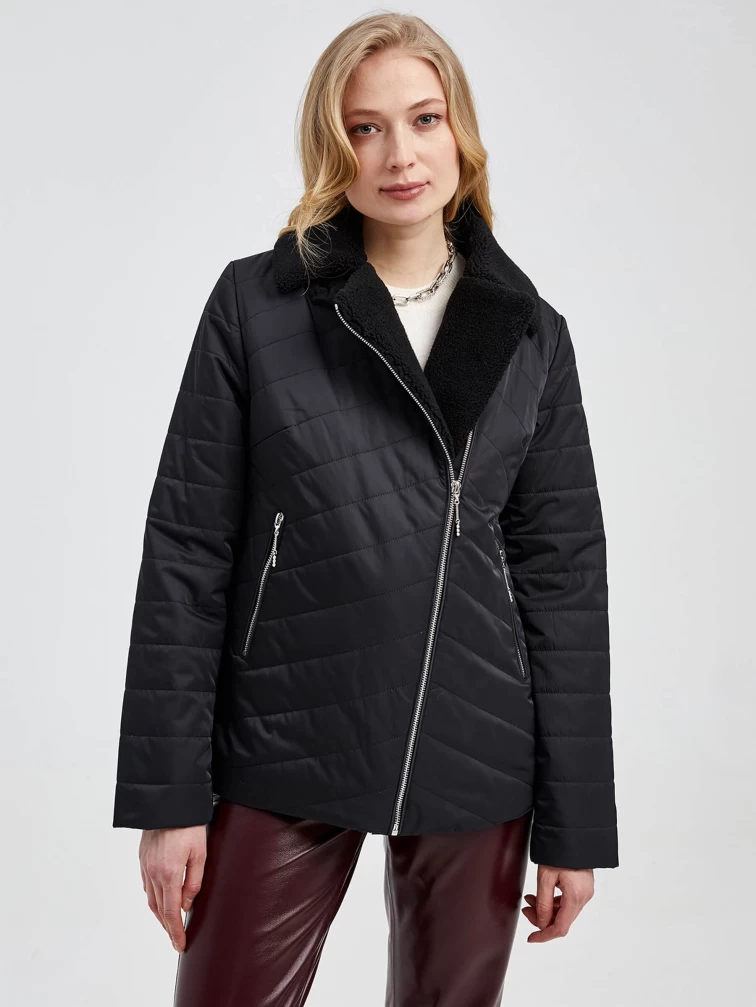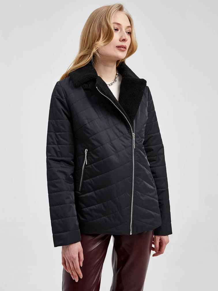 Текстильная утепленная женская куртка косуха 21130, черная, размер 42, артикул 25000