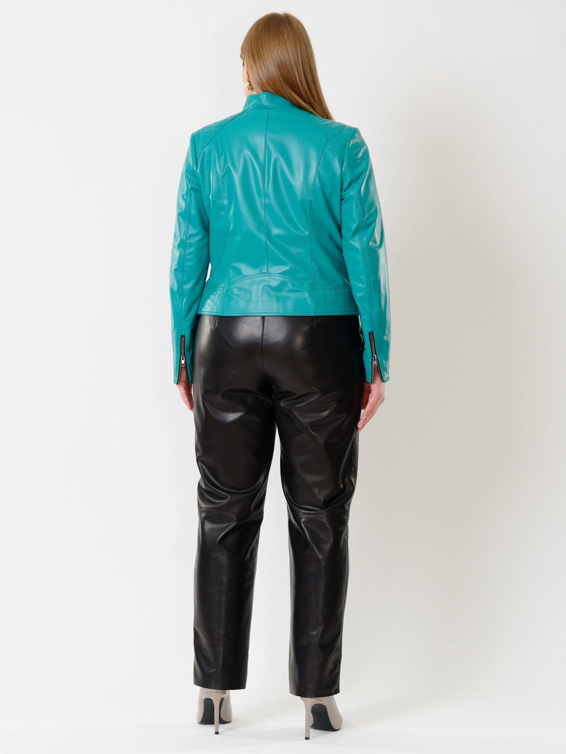 Кожаная куртка косуха женская 300, бирюзовая, размер 46, артикул 91152