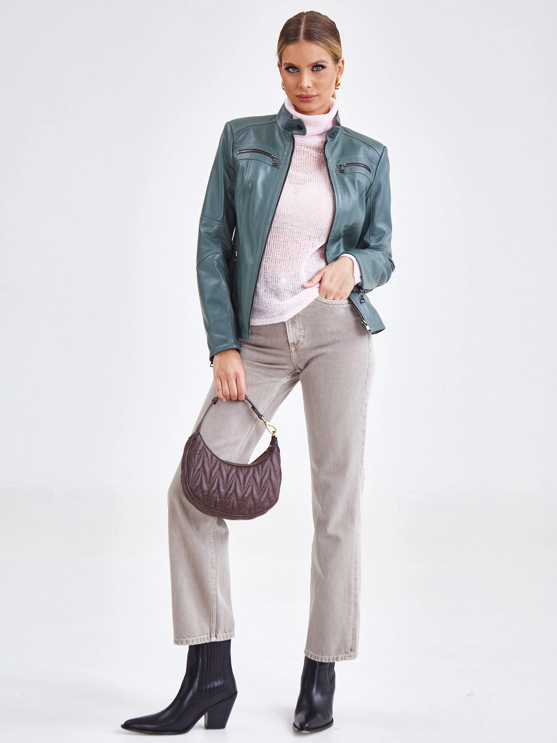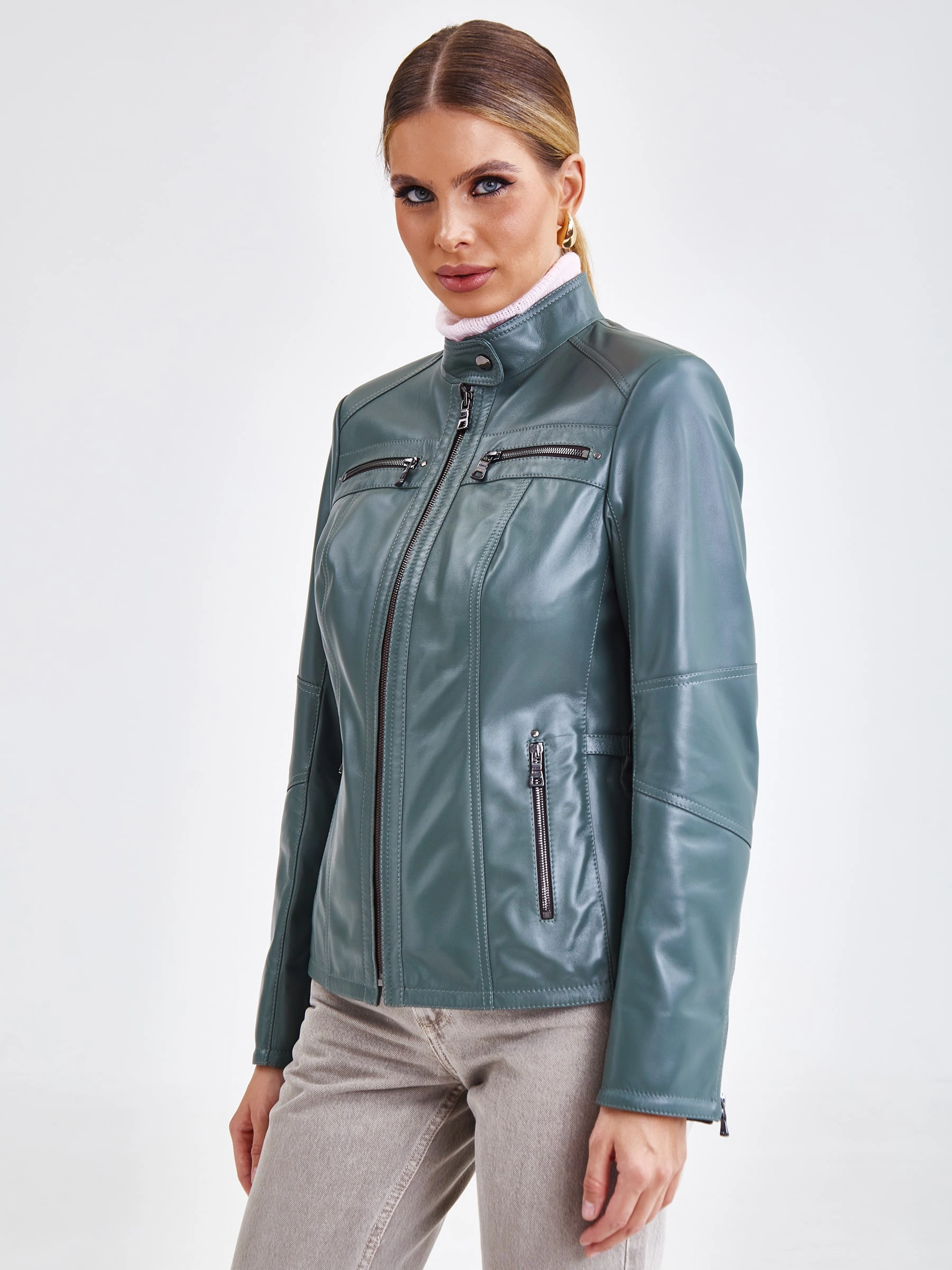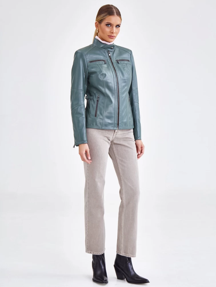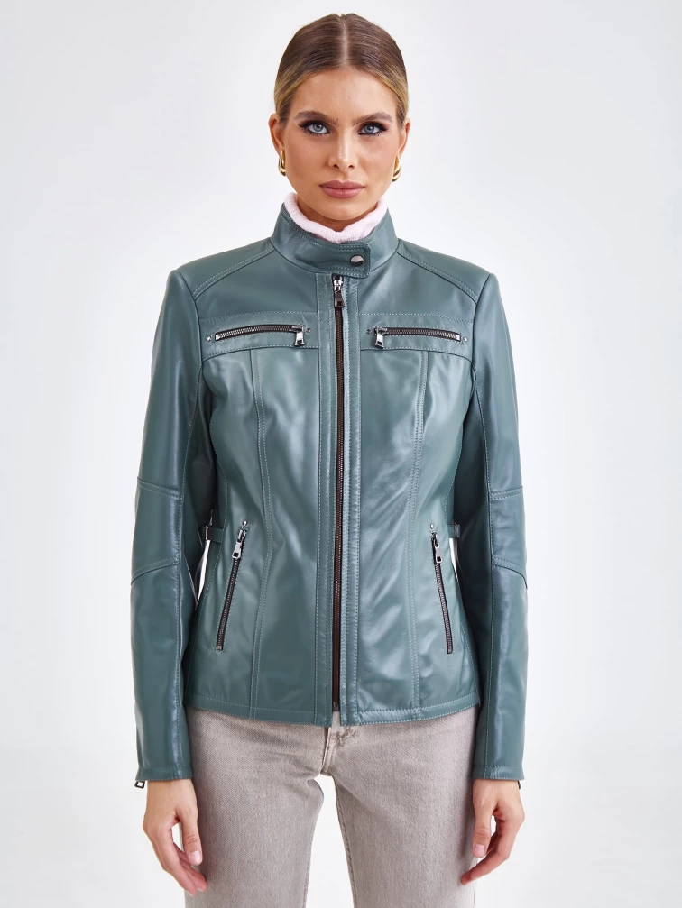 Кожаная куртка женская 301, оливковая, размер 44, артикул 90581