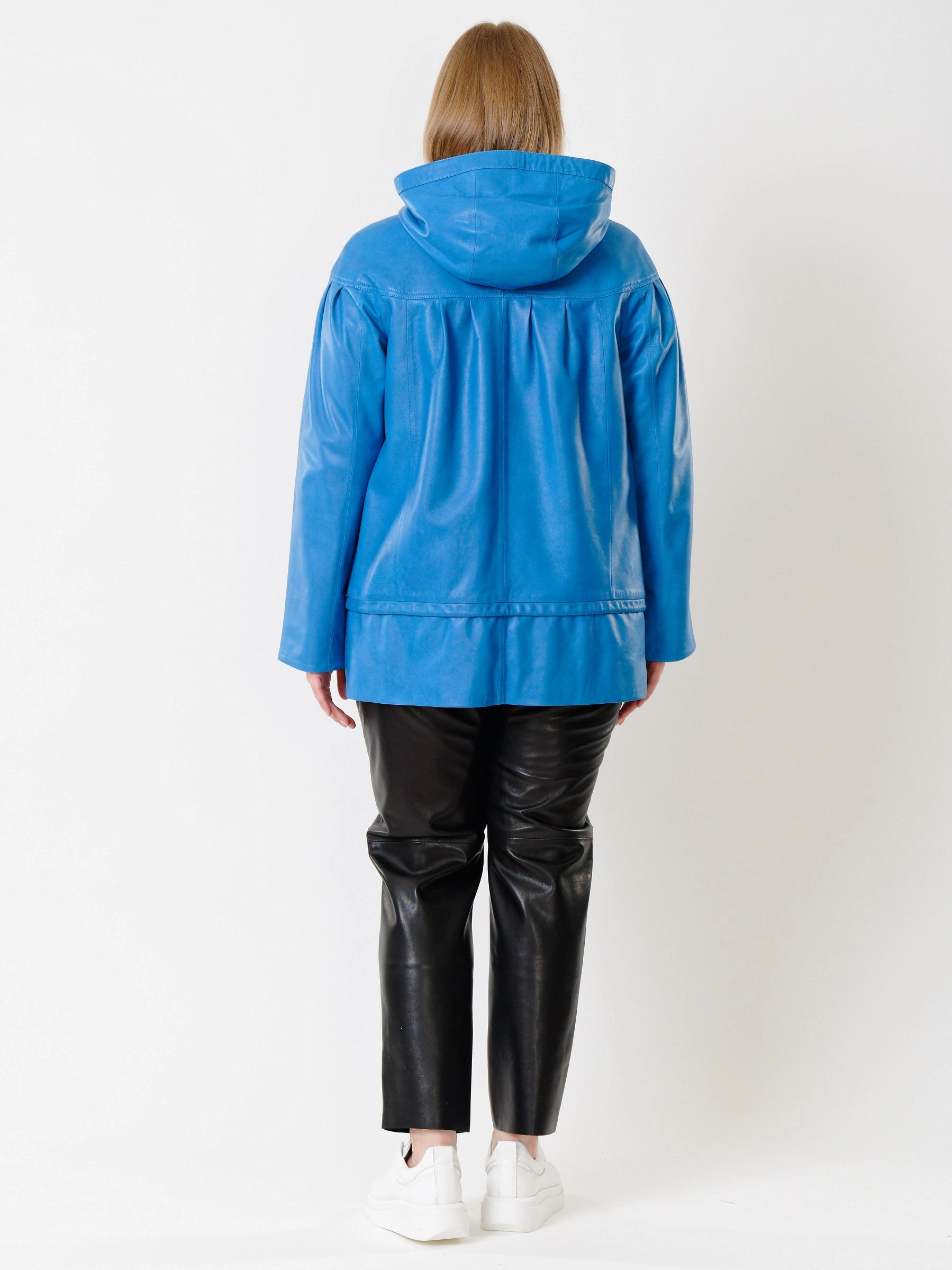 Кожаная женская куртка с капюшоном 303у, голубая, размер 54, артикул 91201