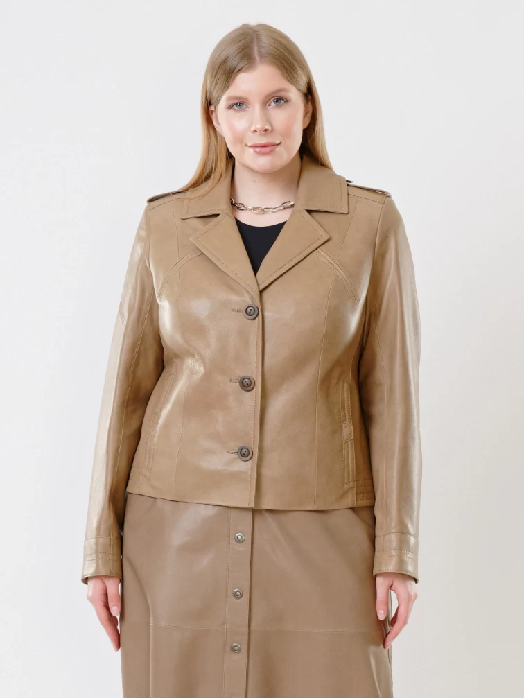 Товар короткая женская кожаная куртка пиджак 304, серо-коричневая, размер 46, артикул 91433 выполнен из натуральной кожи с застежкой пуговицы. Рассчитан на сезон: весна-лето. Длина изделия 56 см, силуэт полуприлегающий.