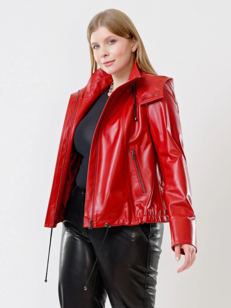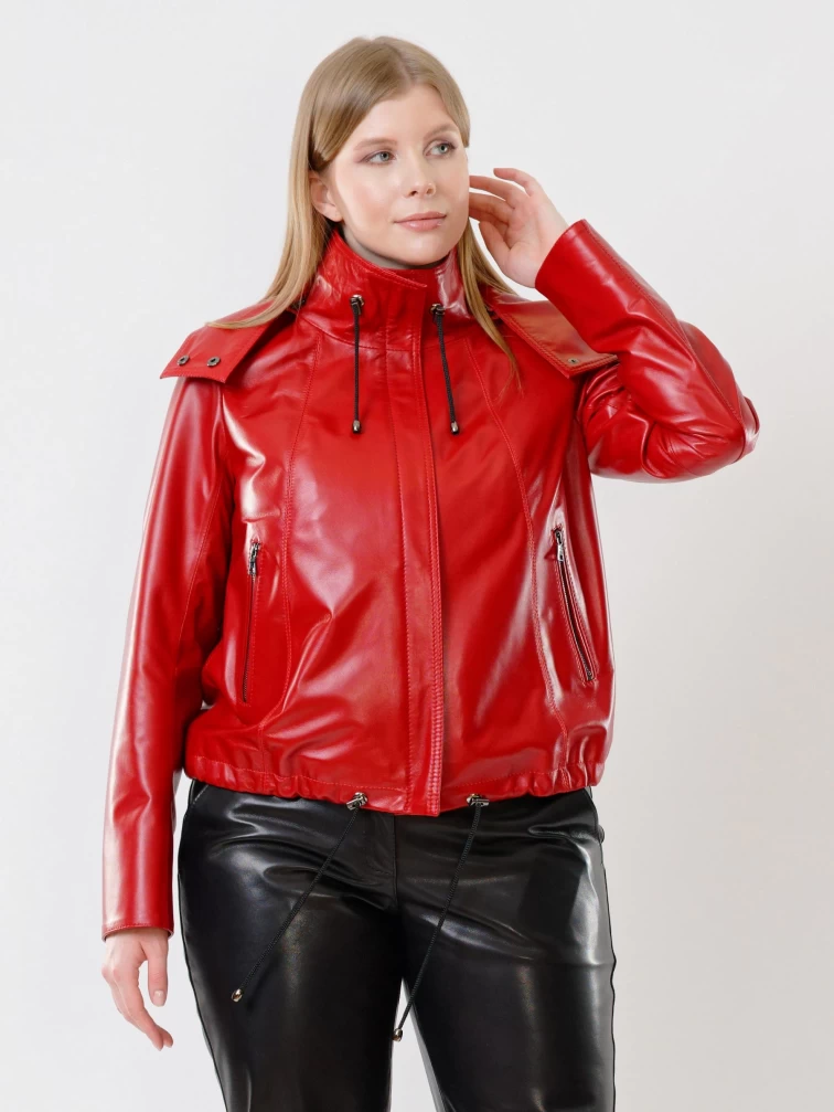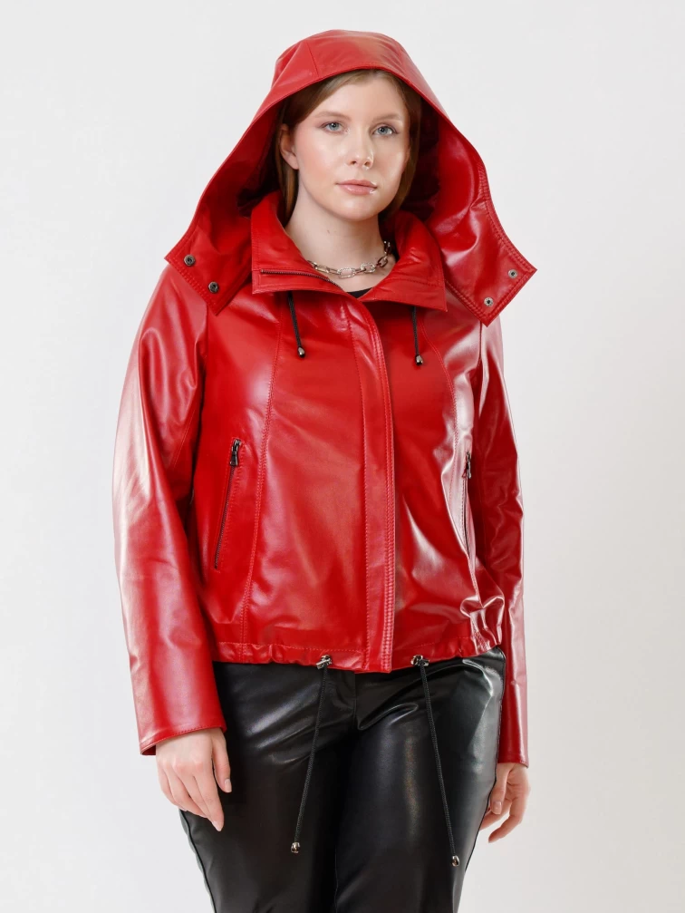 Товар кожаная женская куртка бомбер с капюшоном 305, красная, размер 48, артикул 91440 выполнен из натуральной кожи с застежкой молния. Рассчитан на сезон: весна-лето. Длина изделия 57 см, силуэт свободный.