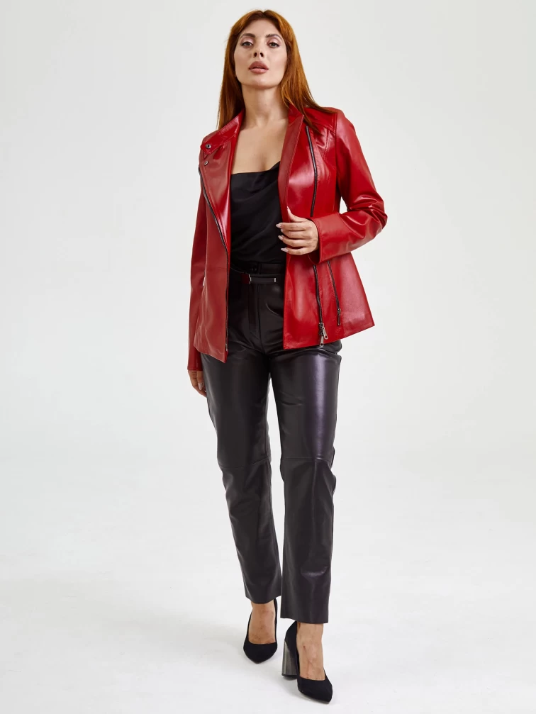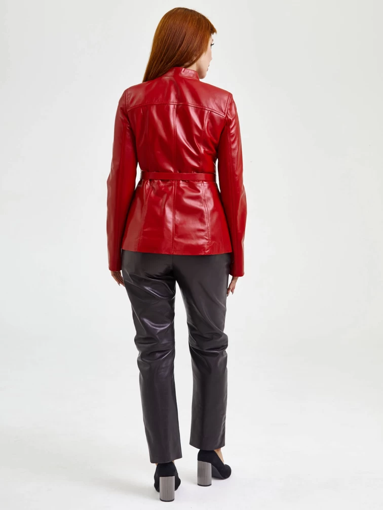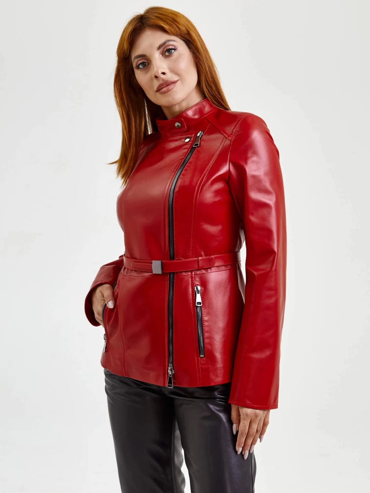 Товар женская кожаная куртка косуха с поясом 320(нв), красная, размер 46, артикул 90620 выполнен из натуральной кожи с застежкой молния. Рассчитан на сезон: весна-лето. Длина изделия 67 см, силуэт полуприлегающий.