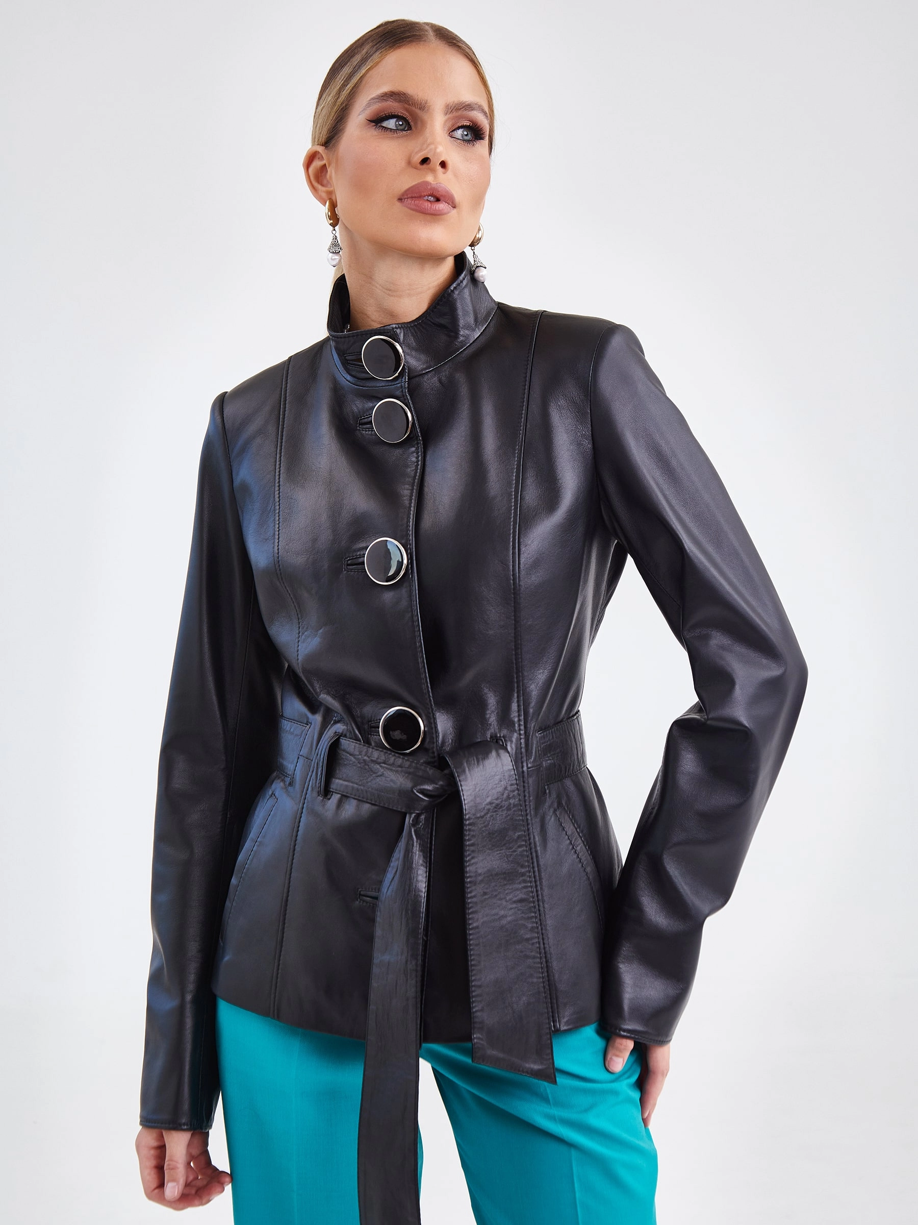Эффектная женская кожаная куртка. Нежнейшая кожа премиального уровня. Стильные итальянские пуговицы. Ювелирная работа наших портных. Идеальная посадка по фигуре.